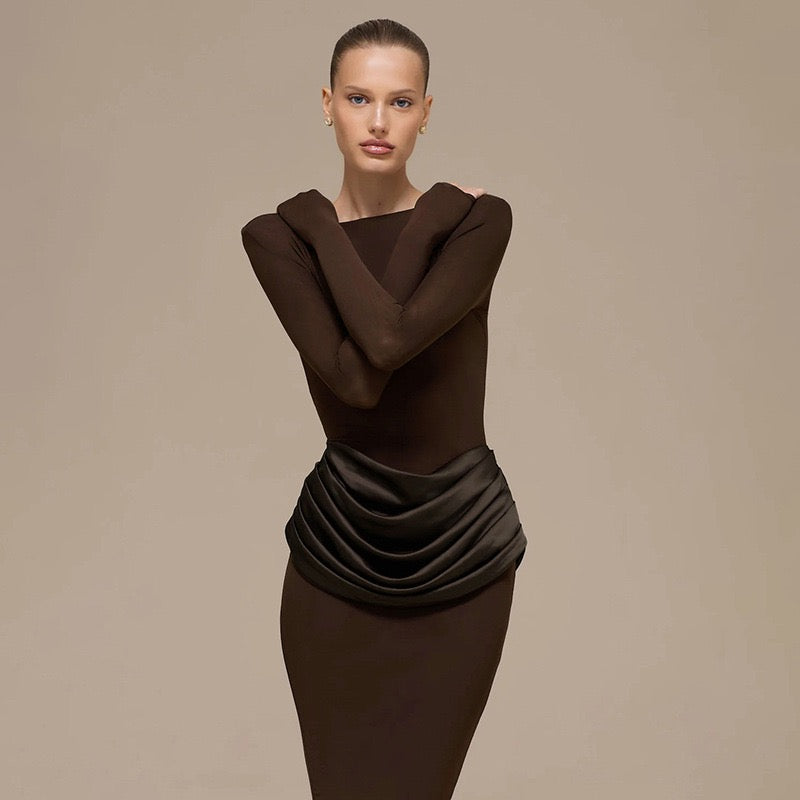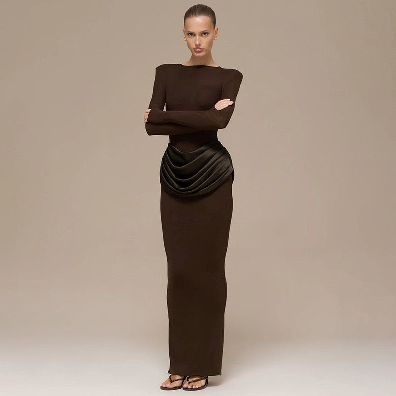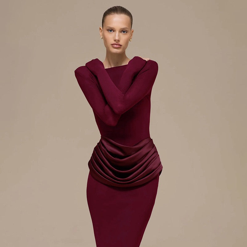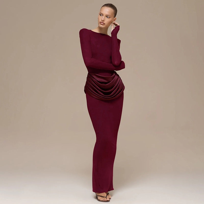 שמלת מקסי בעיצוב קיפולי סאטן - ניה