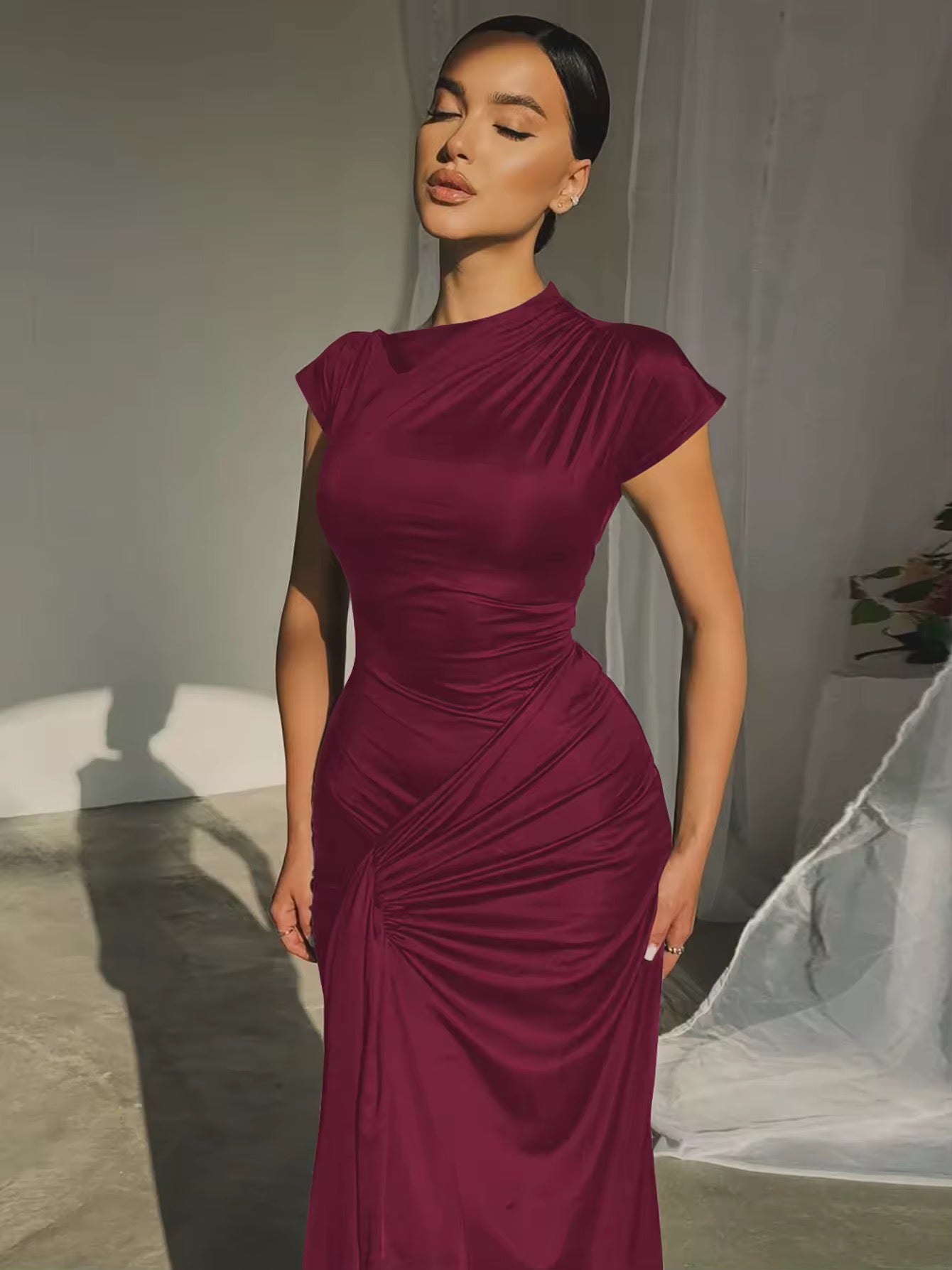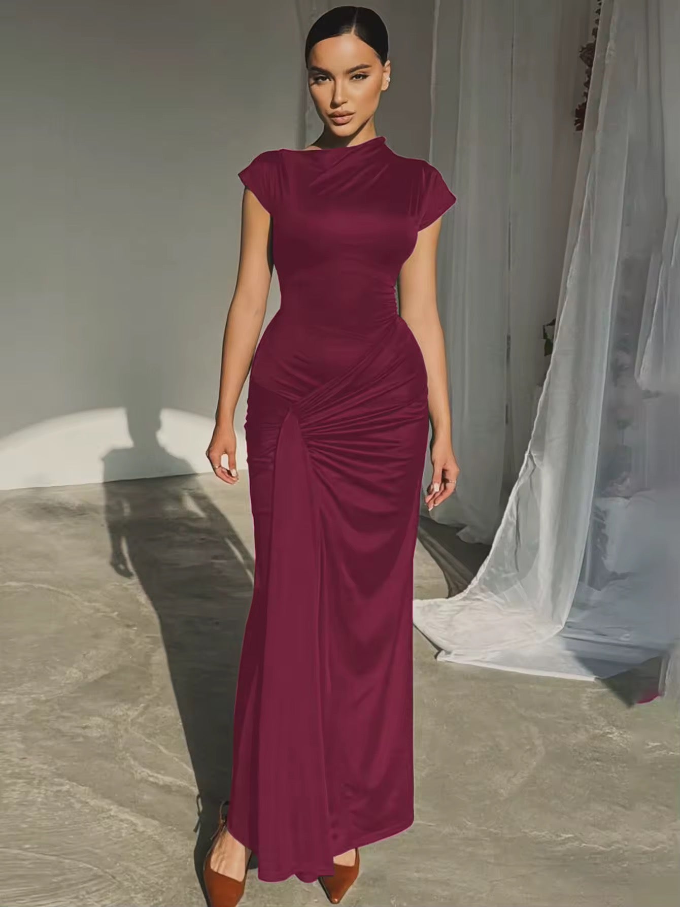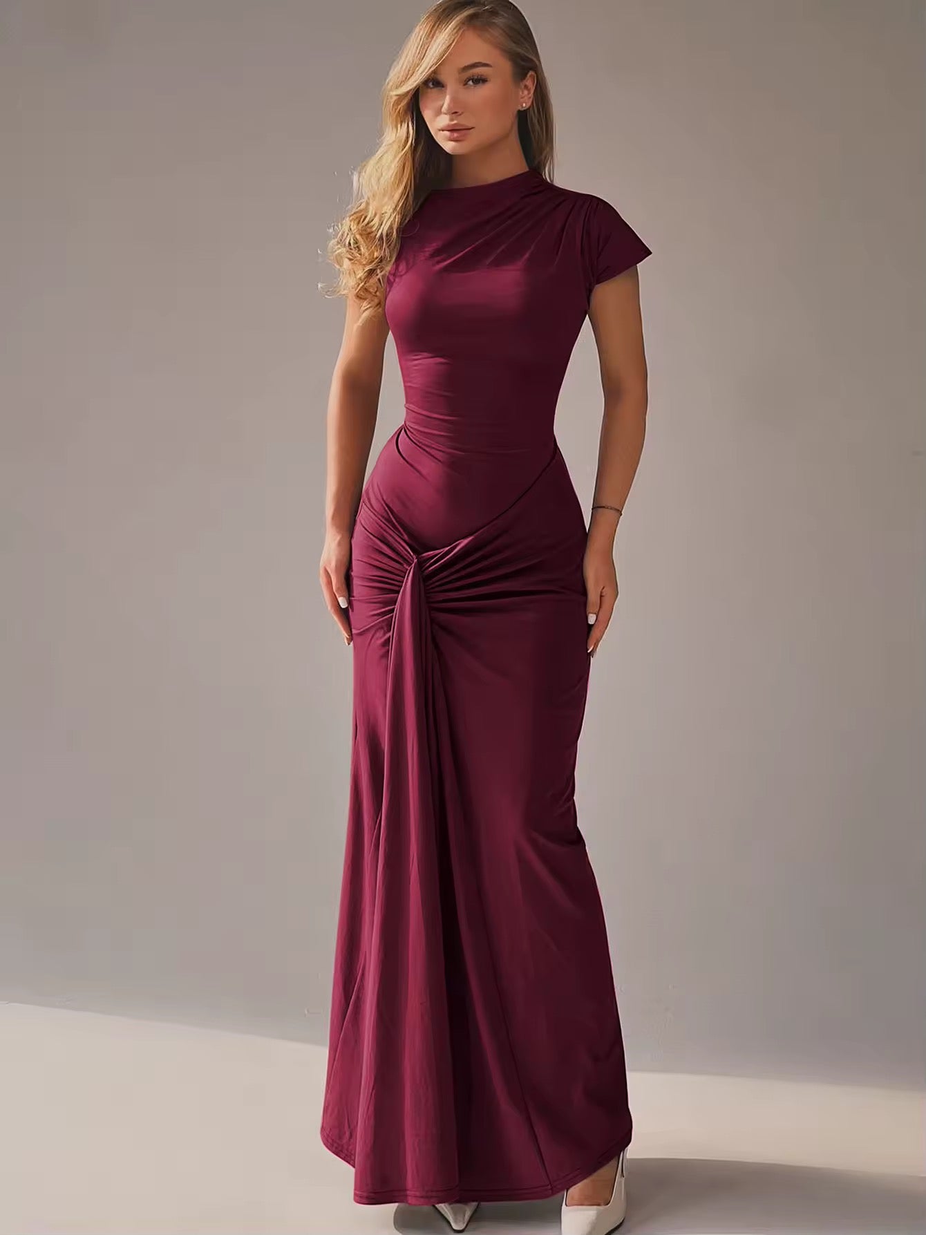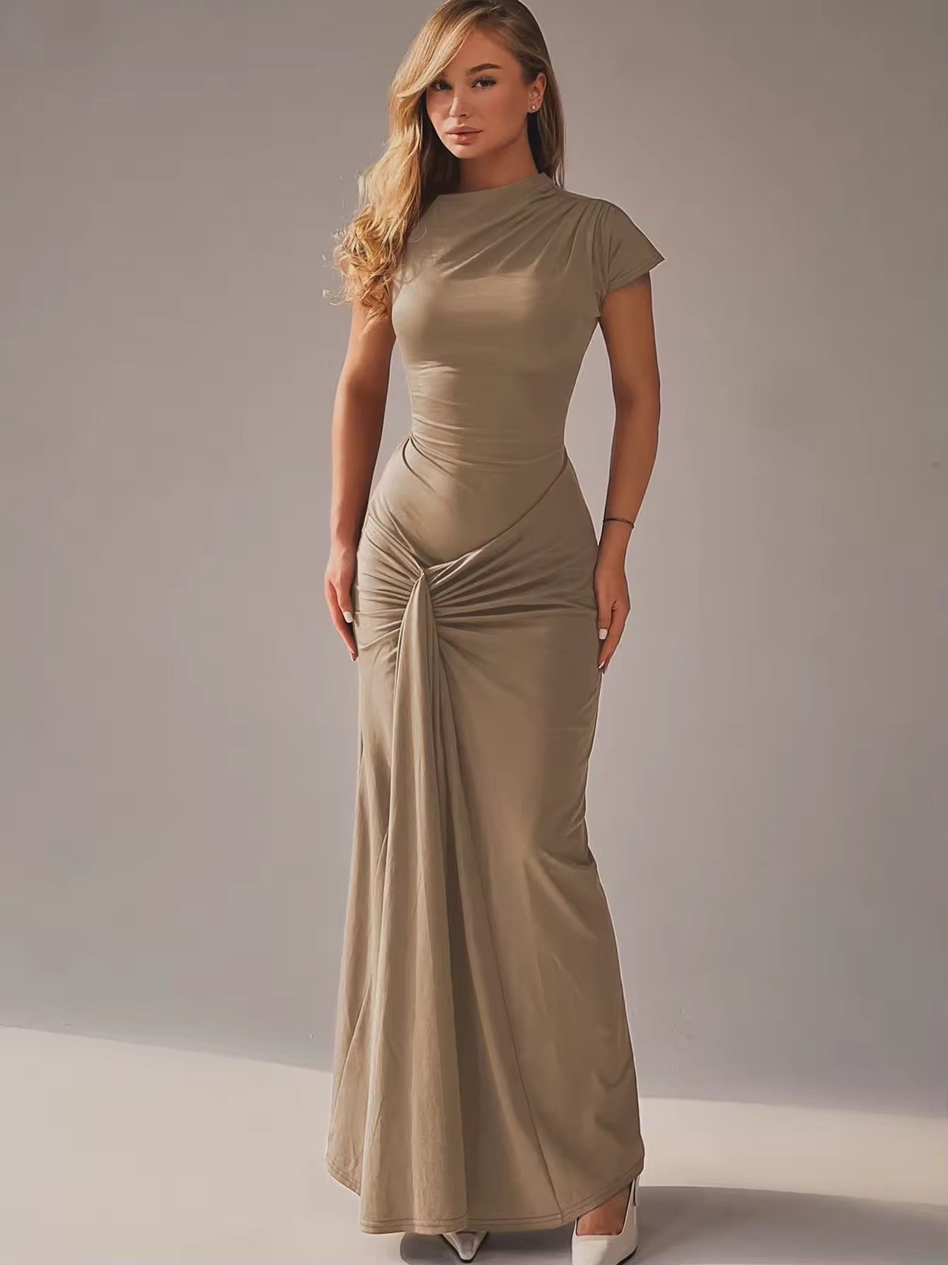 שמלת מקסי בעיצוב קיפולים קשירה בגב להצמדה במותן - בלה