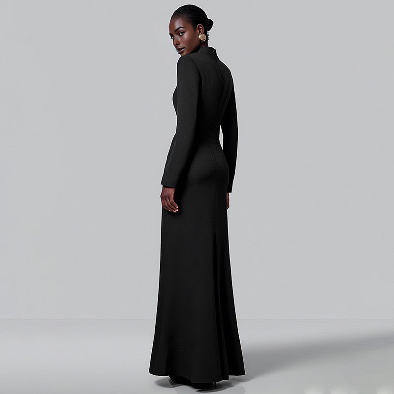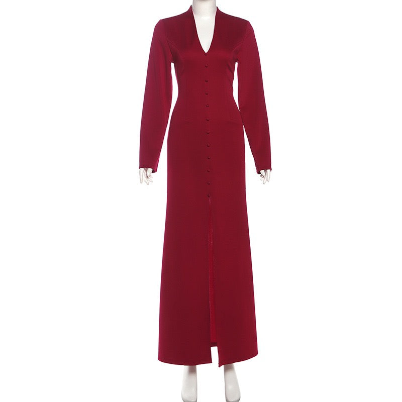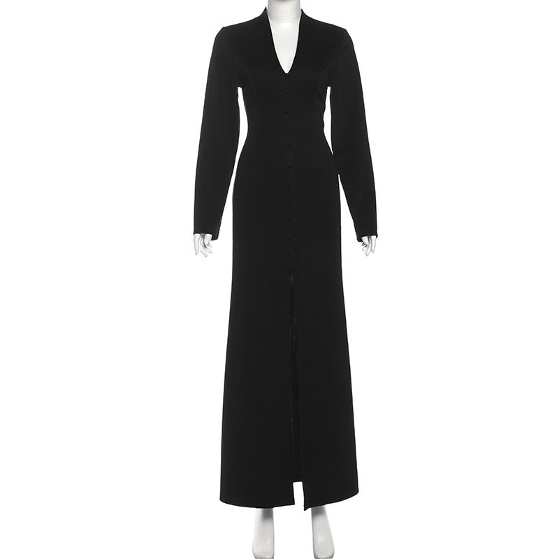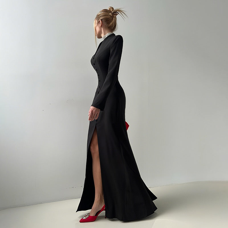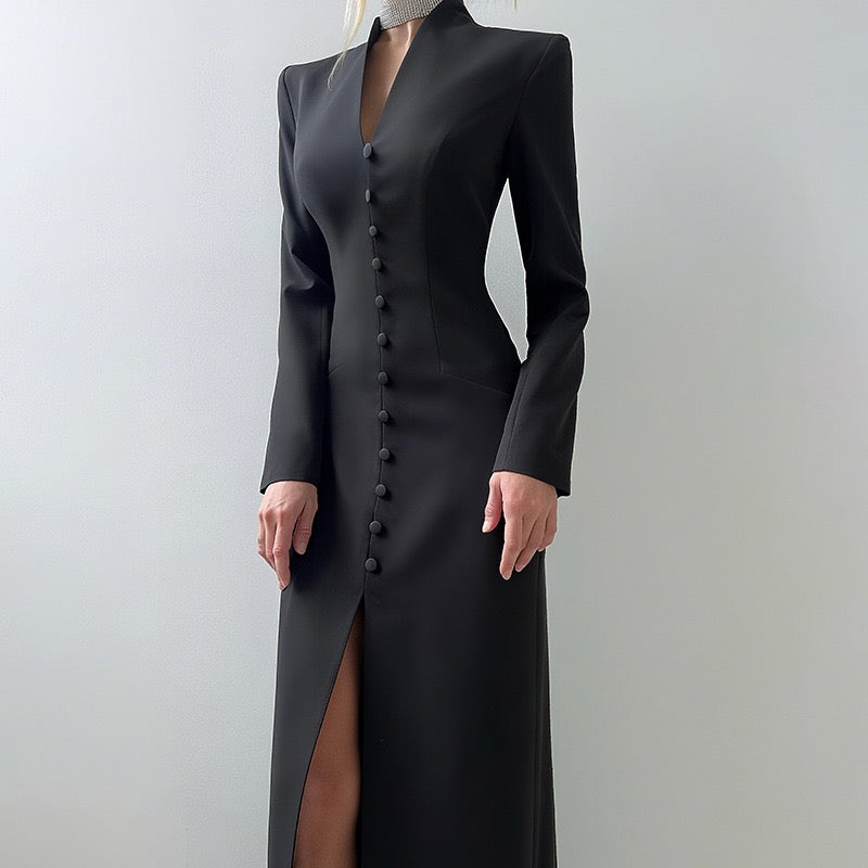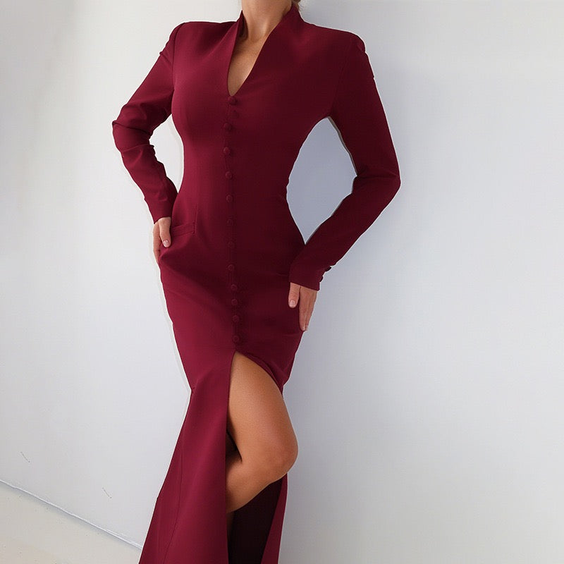 שמלת מקסי מחויטת בעיצוב אלגנטי סגירת רוכסן בעיטור כפתורים ושסע - אמארי