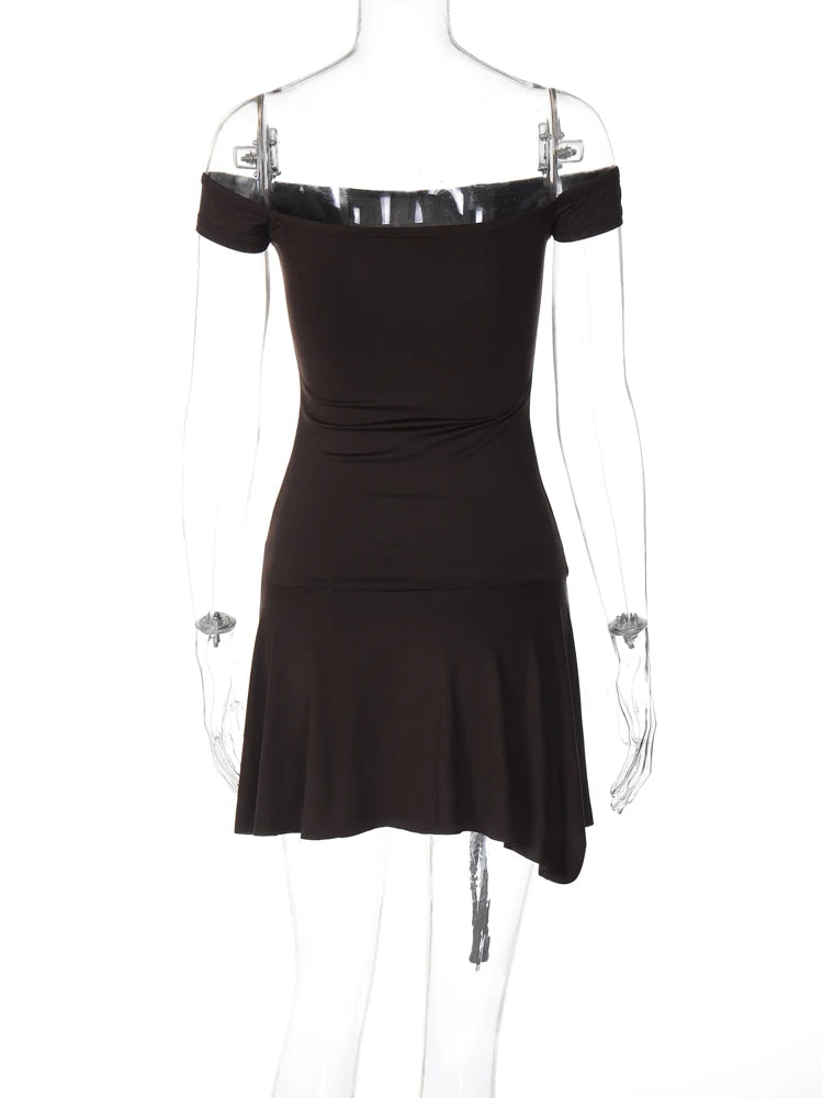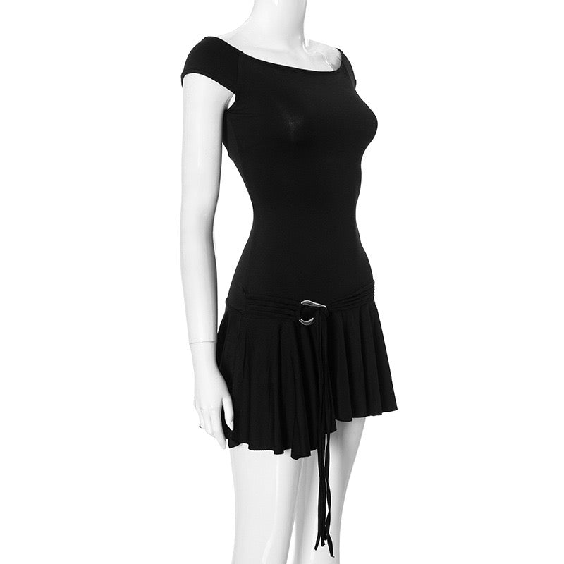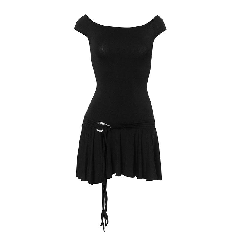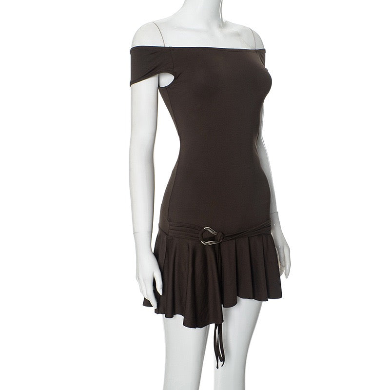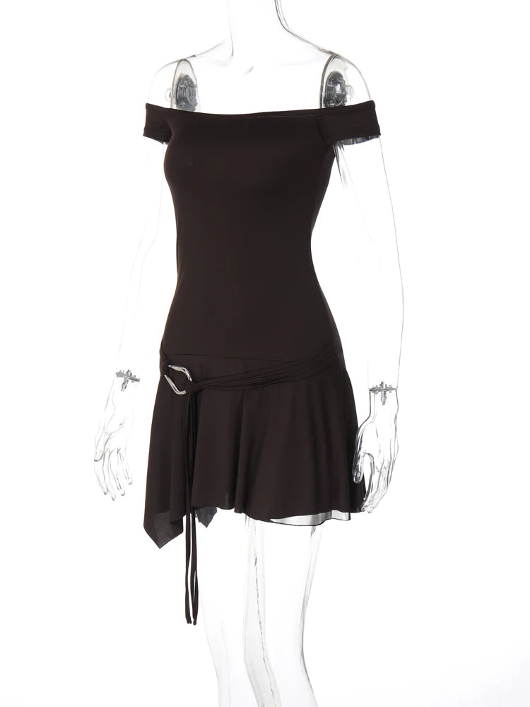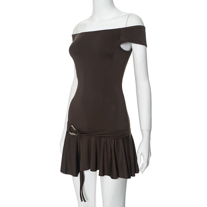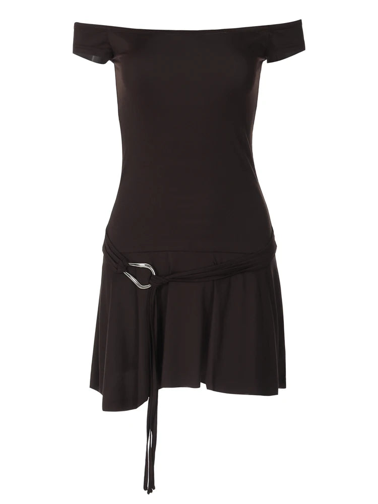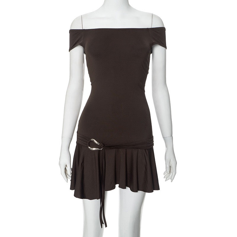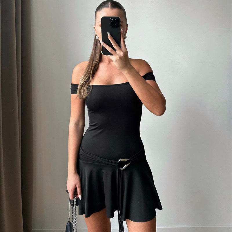 שמלת מיני בעיטור חגורת מותן כתפיים חשופות - Antonella