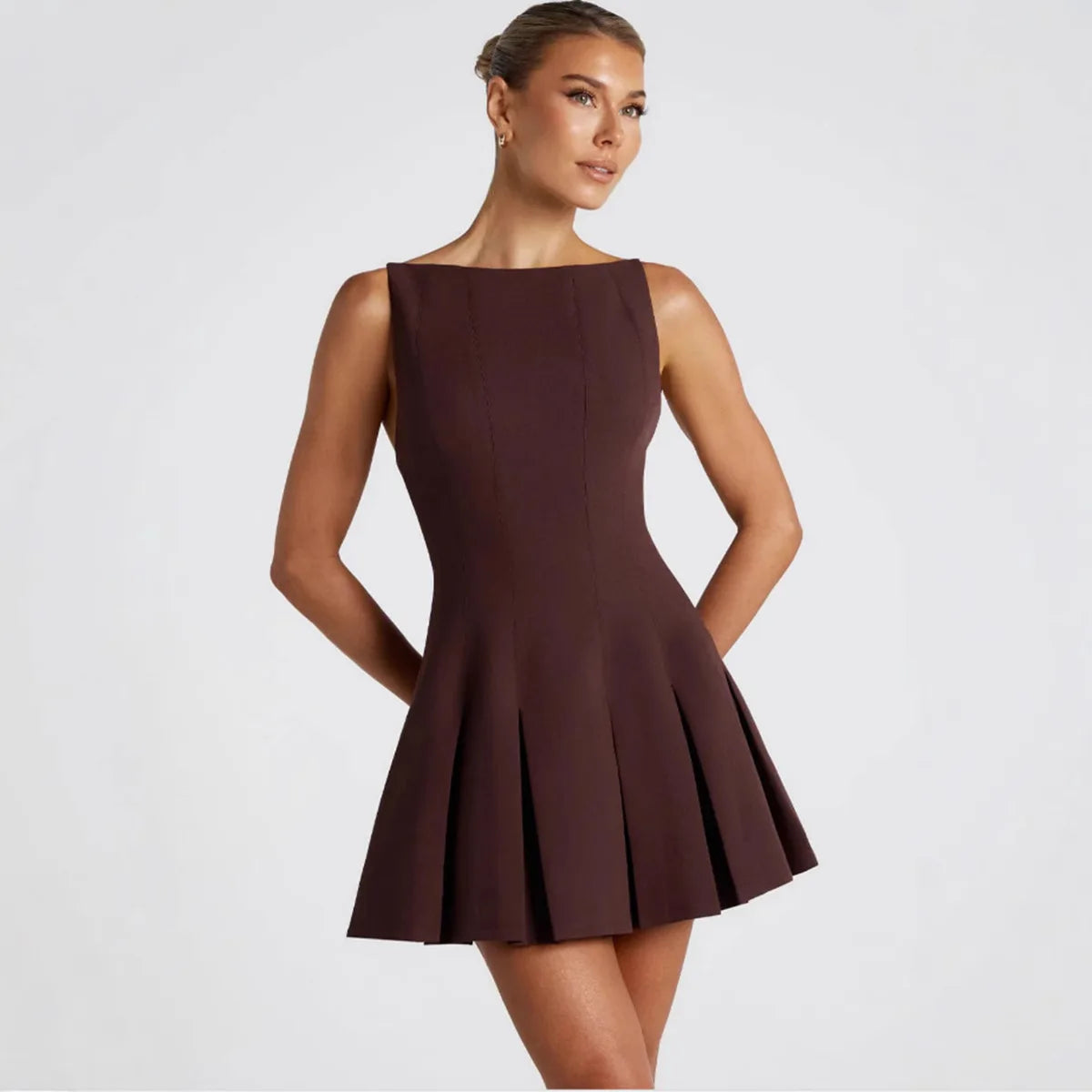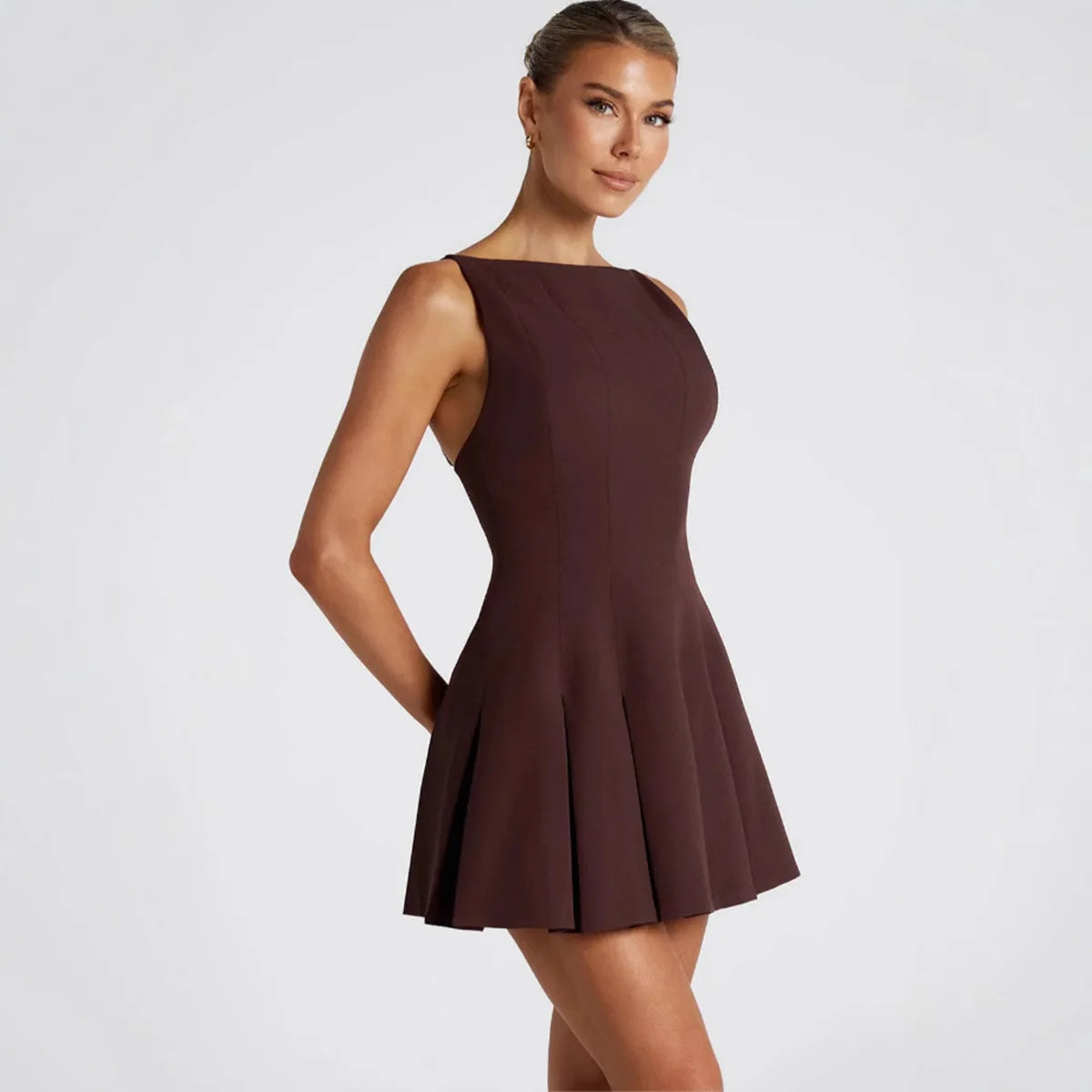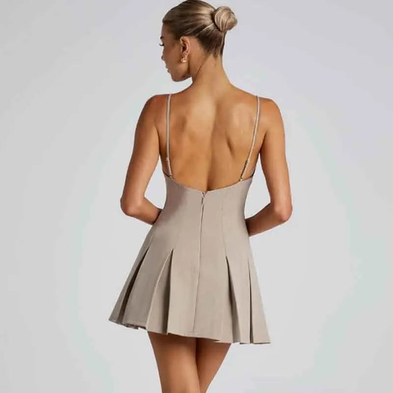 שמלת מיני בעיצוב קיפולים בגזרת A גב פתוח - Judith