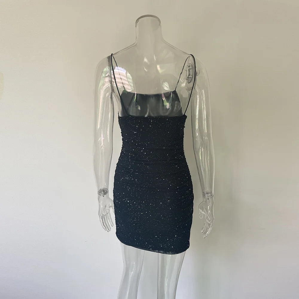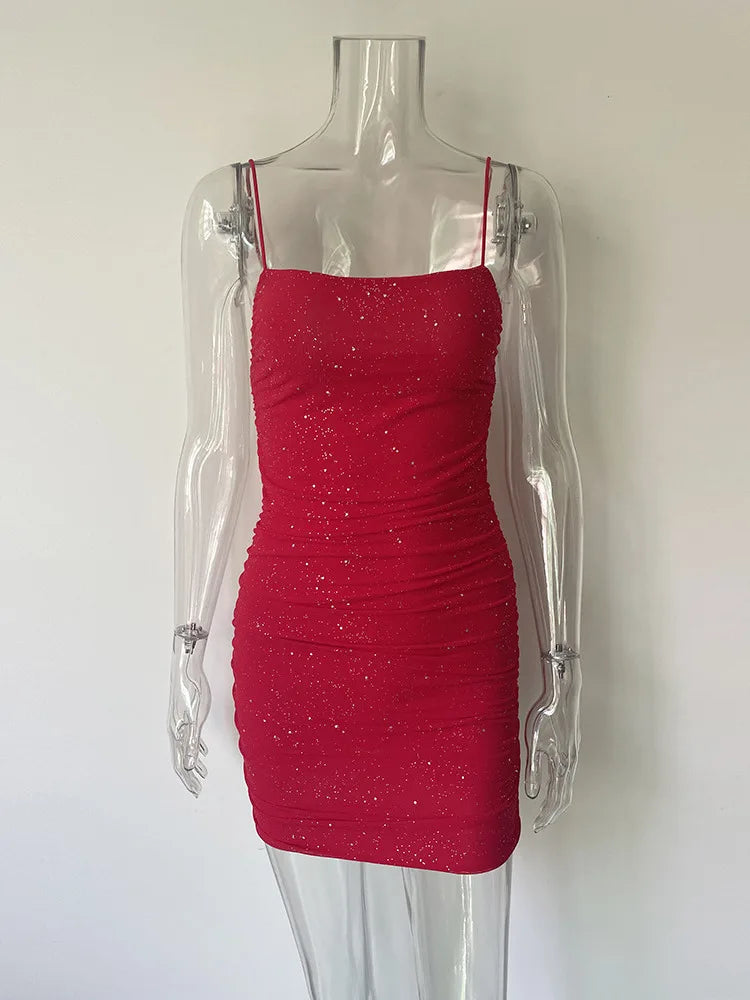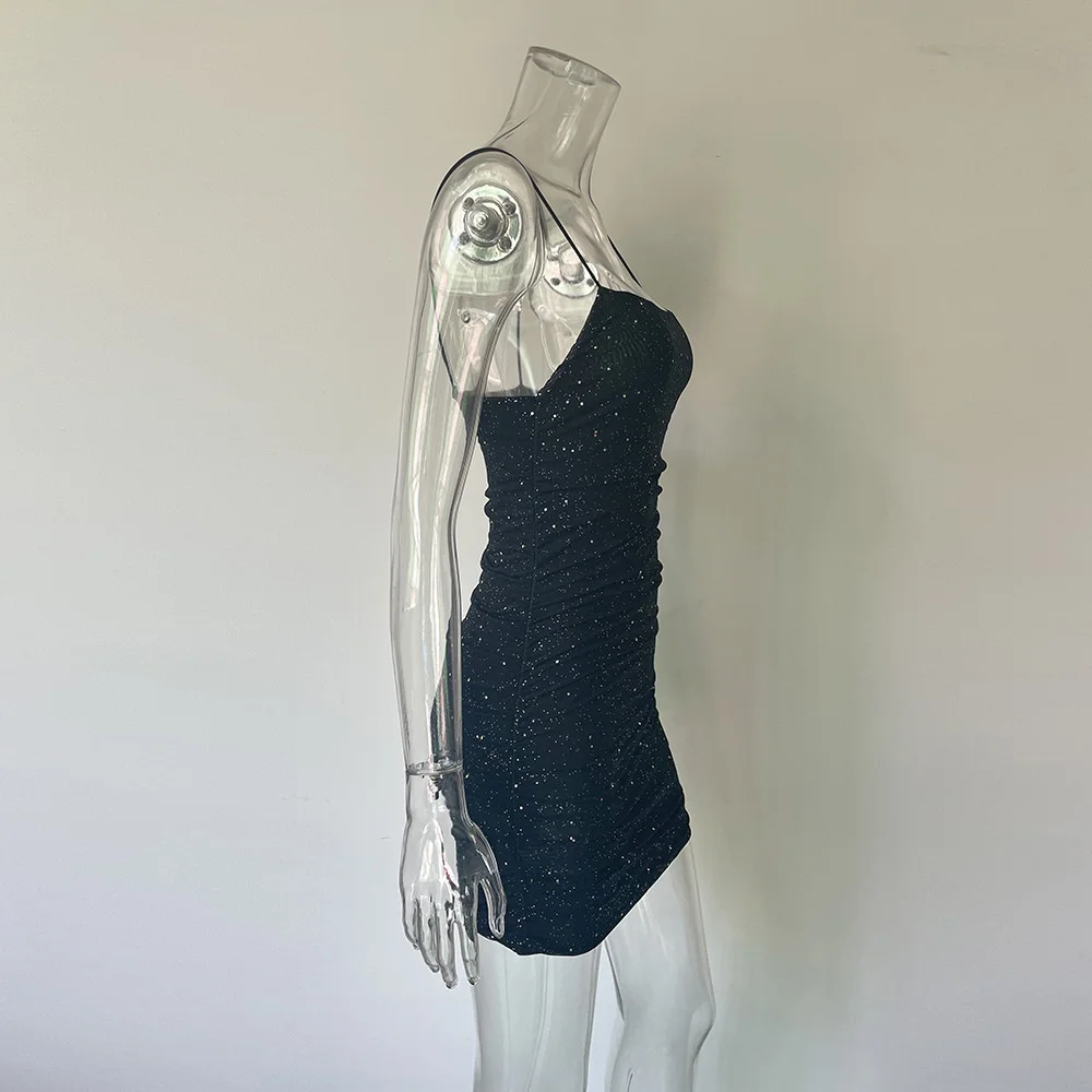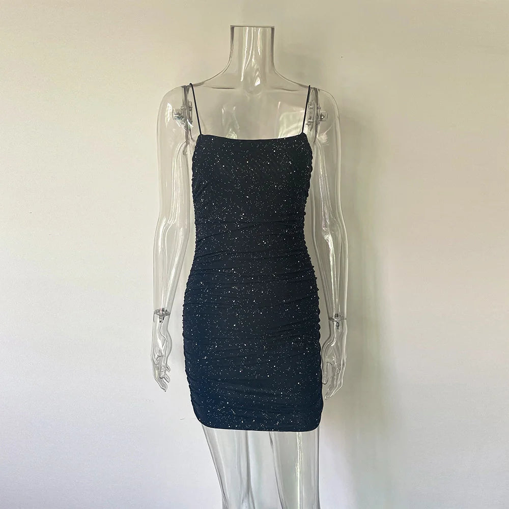שמלת מיני כיווצים צמודה בעיטור פייטים מנצנצים - ארי