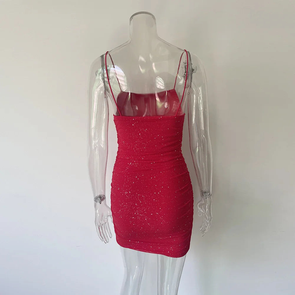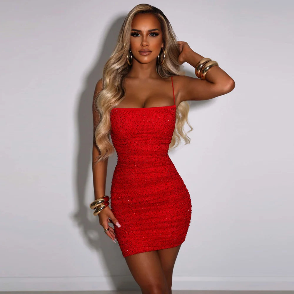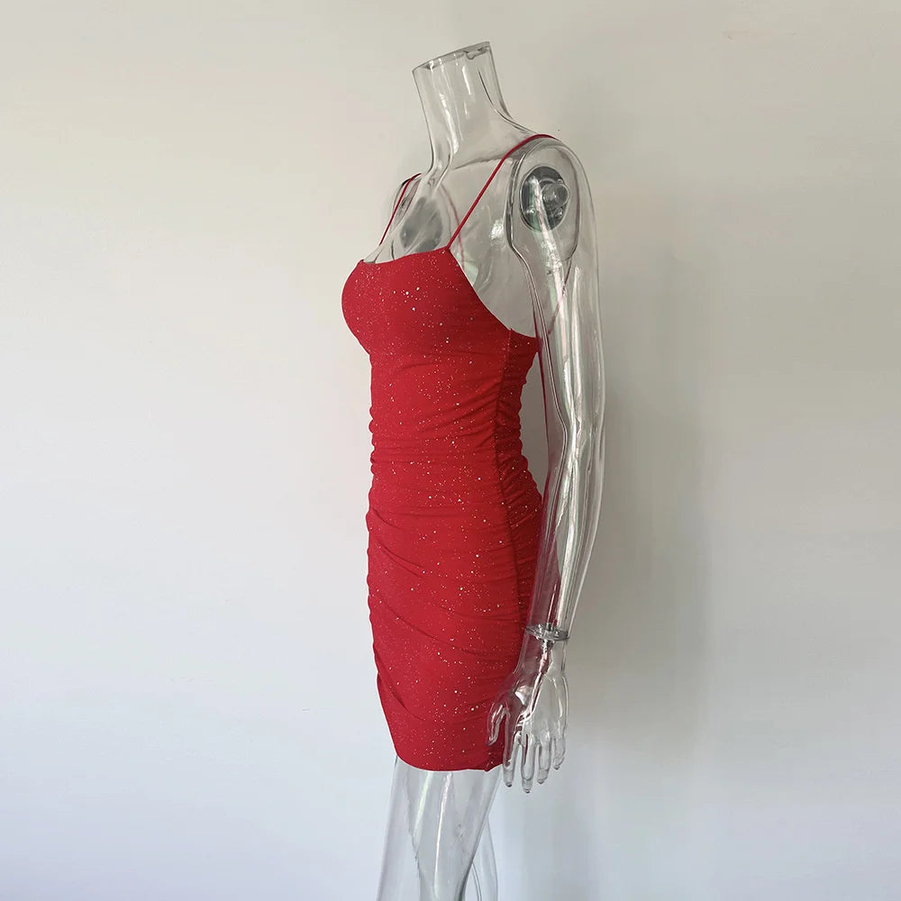שמלת מיני כיווצים צמודה בעיטור פייטים מנצנצים - ארי