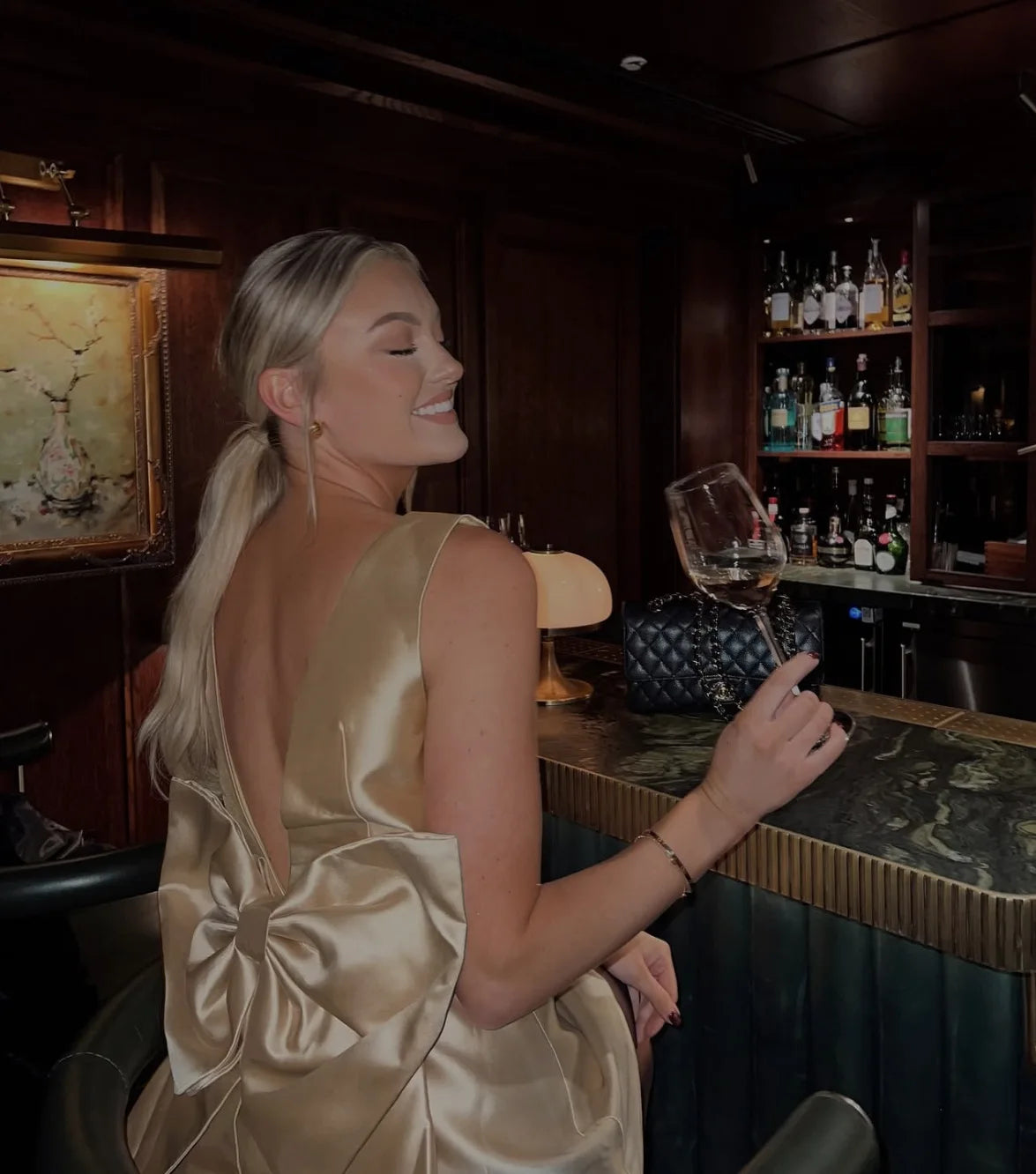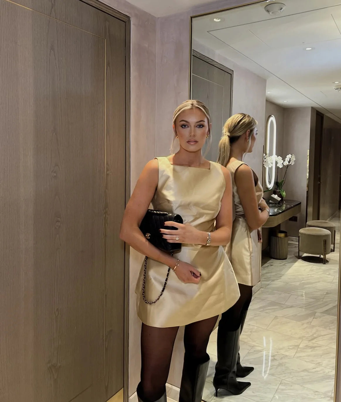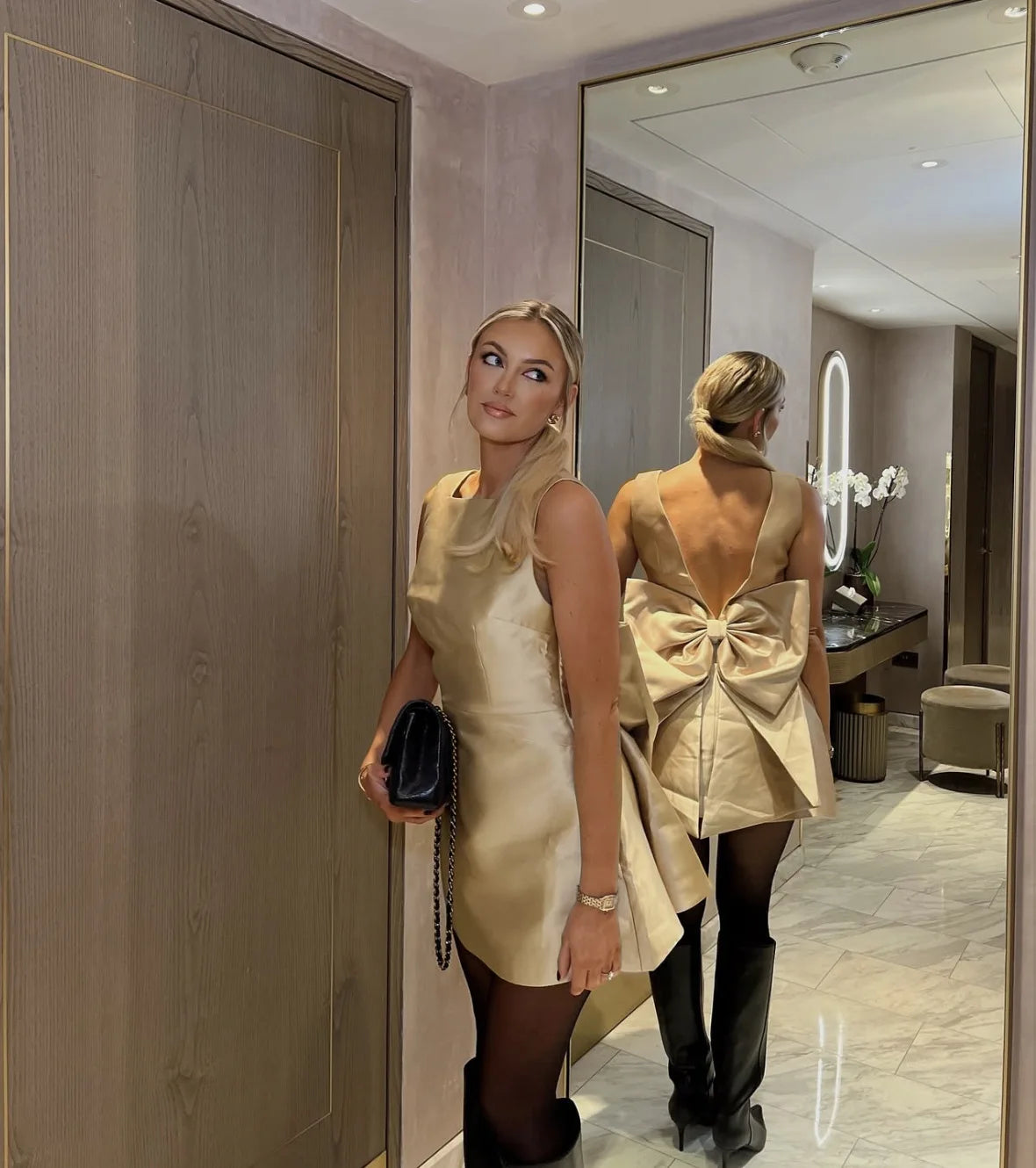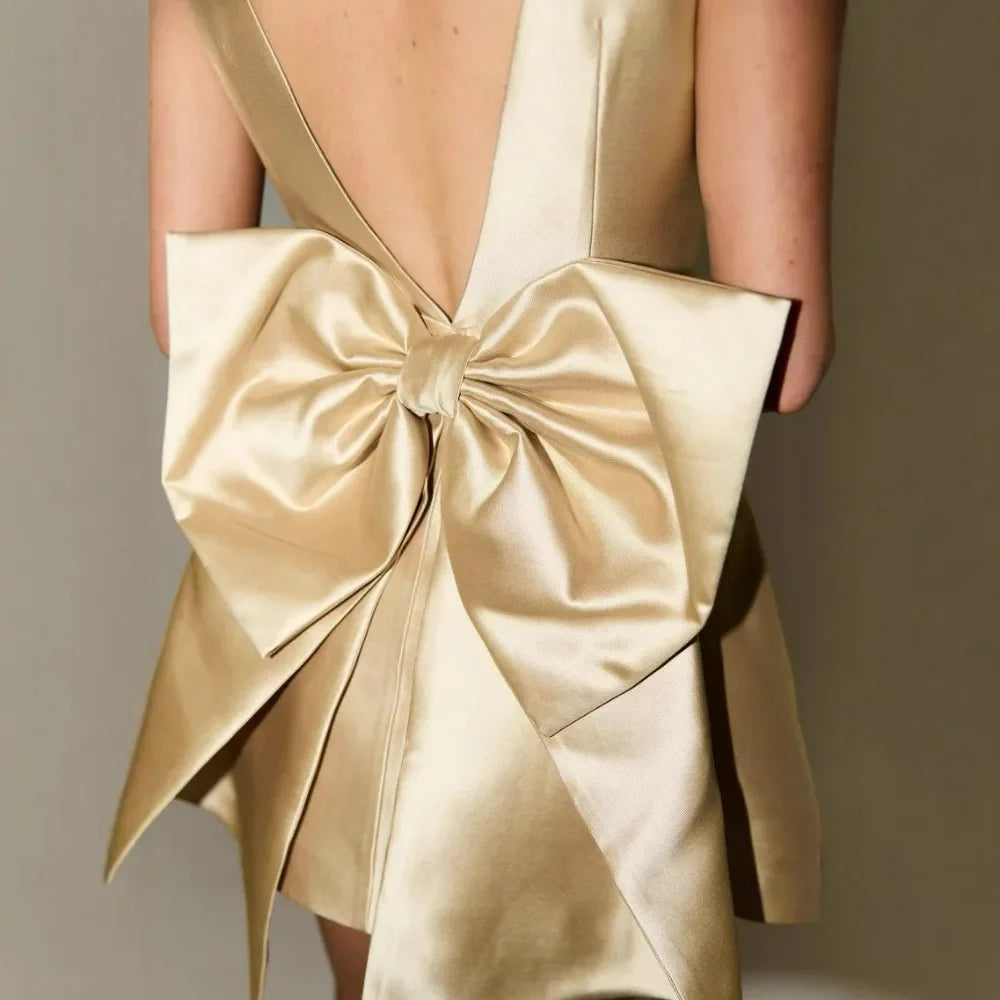 שמלת מיני סאטן בגזרת A בעיטור פפיון בגב - Faye