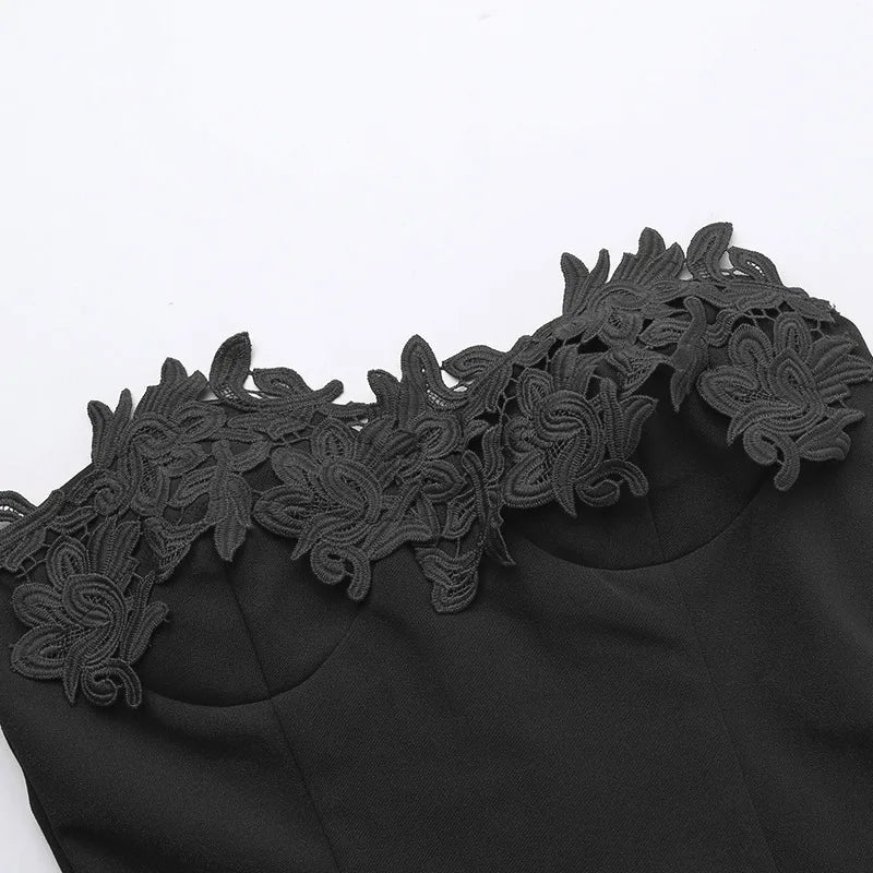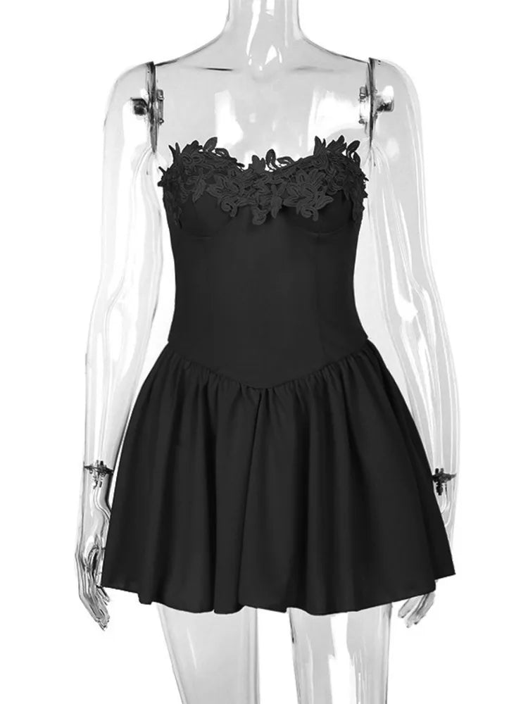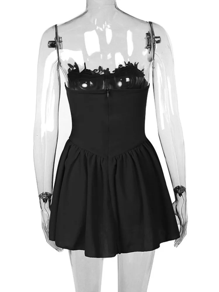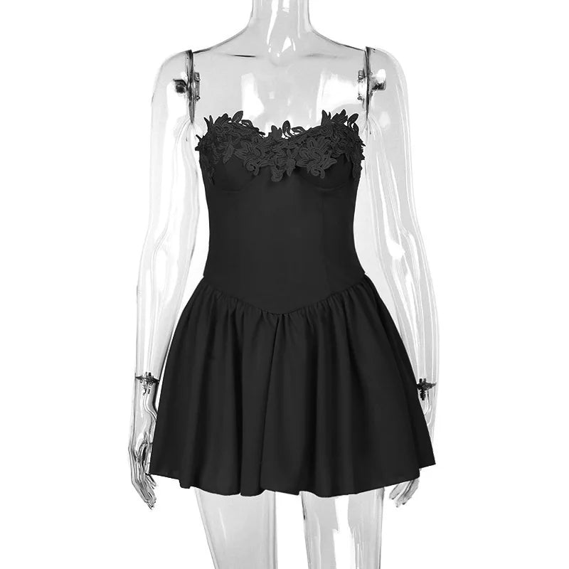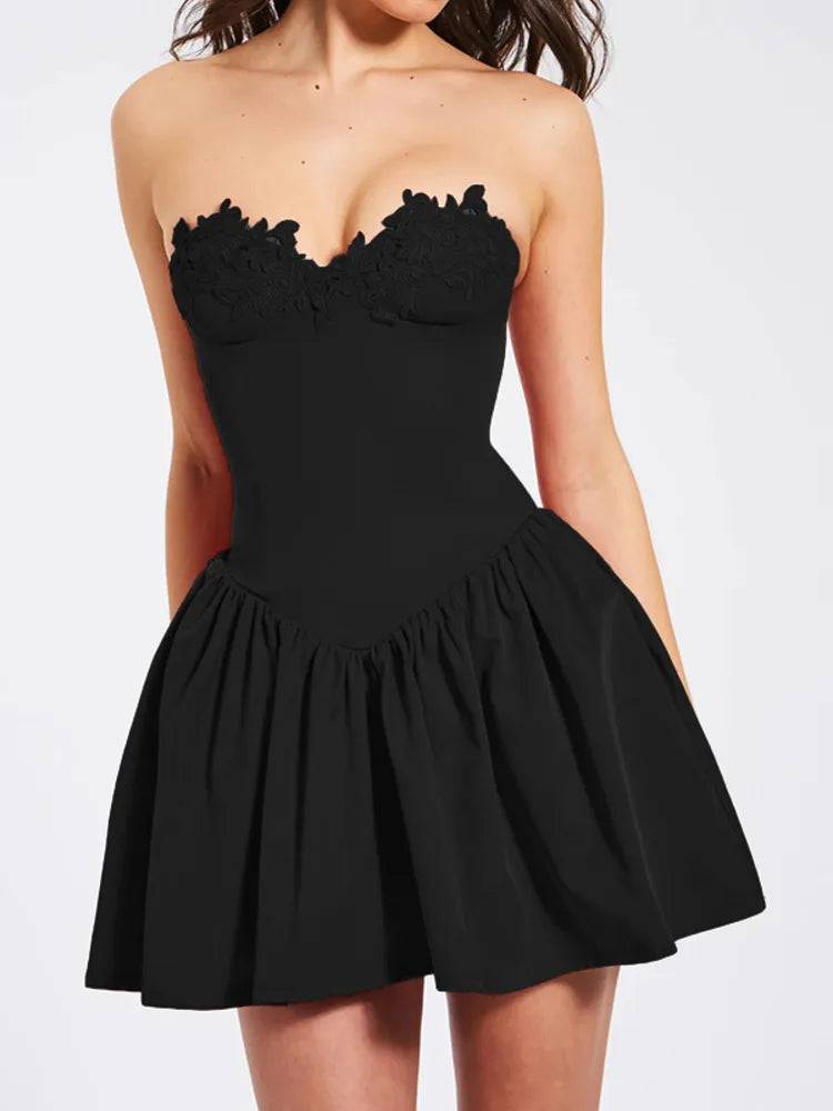 שמלת מיני סטרפלס בעיטור רקמת פרחים - LINDA