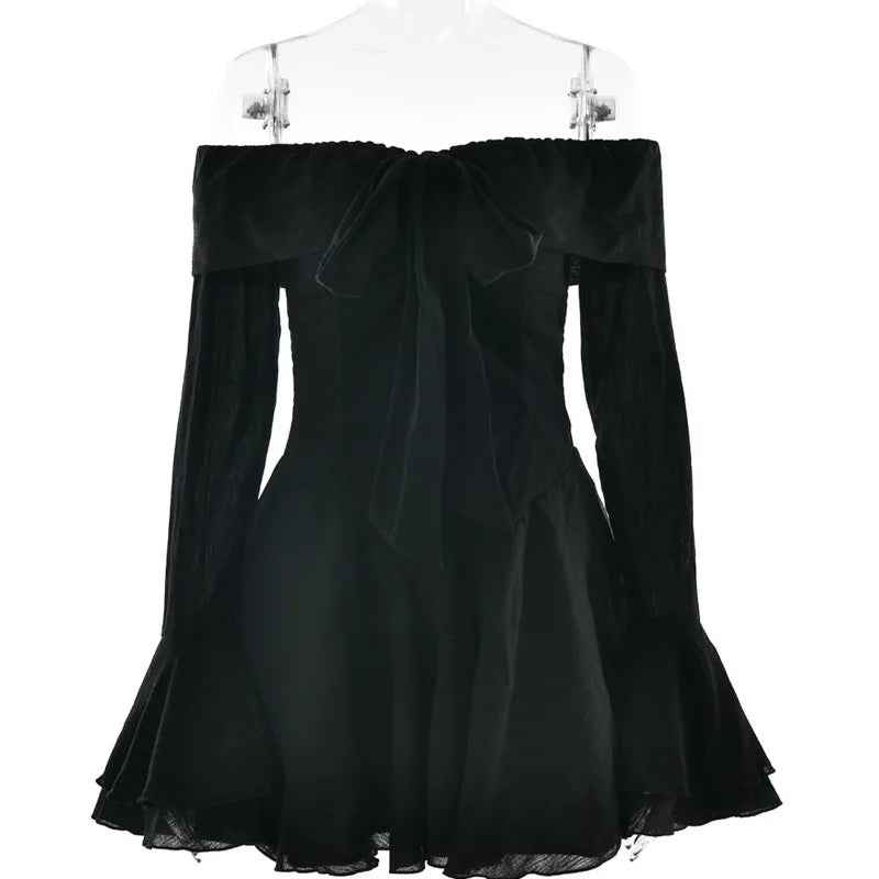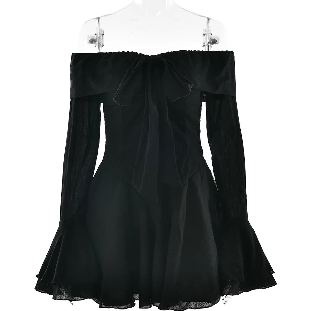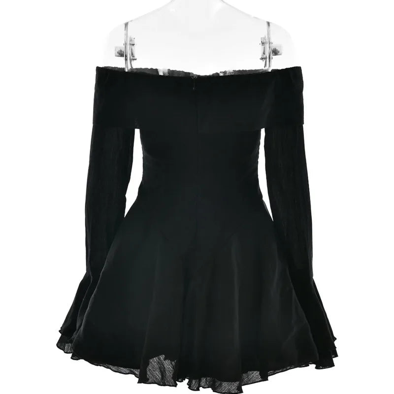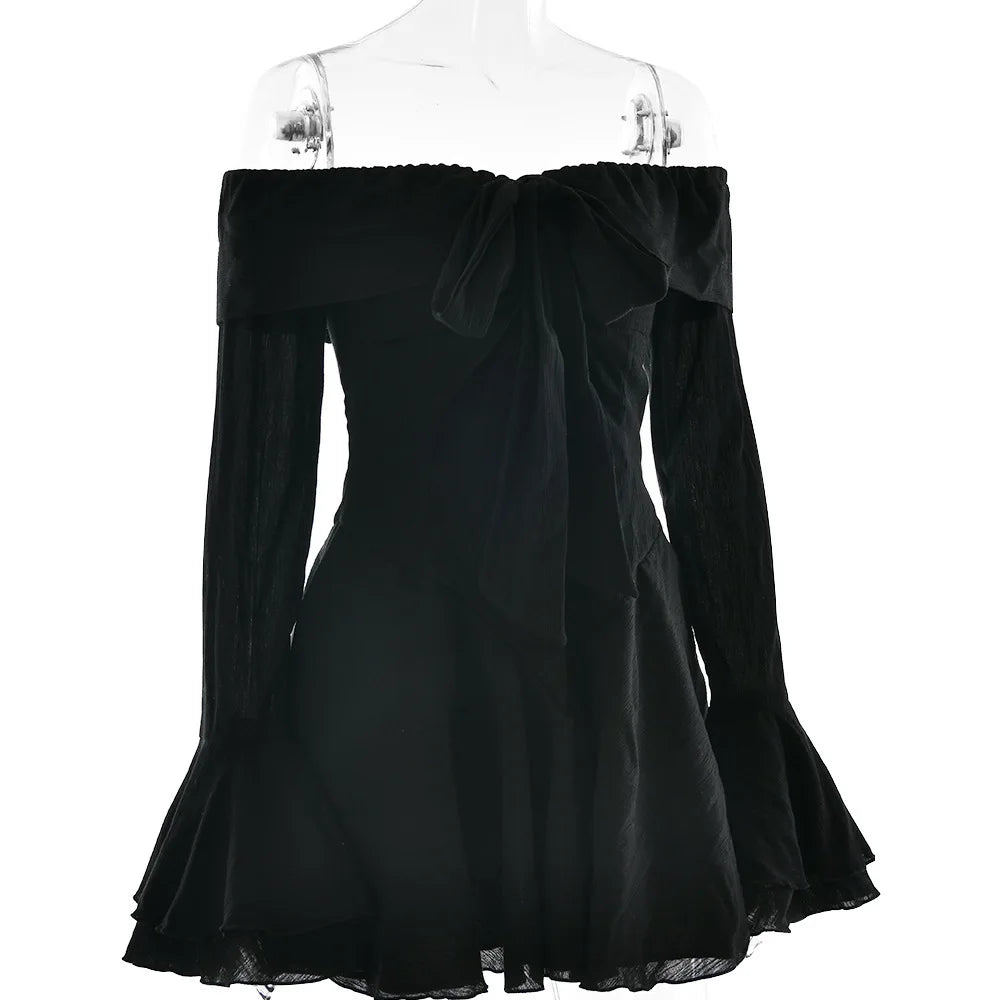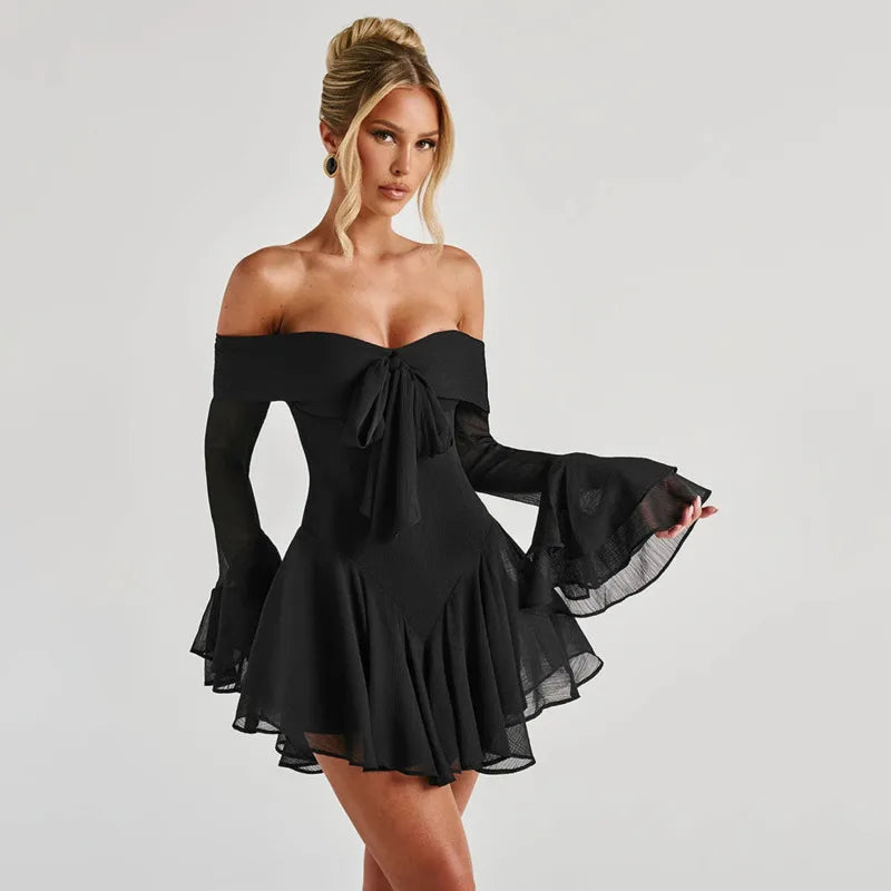 שמלת מיני שיפון בגזרת A כתפיים חשופות - Lilyana