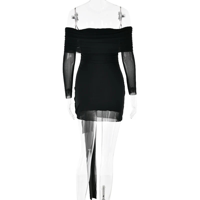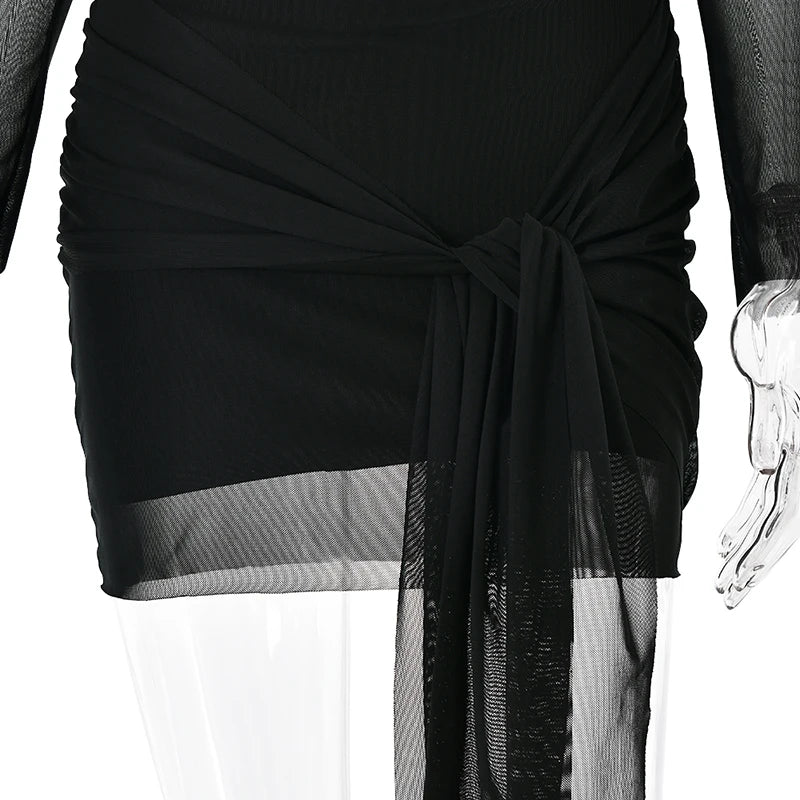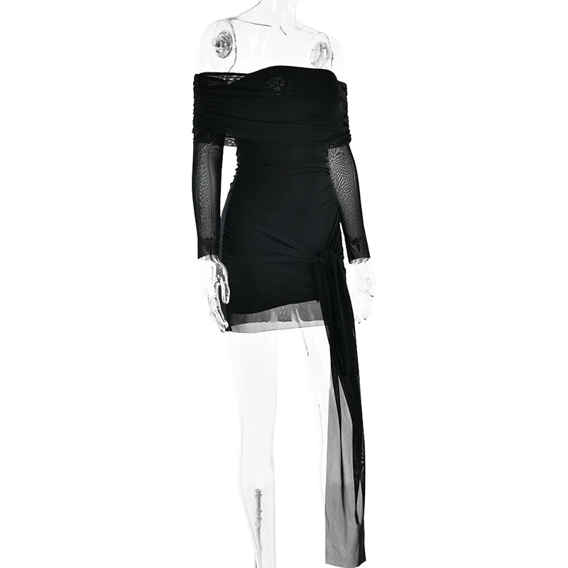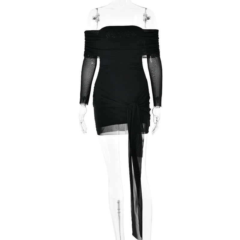 שמלת מיני שיפון כתפיים חשופות בעיצוב קשירה - CAMI