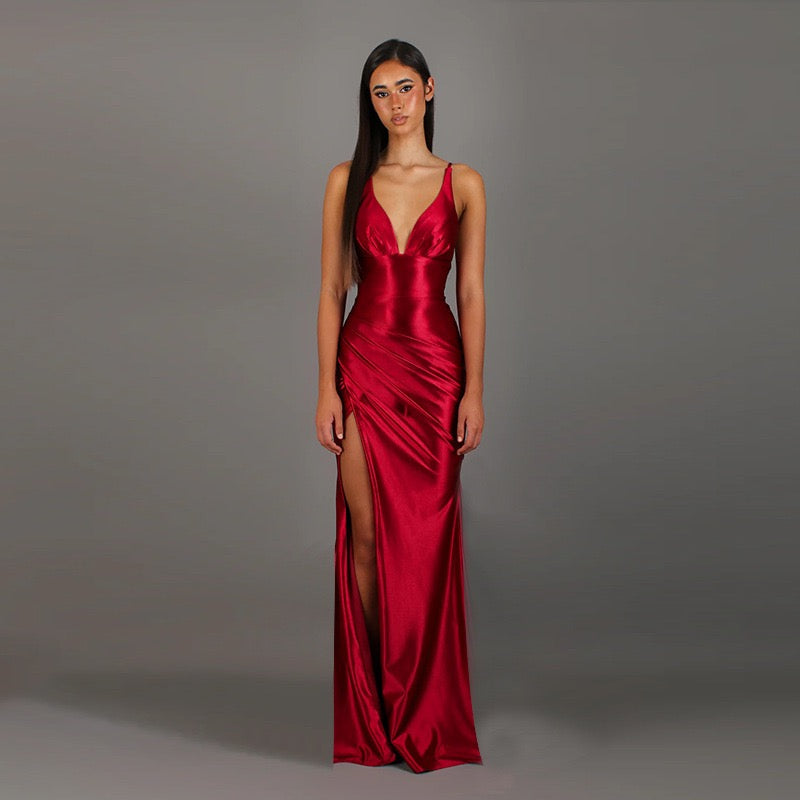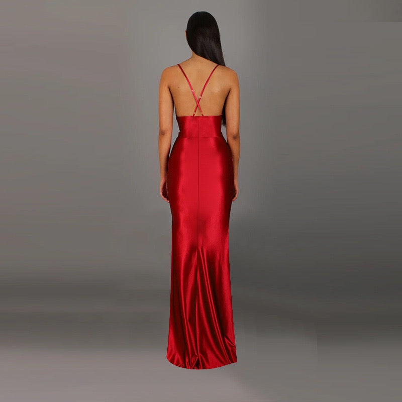 שמלת מקסי סאטן בעיטור שסע גב פתוח - ליאון