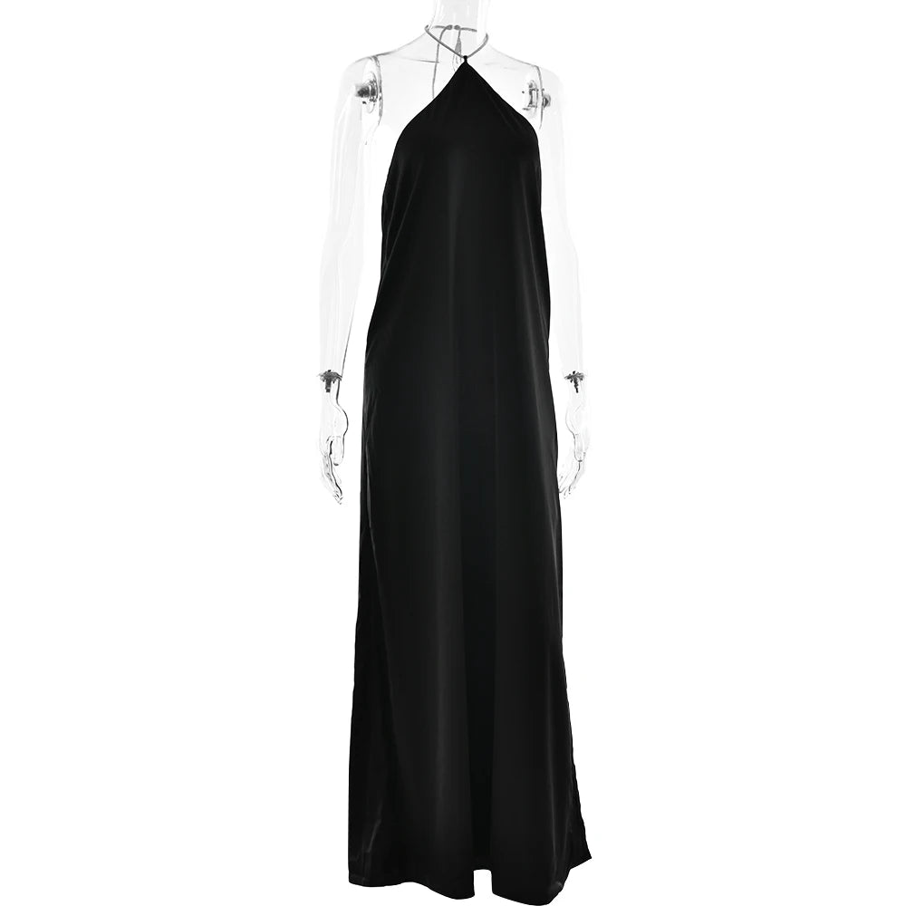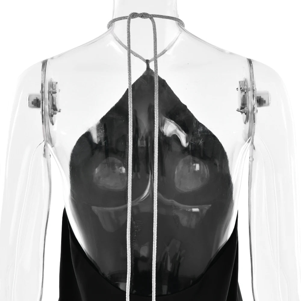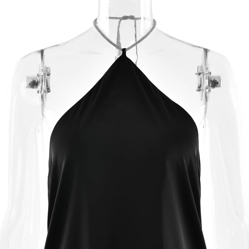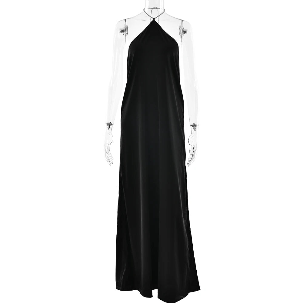 שמלת מקסי קולר סאטן גב פתוח בעיצוב זרקונים קשירה בעורף - נאיה
