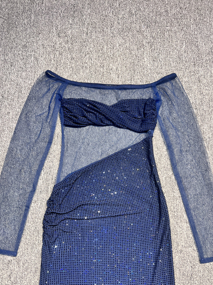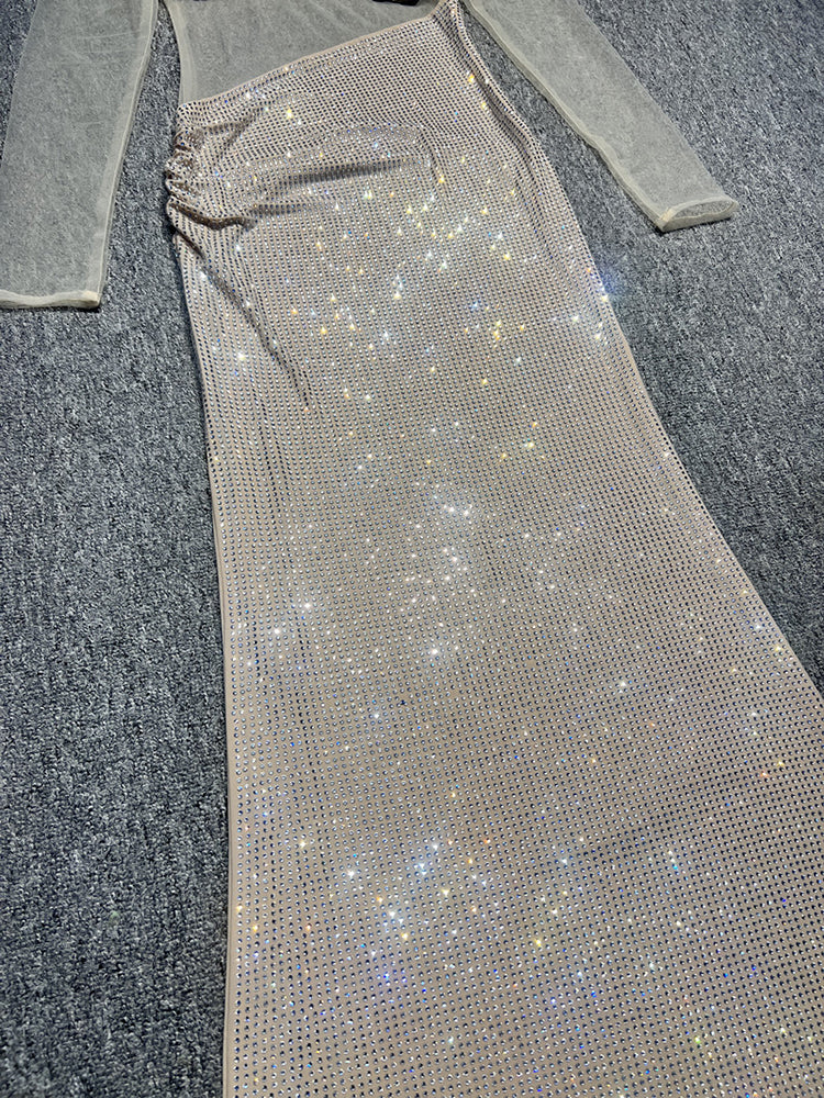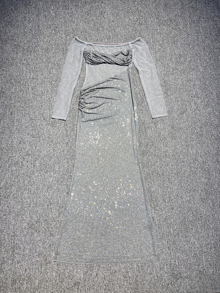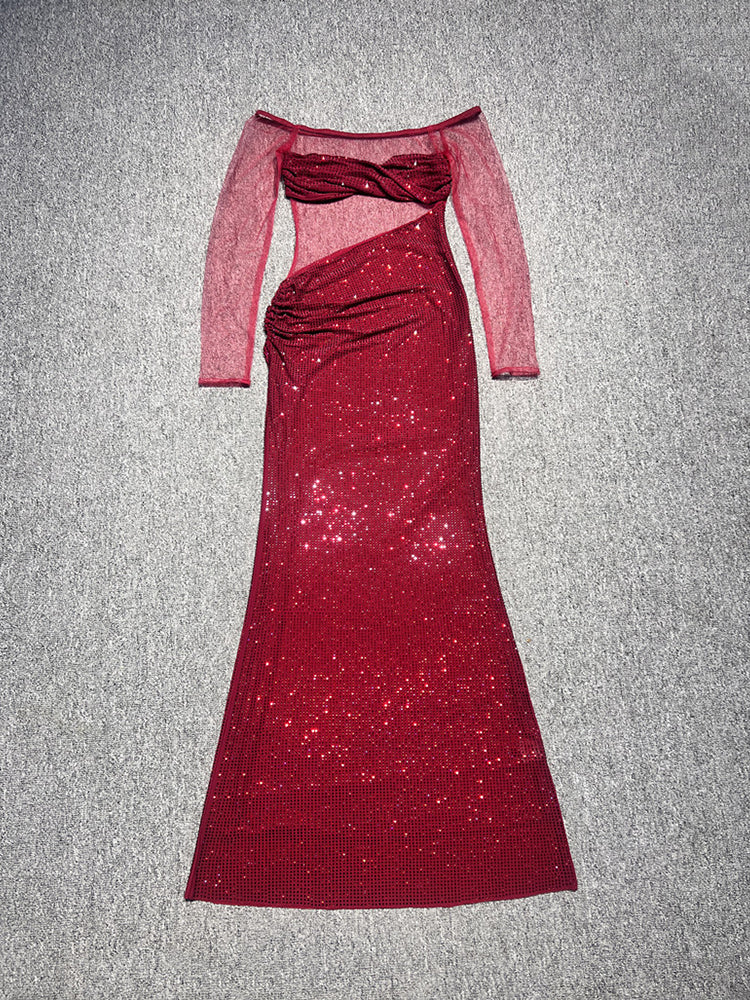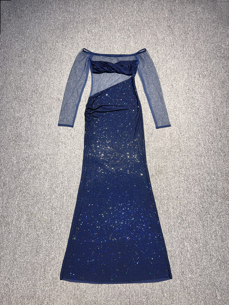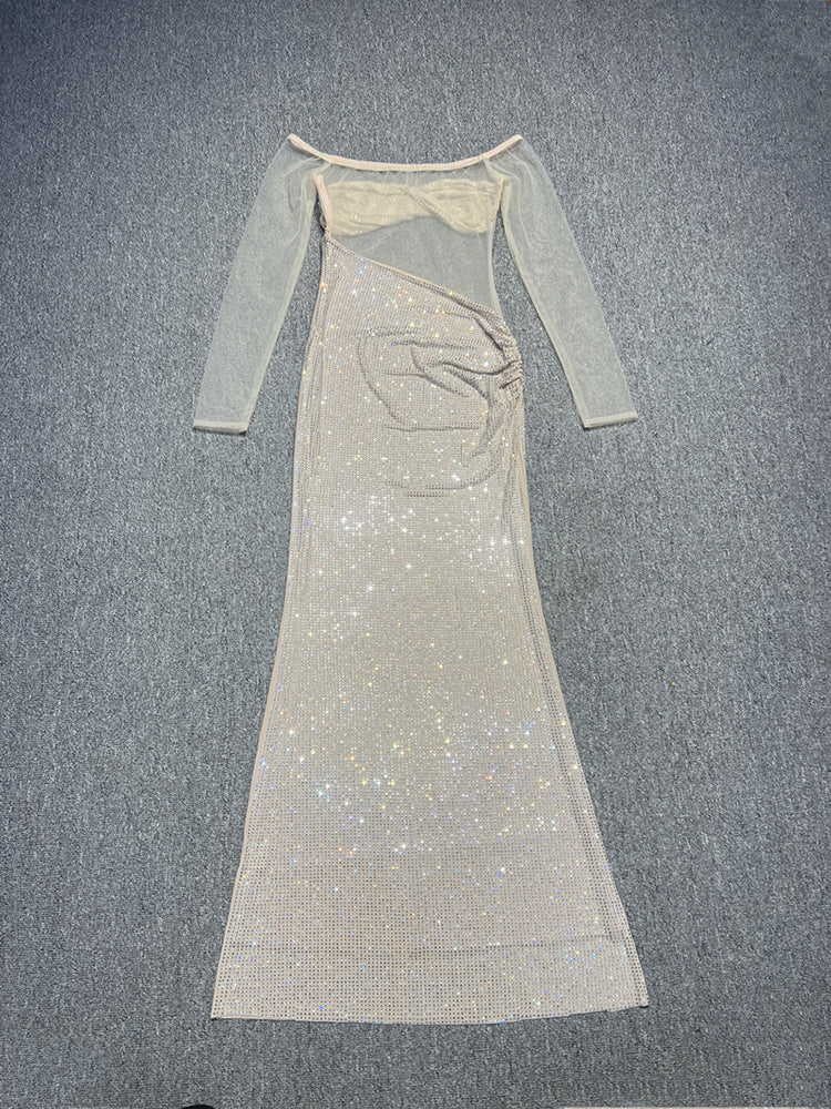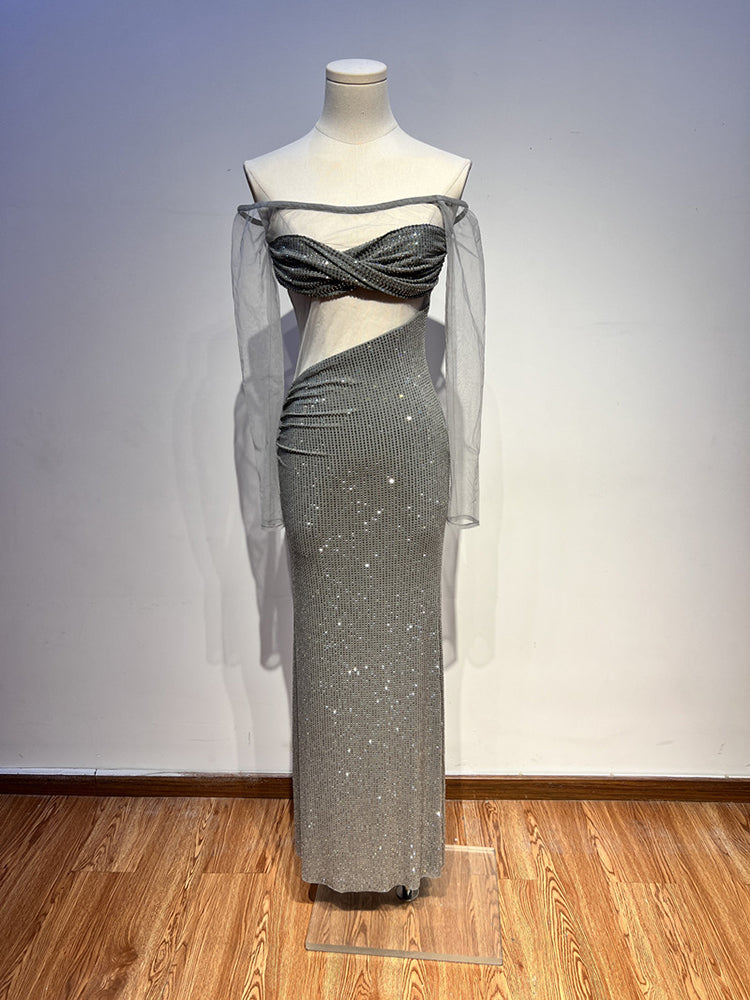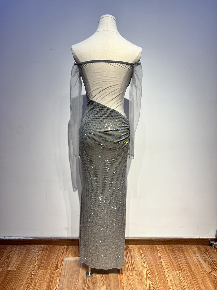 שמלת מקסי זרקונים מנצנצים בעיצוב רשת כתפיים חשופות - Amaya