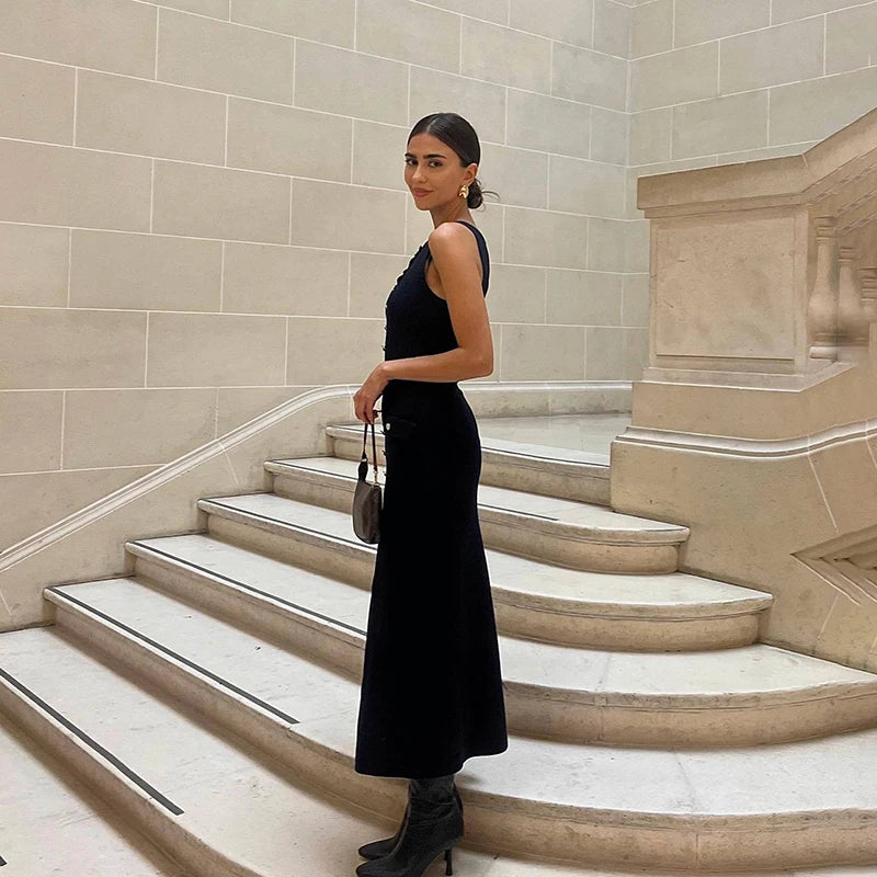 שמלת מידי אלגנטית סרוגה בעיטור כפתורים ושסע קטן - פנלופי