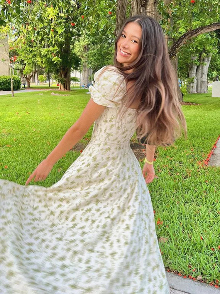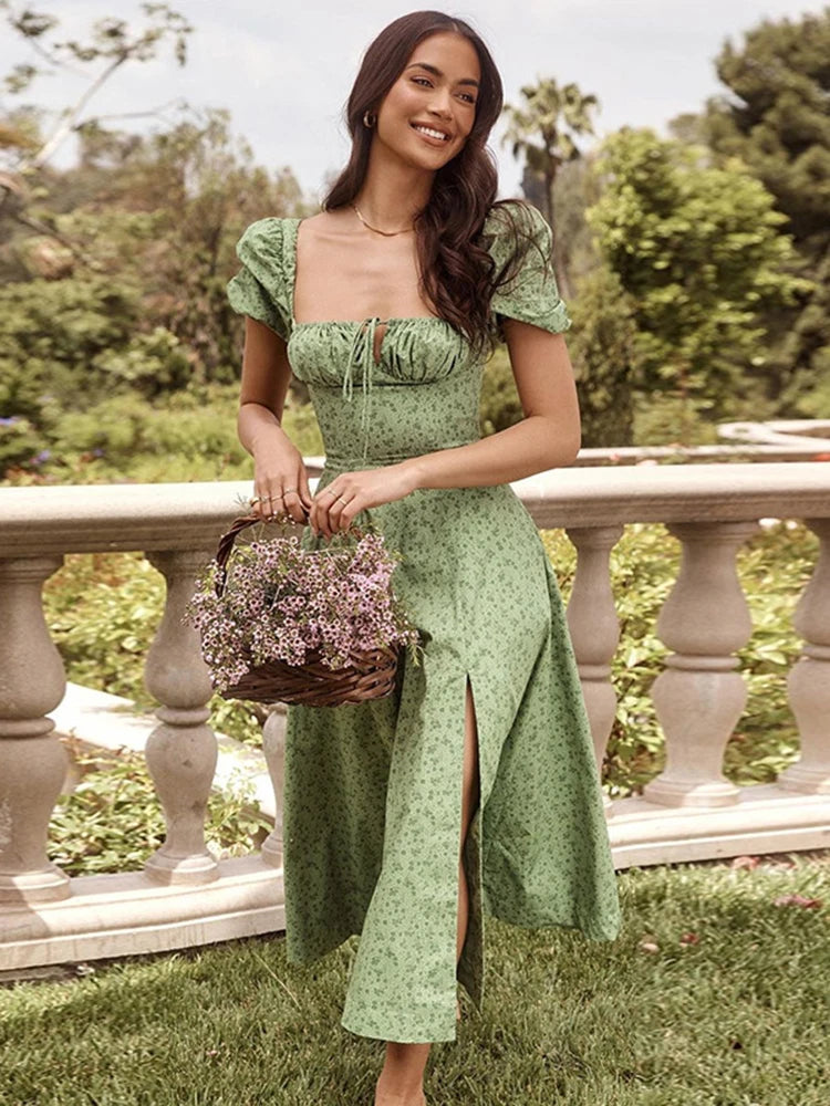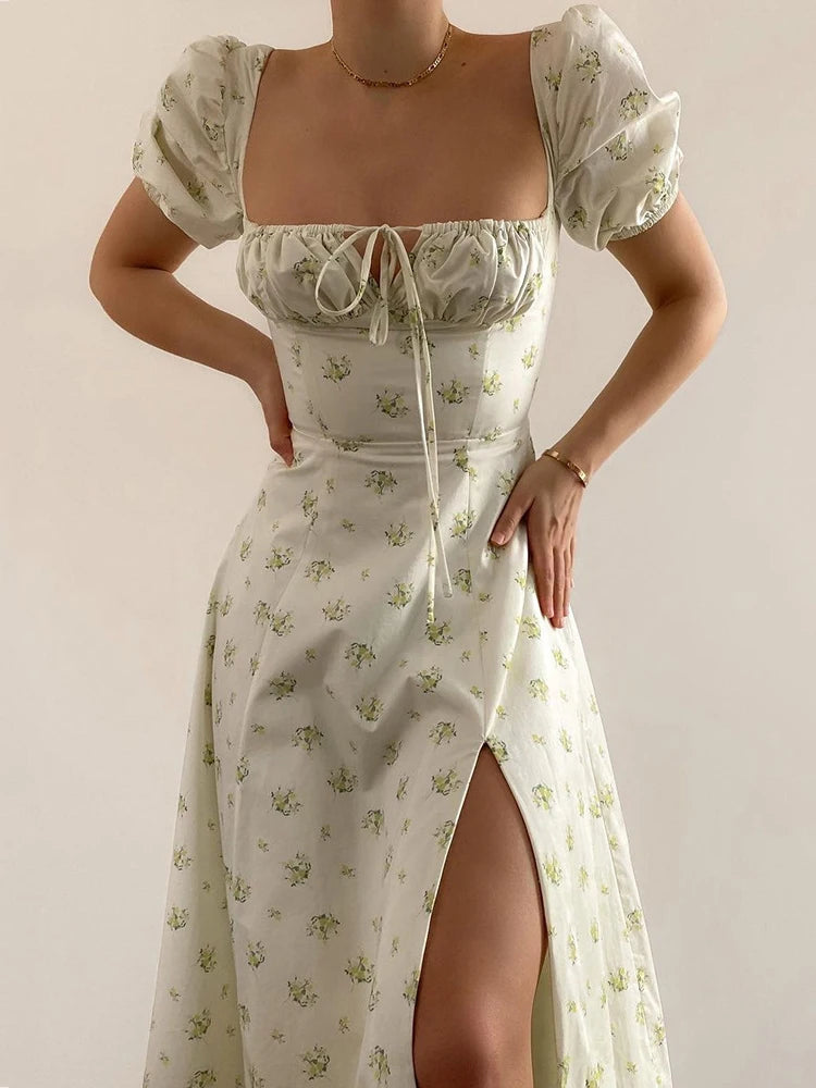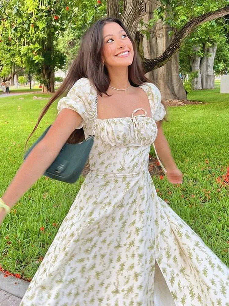 גמישות: מתיחה קלהסגנון שרוול: שרוול נפוחסוג תבנית: הדפסהגזרה: התאמה והתלקחותקו צווארון: צווארון מרובעקישוט: קשירה בחזהסגנון: כפריאורך השמלה: אמצע השוקאורך שרוול (ס"מ): קצר