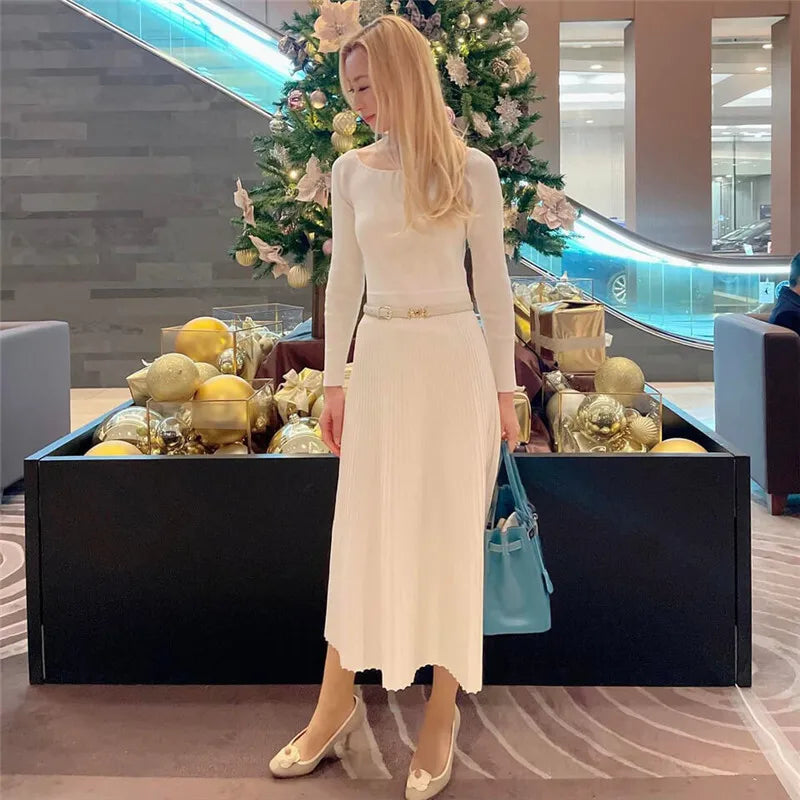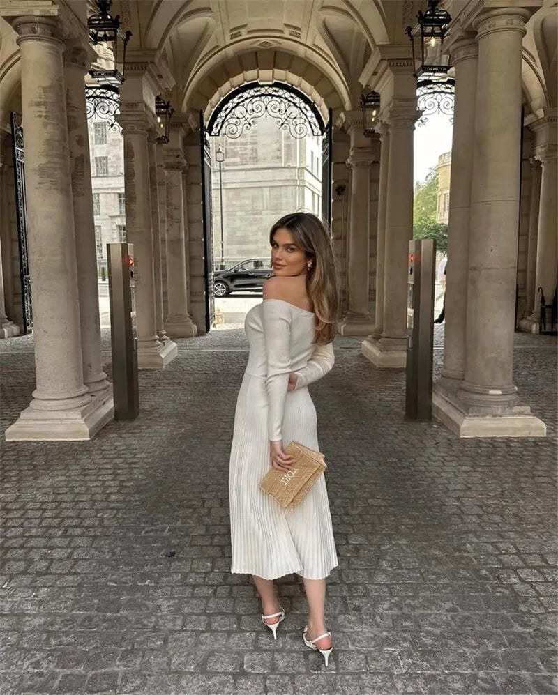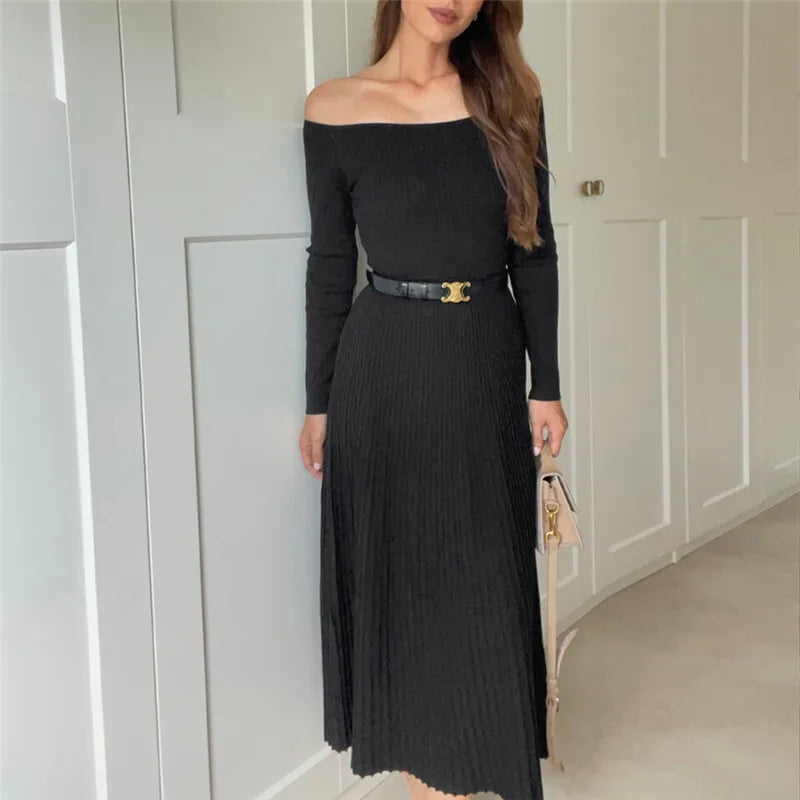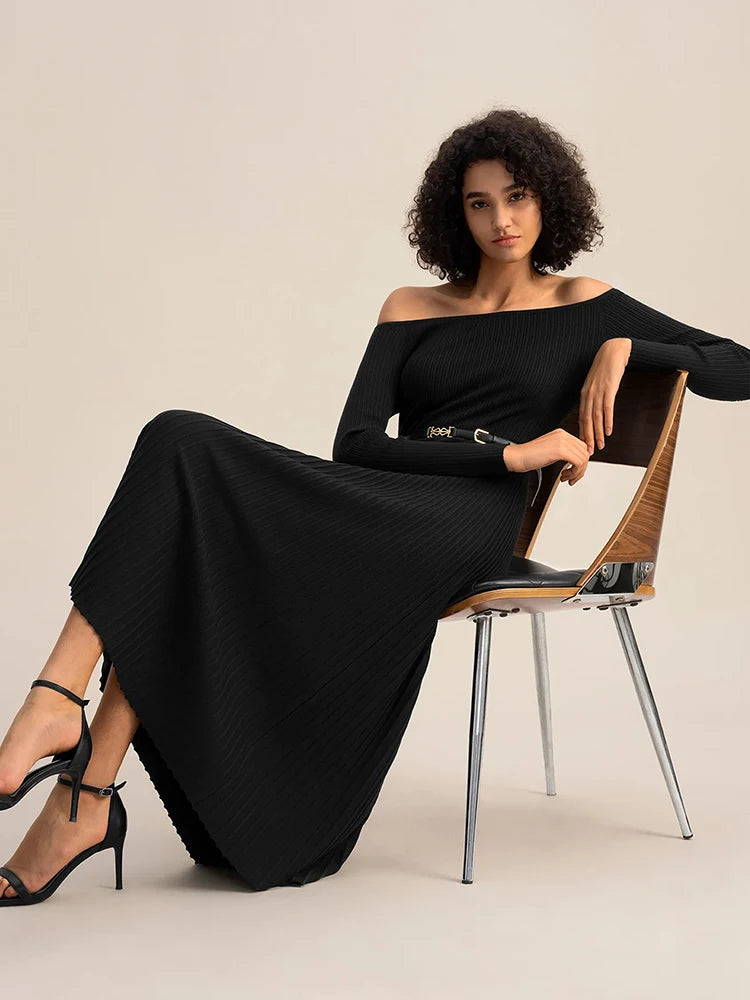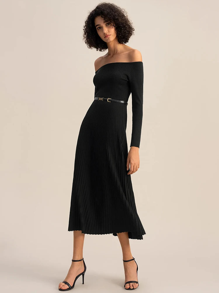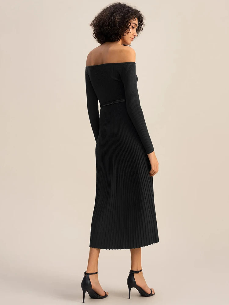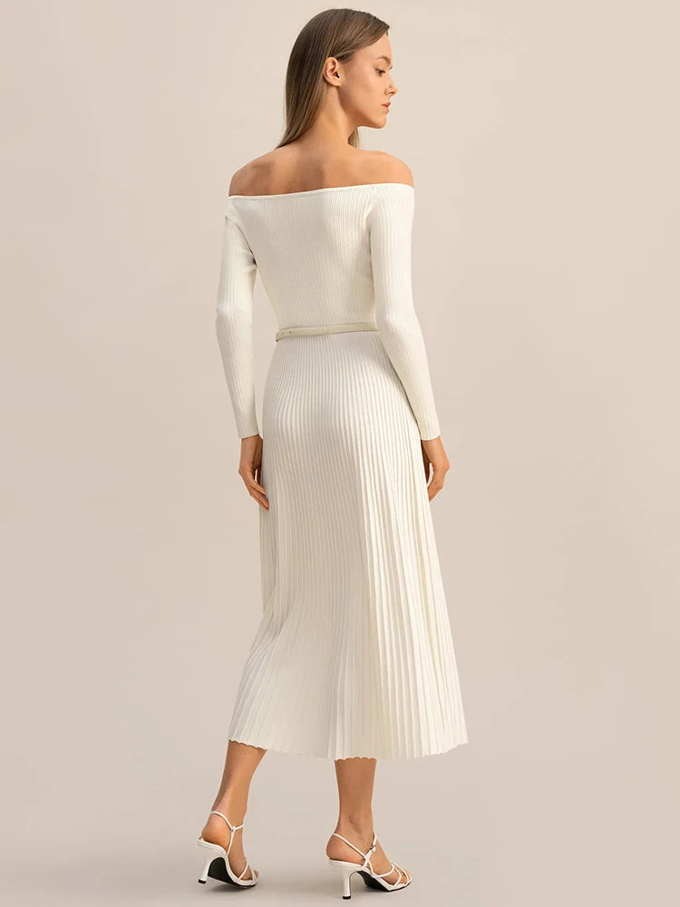 שמלת מידי סרוגה בגזרת A כתפיים חשופות - MILIAN