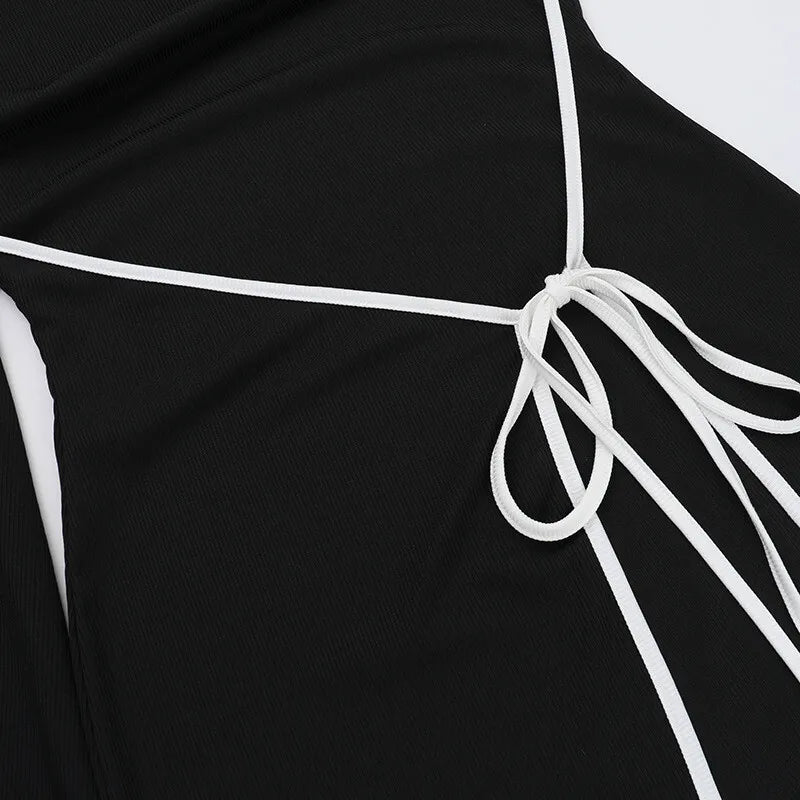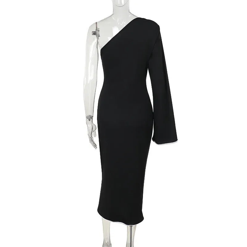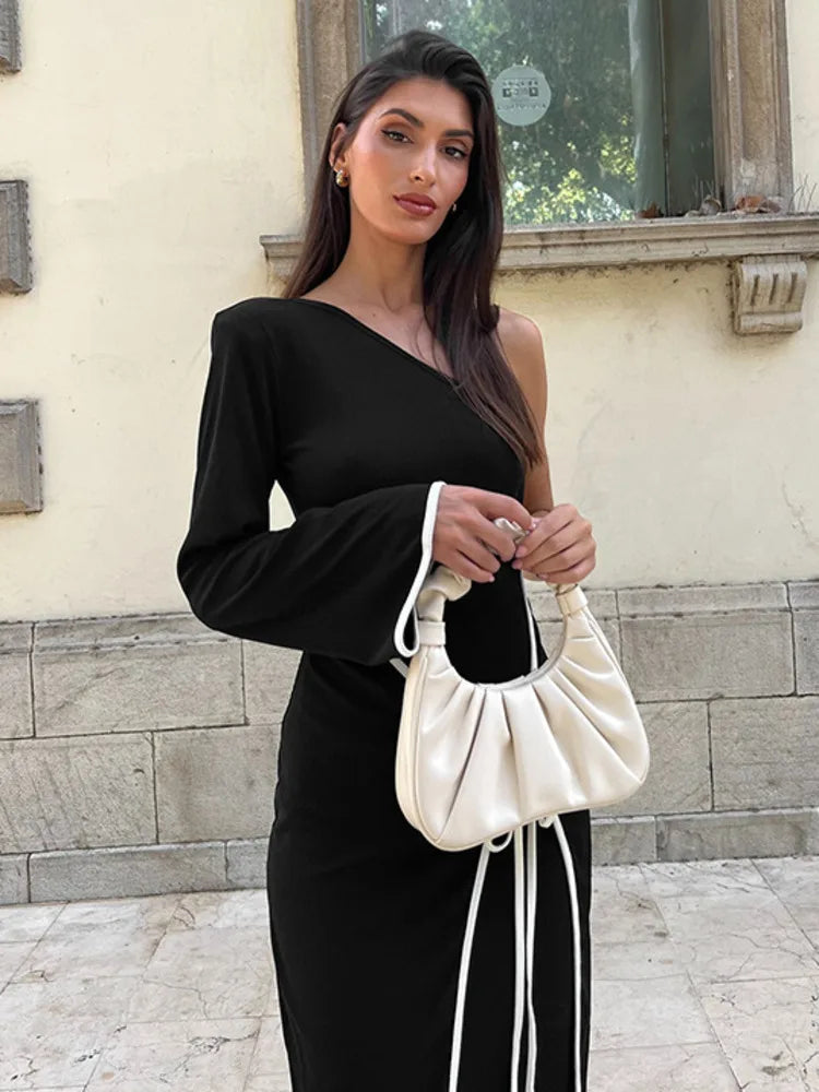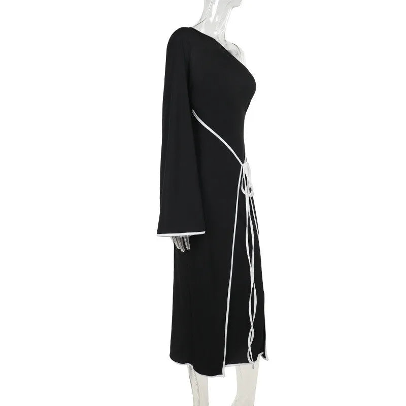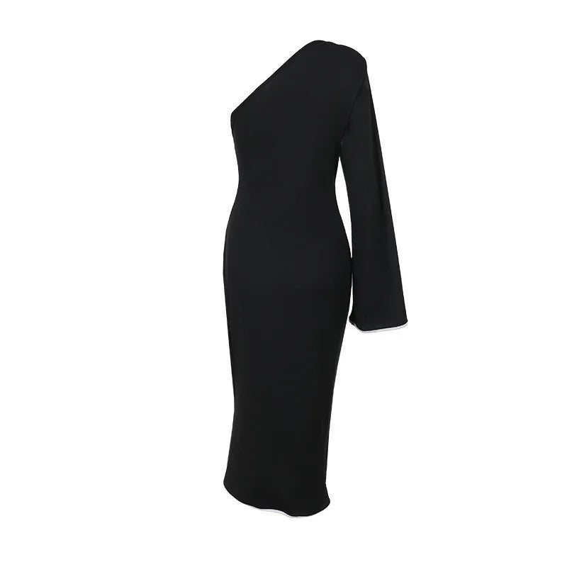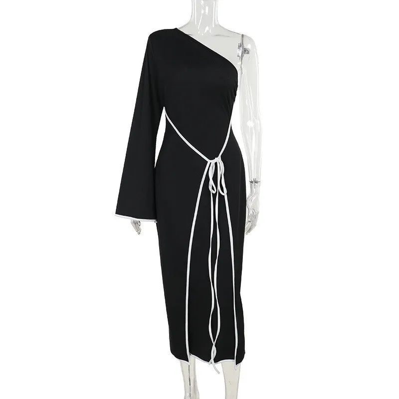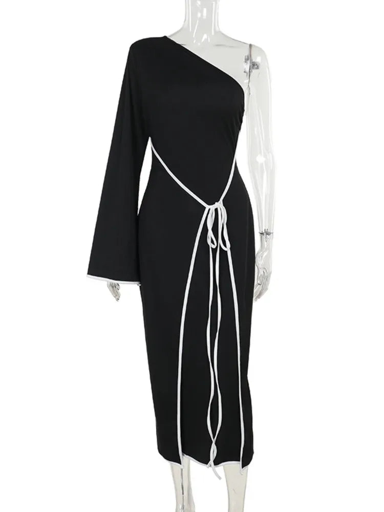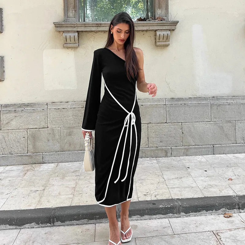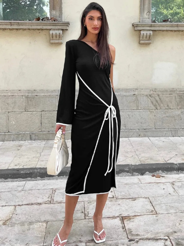 שמלת מידי סרוגה שרוול אחד בעיטור קשירת מעטפת - תהילה
