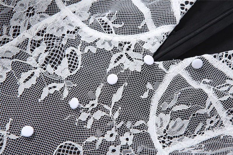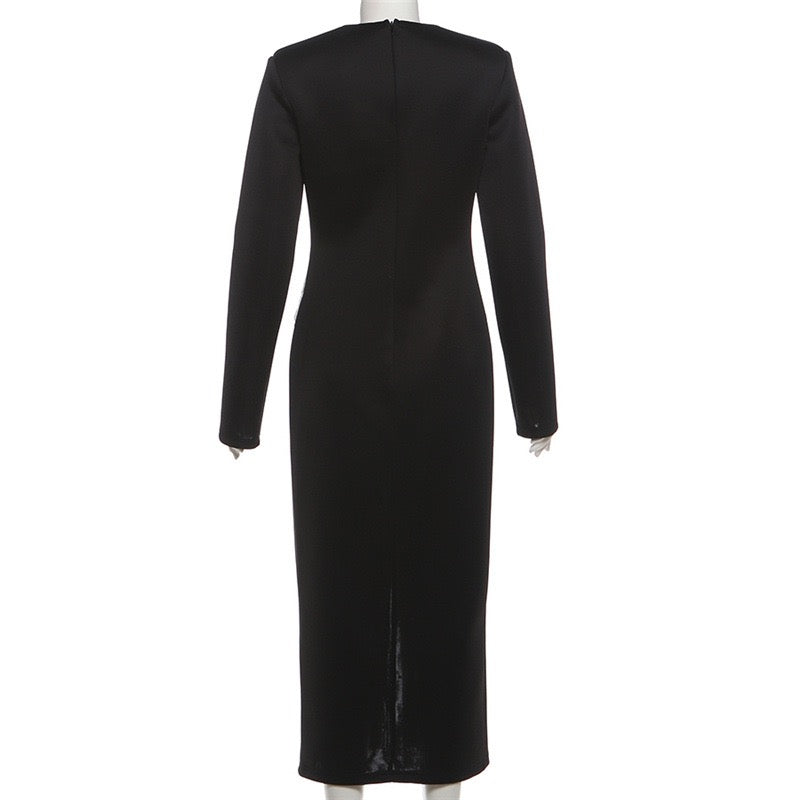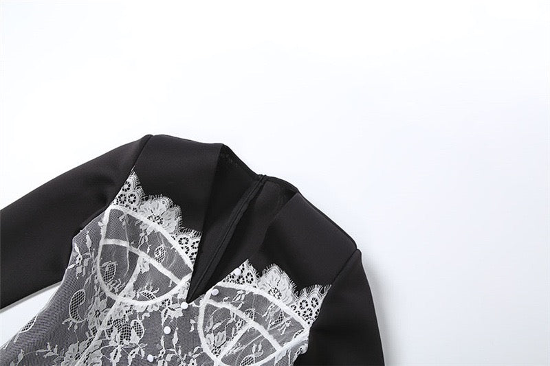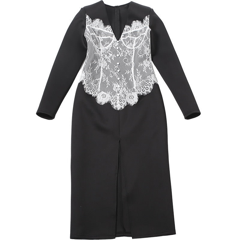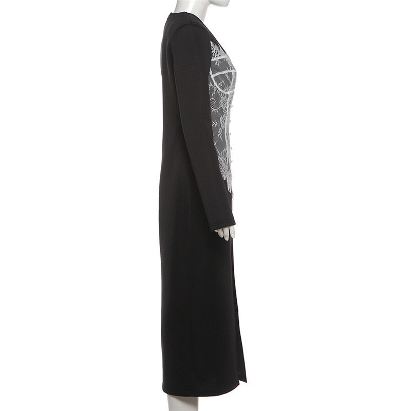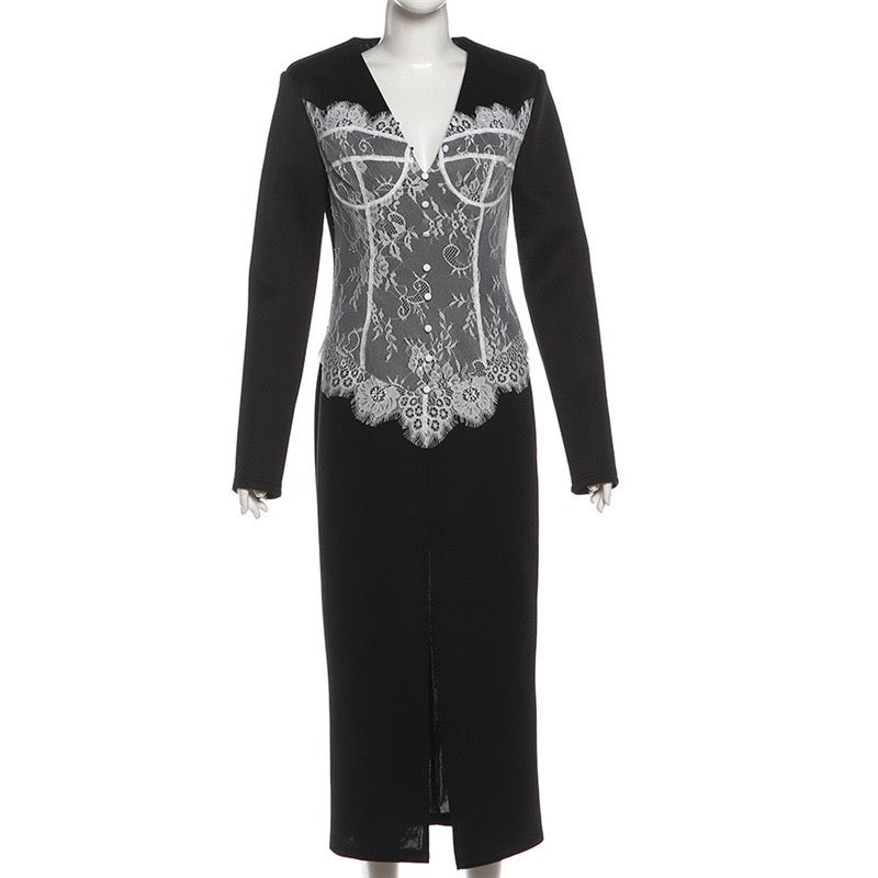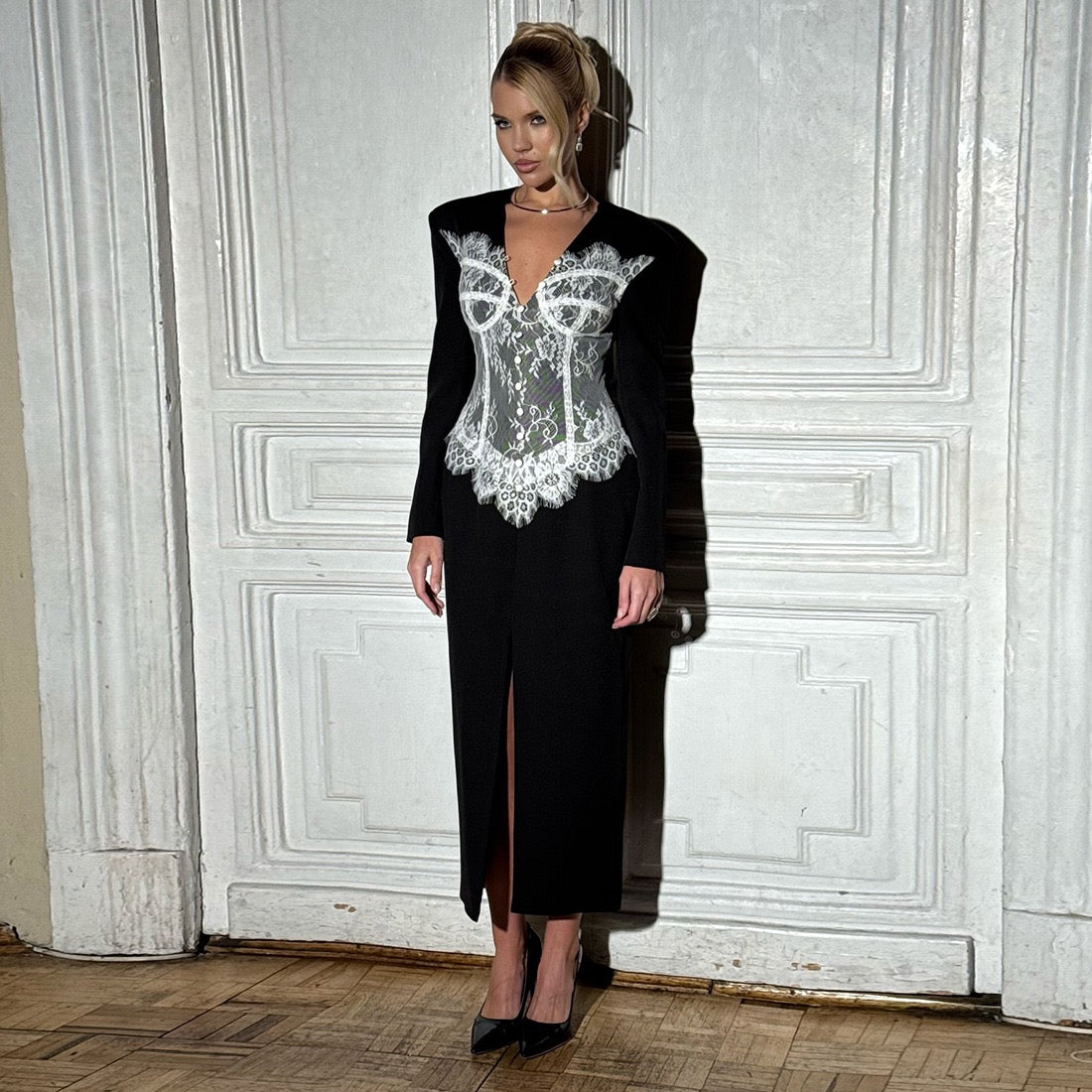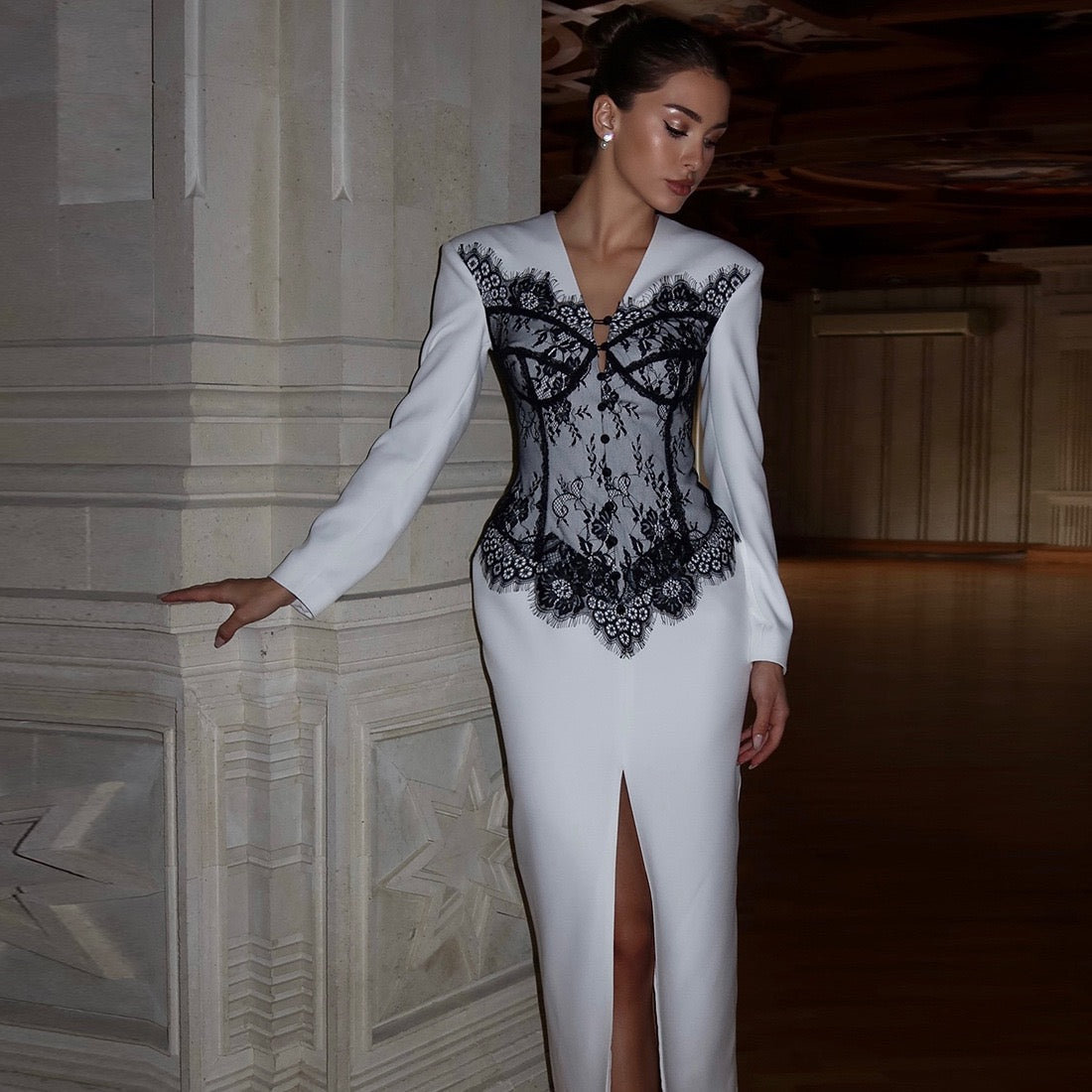 שמלת מקסי אלגנטית מחויטת בעיטור תחרה בעיצוב שסע - YANA