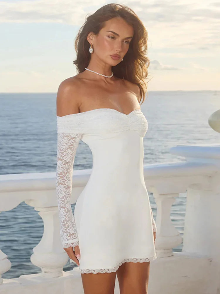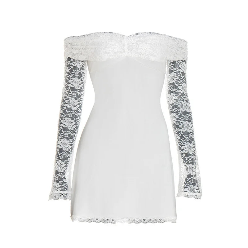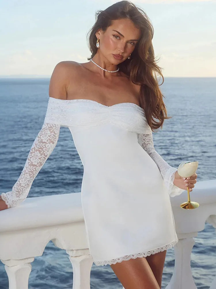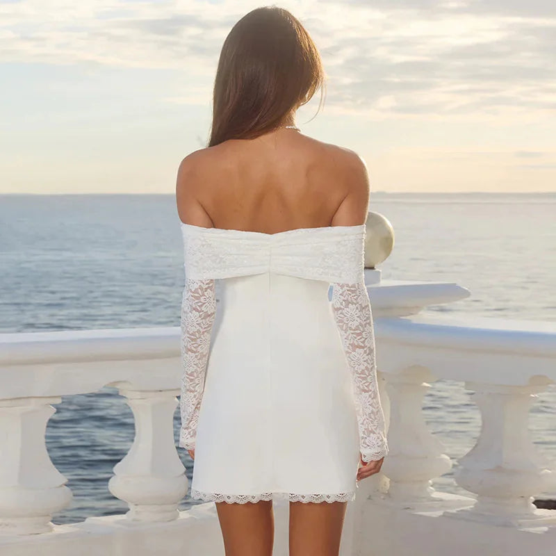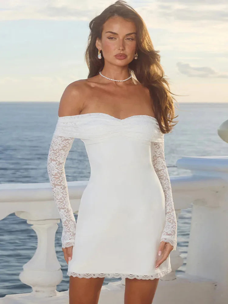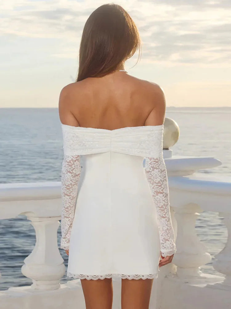 שמלת מיני כתפיים חשופות בעיטור תחרה - אנג'ליק