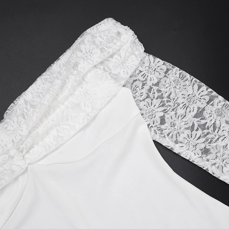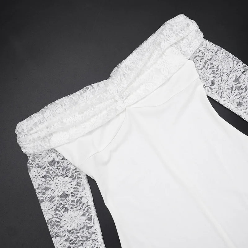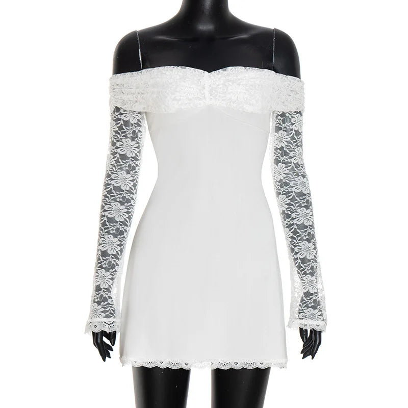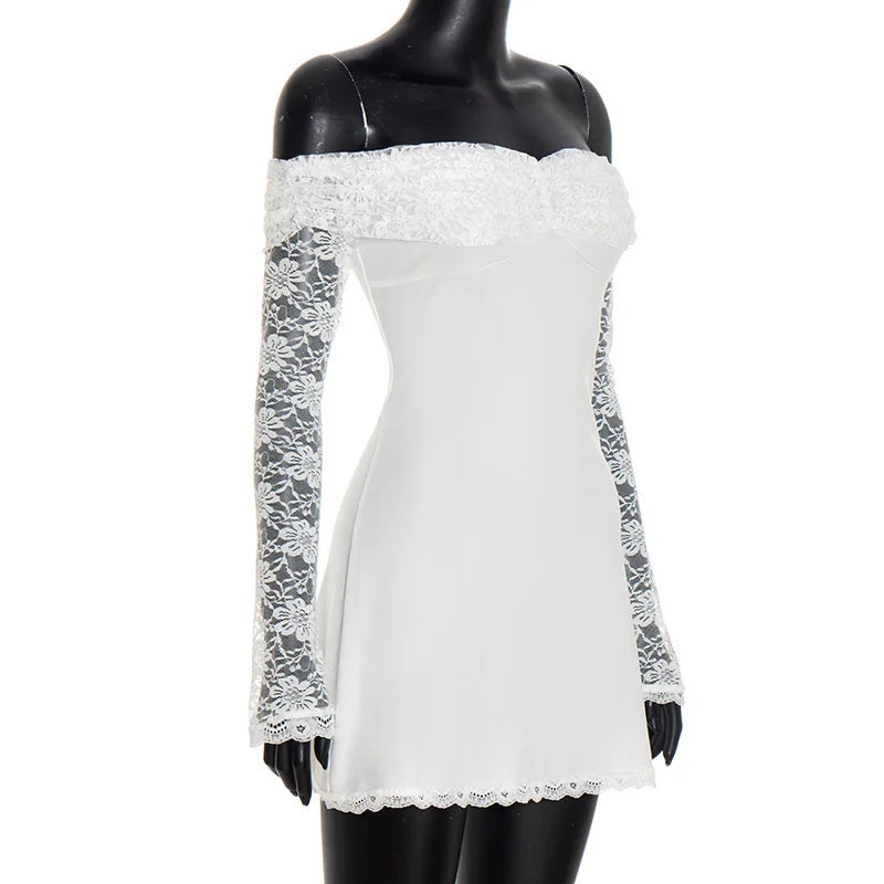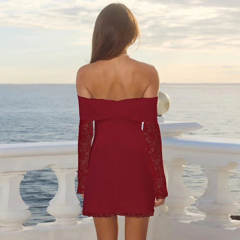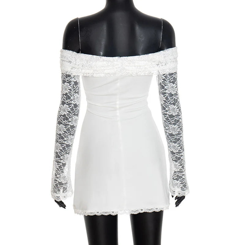 שמלת מיני כתפיים חשופות בעיטור תחרה - אנג'ליק
