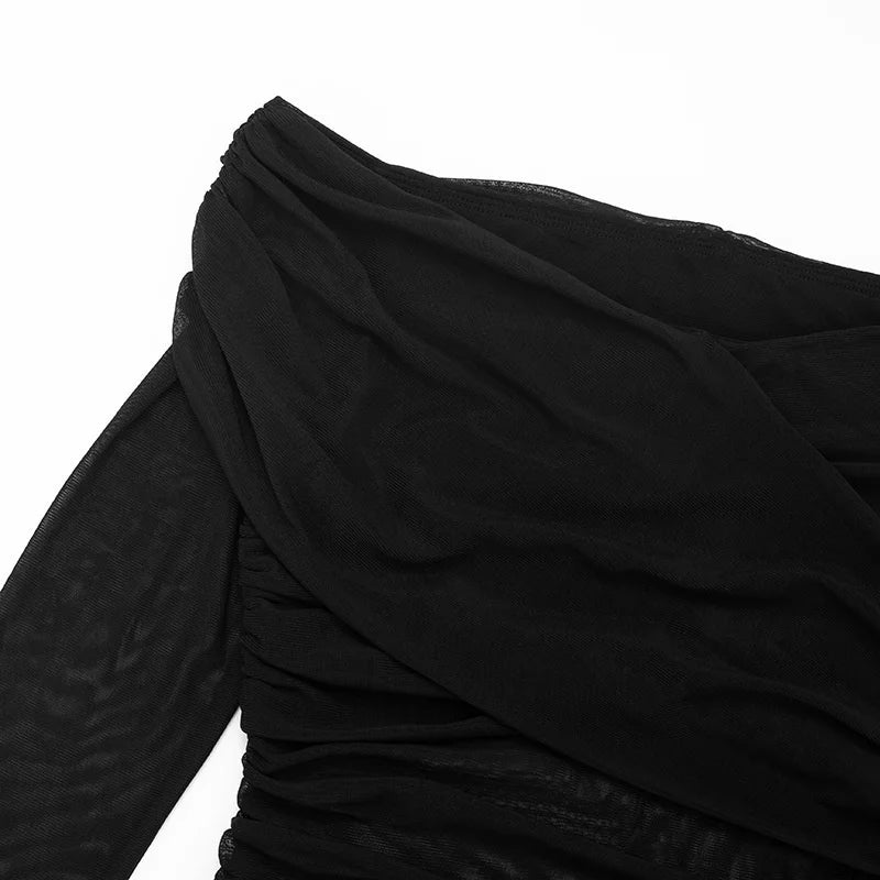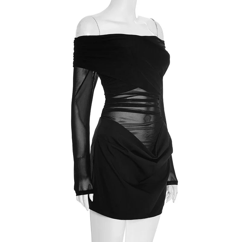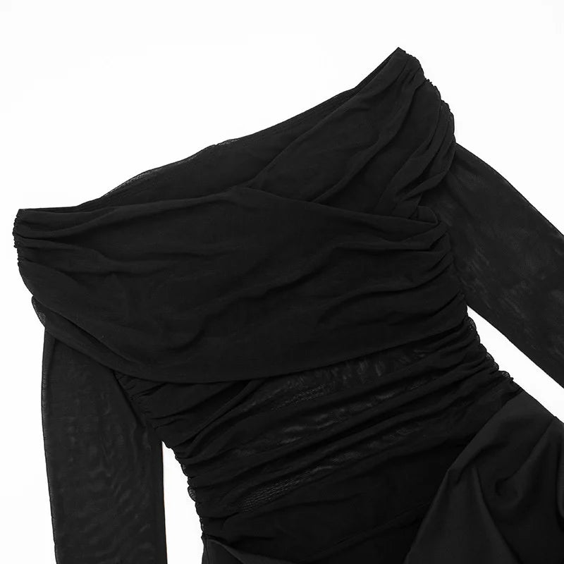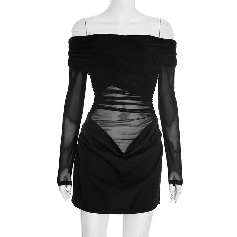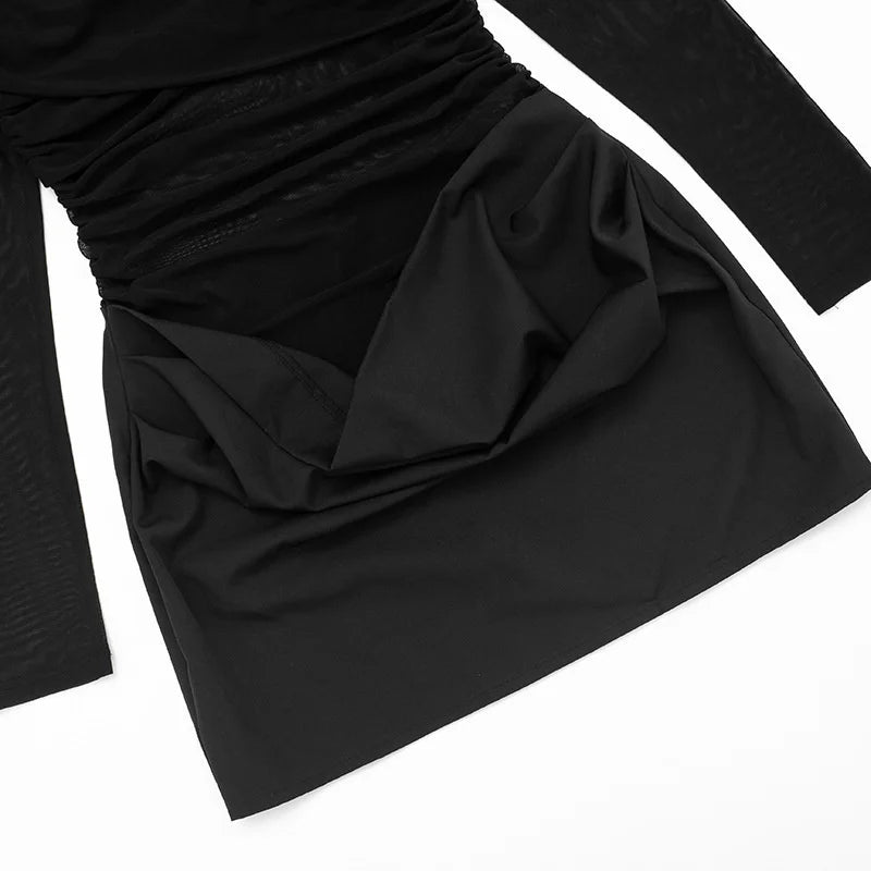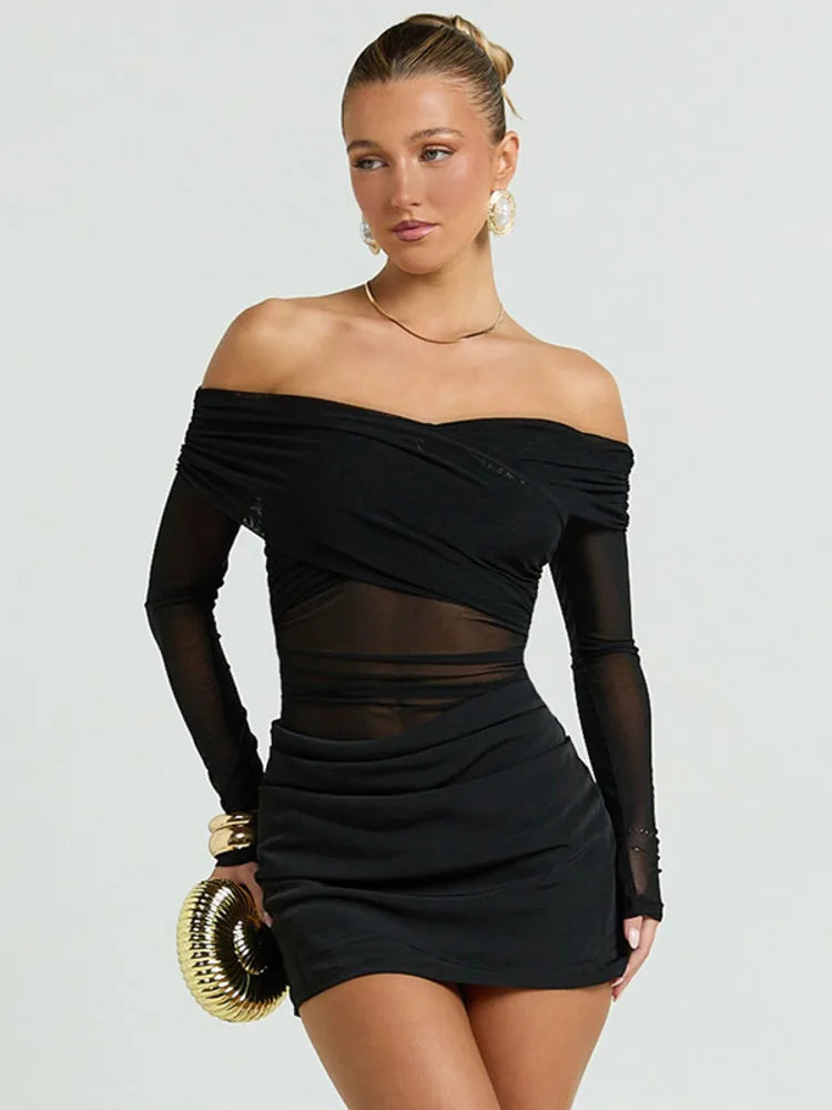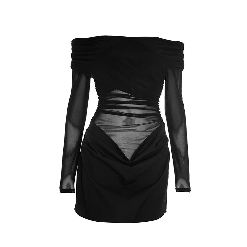 שמלת מיני כתפיים חשופות בעיצוב קיפולים ורשת - אסיה