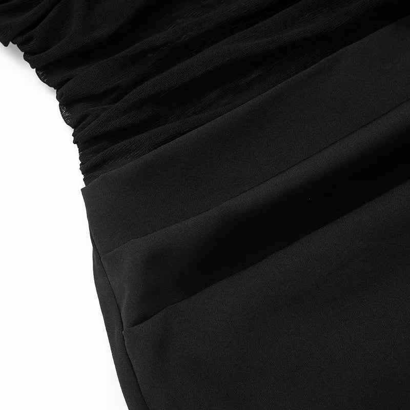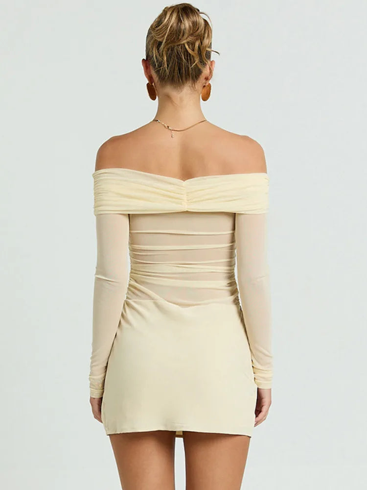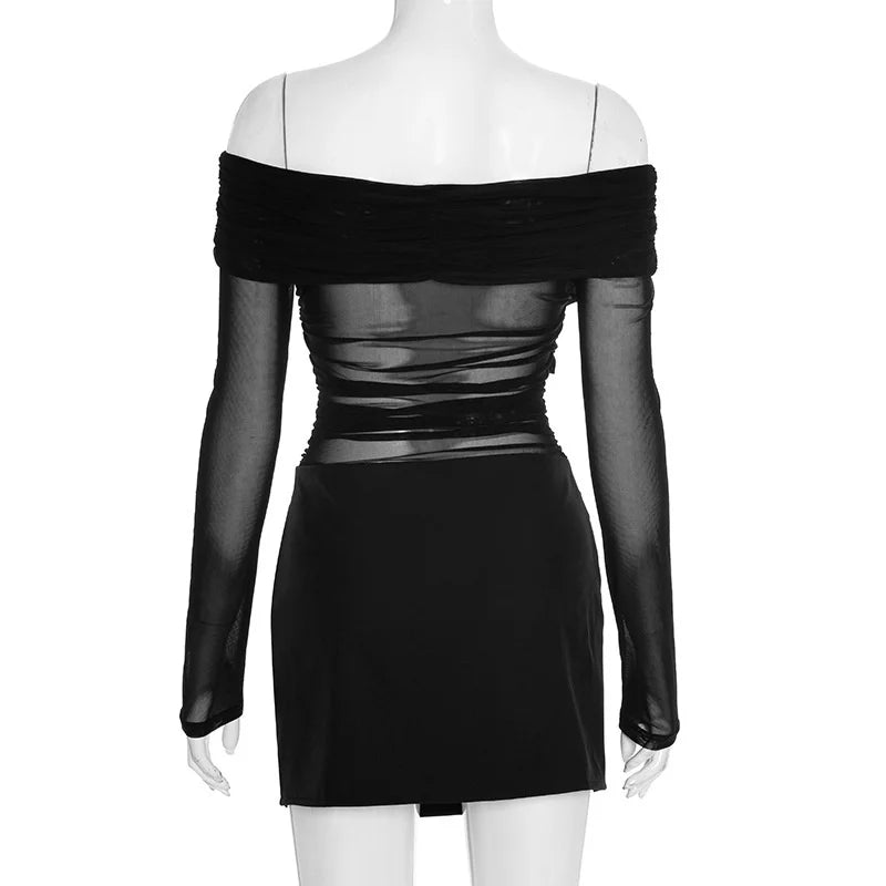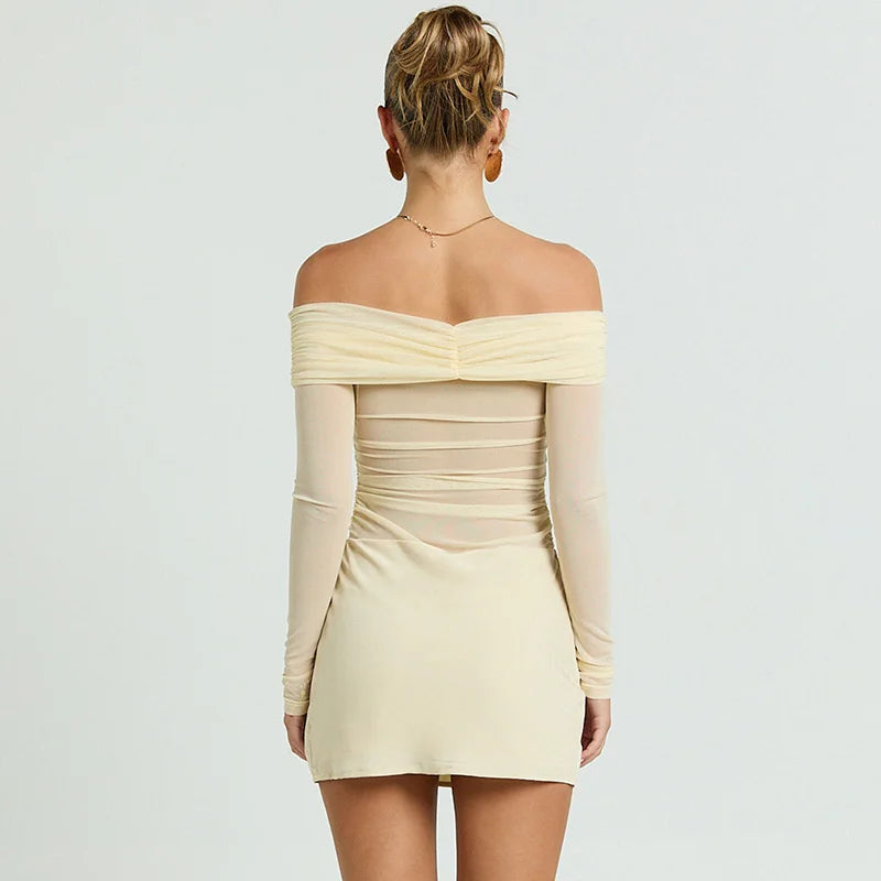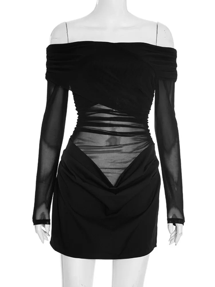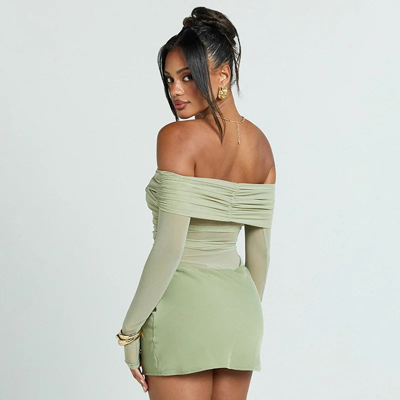 שמלת מיני כתפיים חשופות בעיצוב קיפולים ורשת - אסיה
