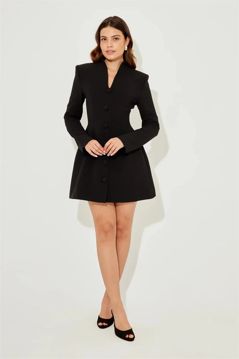 שמלת מיני מחויטת בעיצוב כפתורים - לונדון