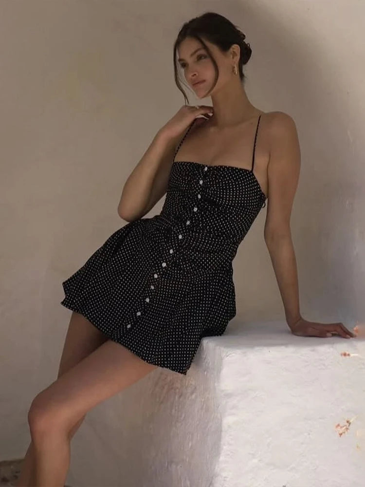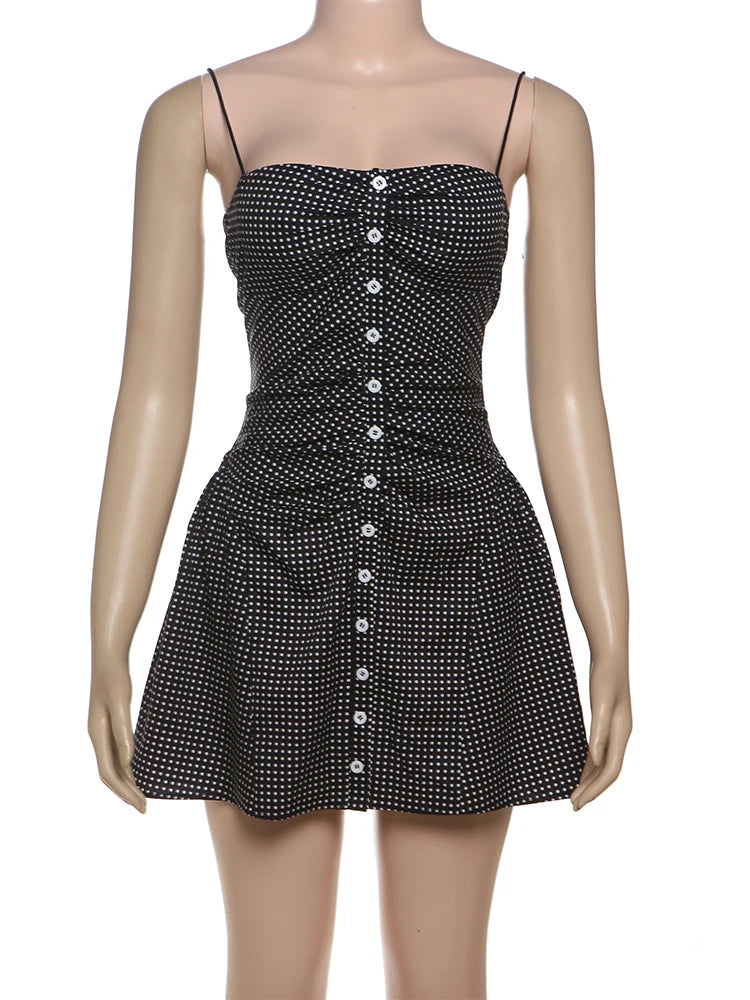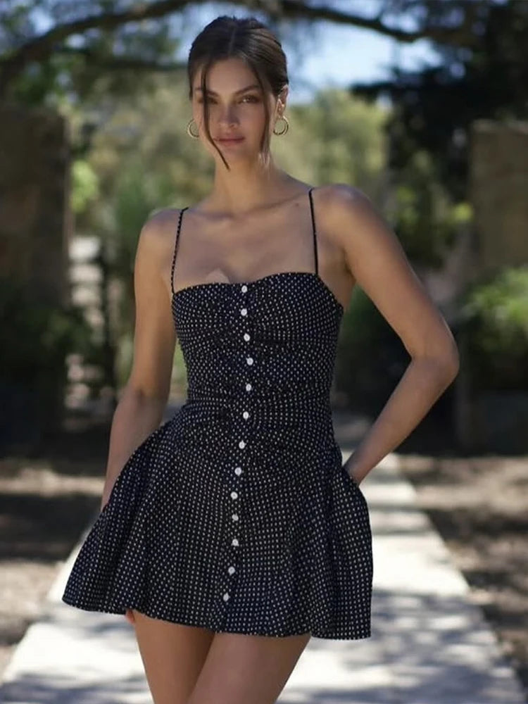 שמלת מיני נקודות בגזרת A בעיטור כפתורים - גלי