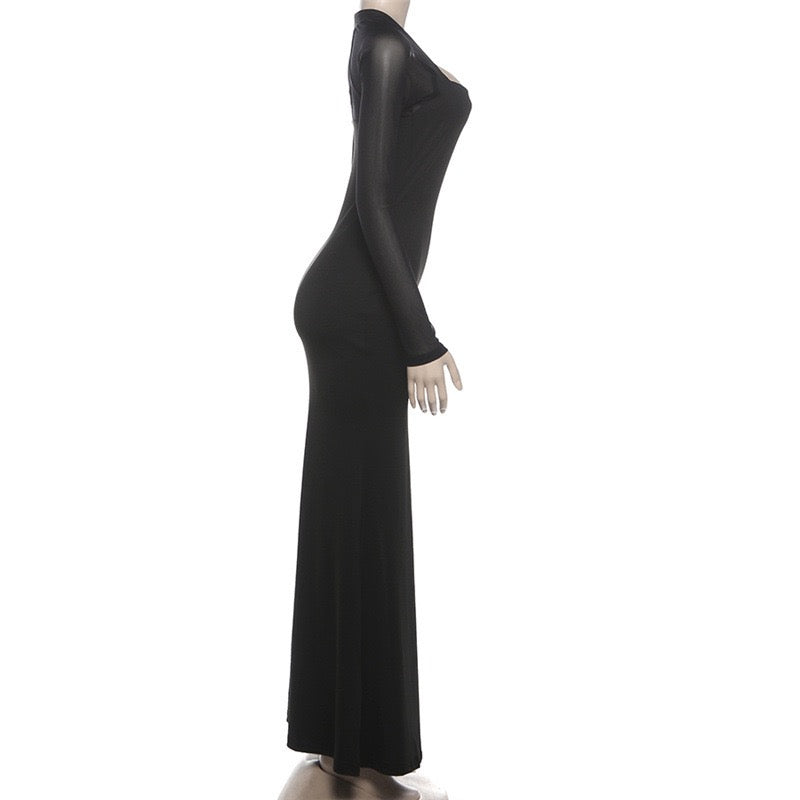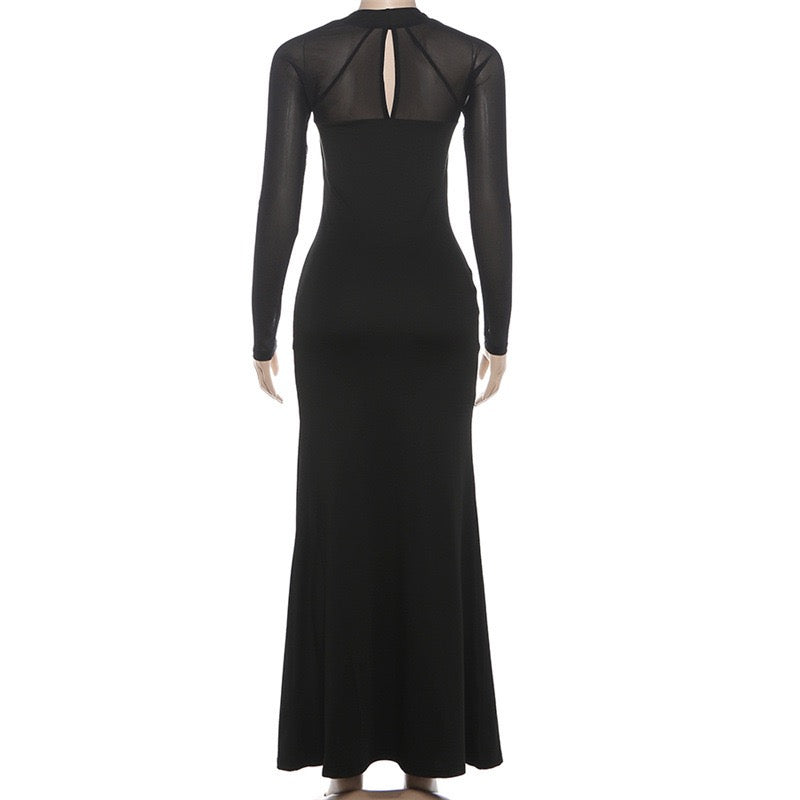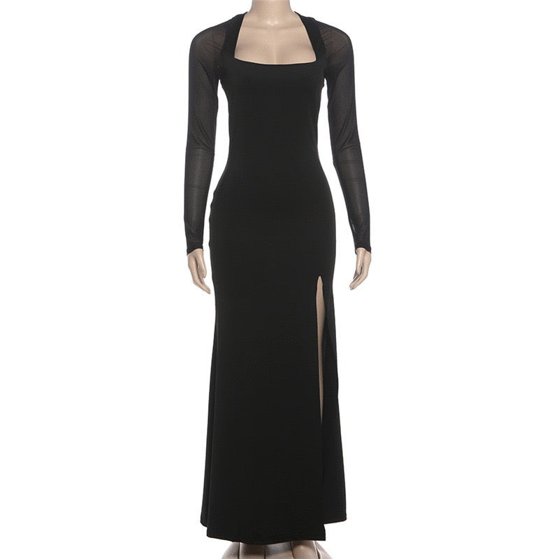 שמלת מקסי בד מחטב בעיצוב שסע שרוולי שיפון - פולה