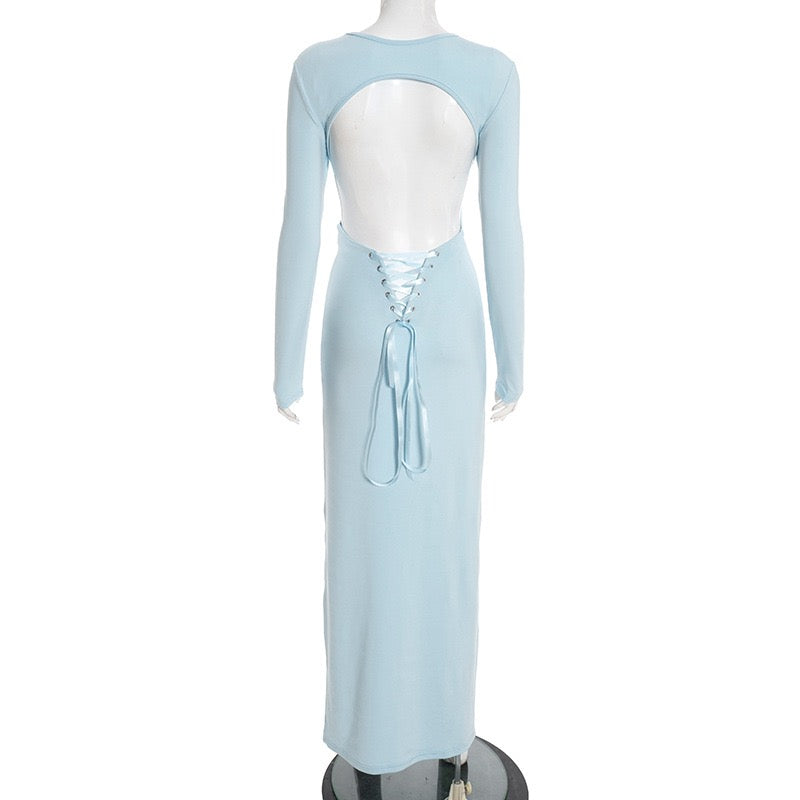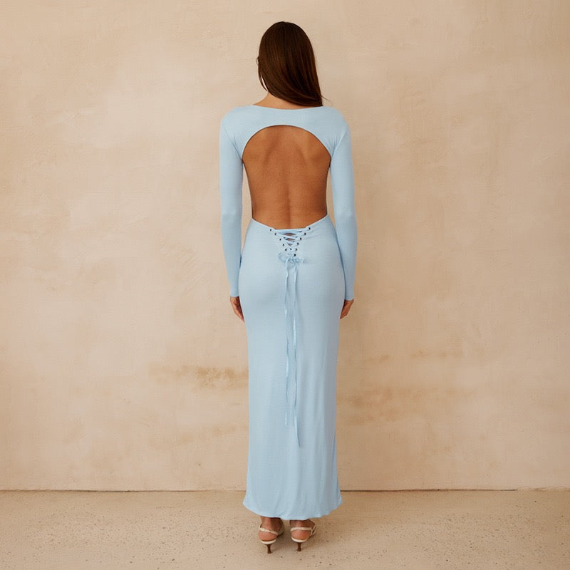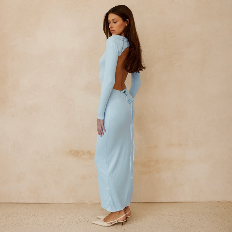 שמלת מקסי גב פתוח בעיטור קשירה - עדיאל