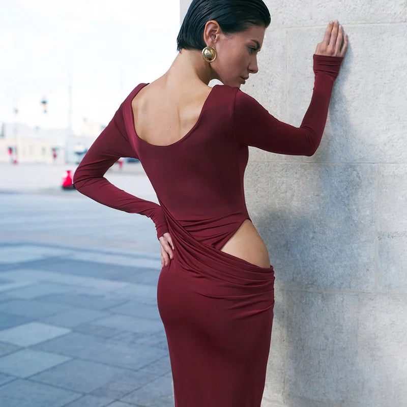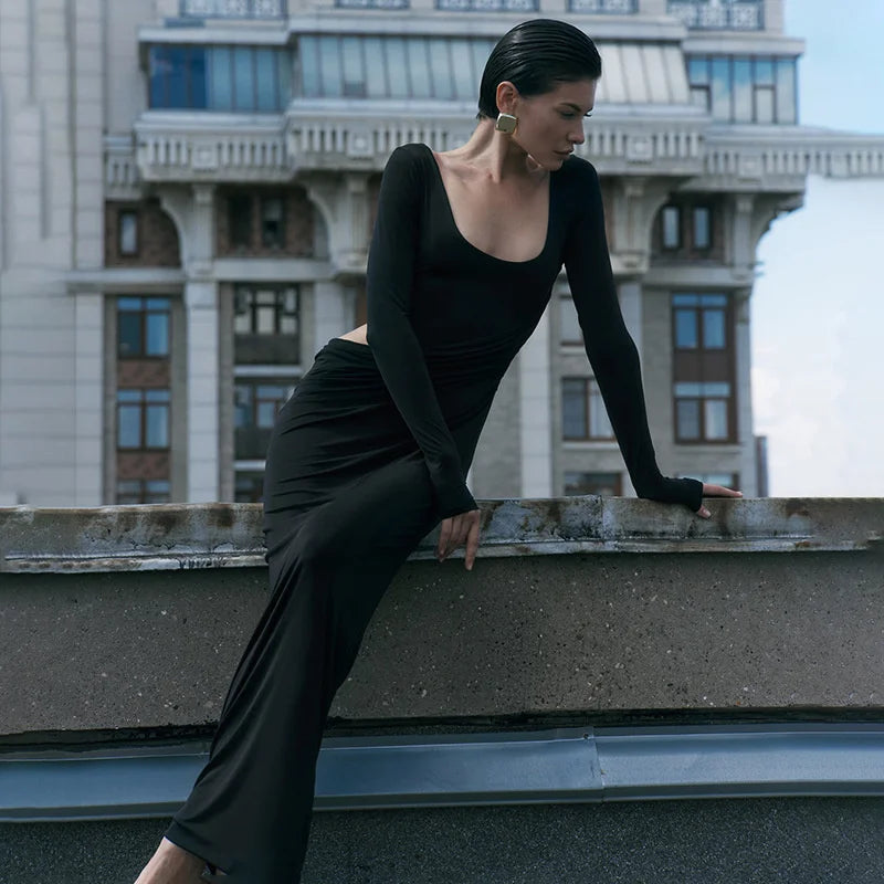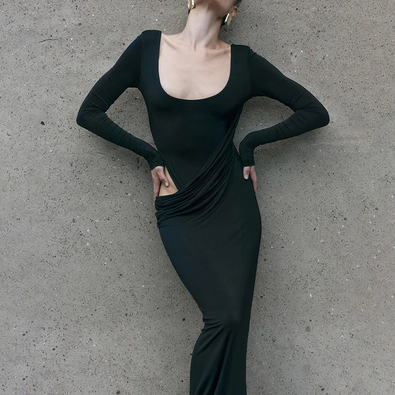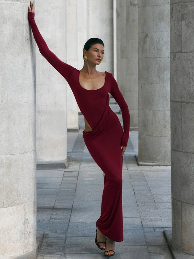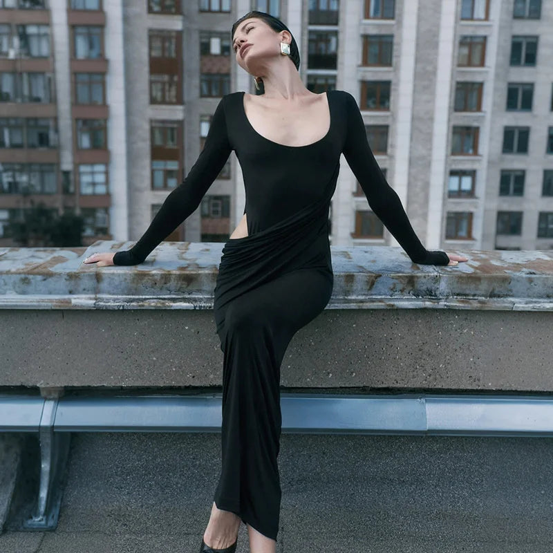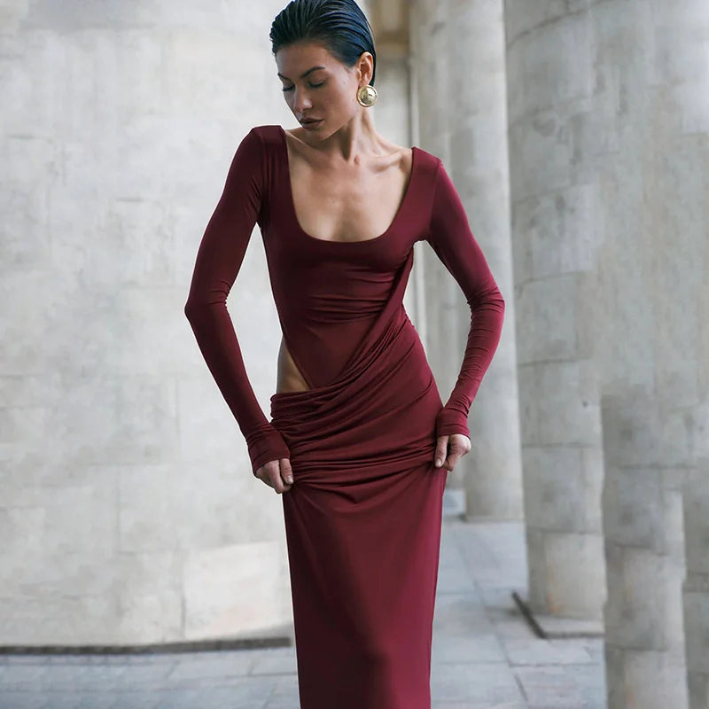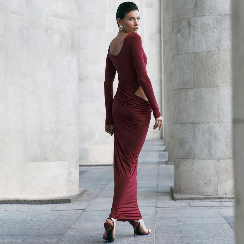 שמלת מקסי בעיצוב קיפולים ובגד גוף - ארין