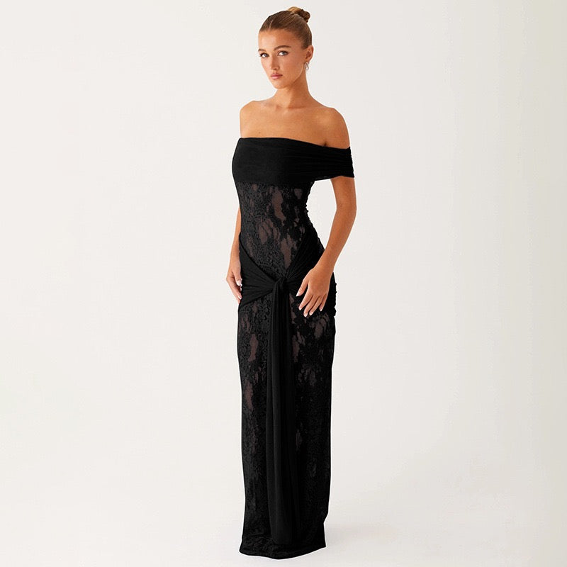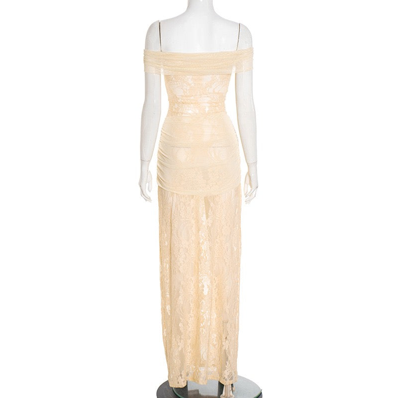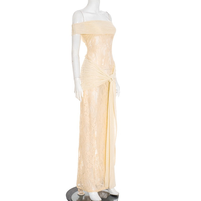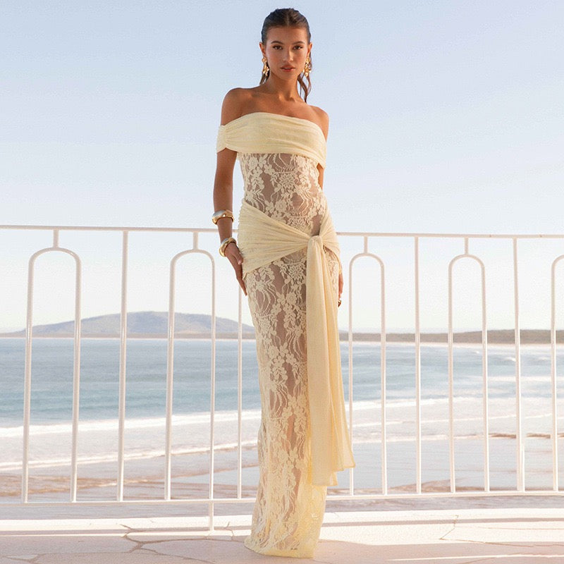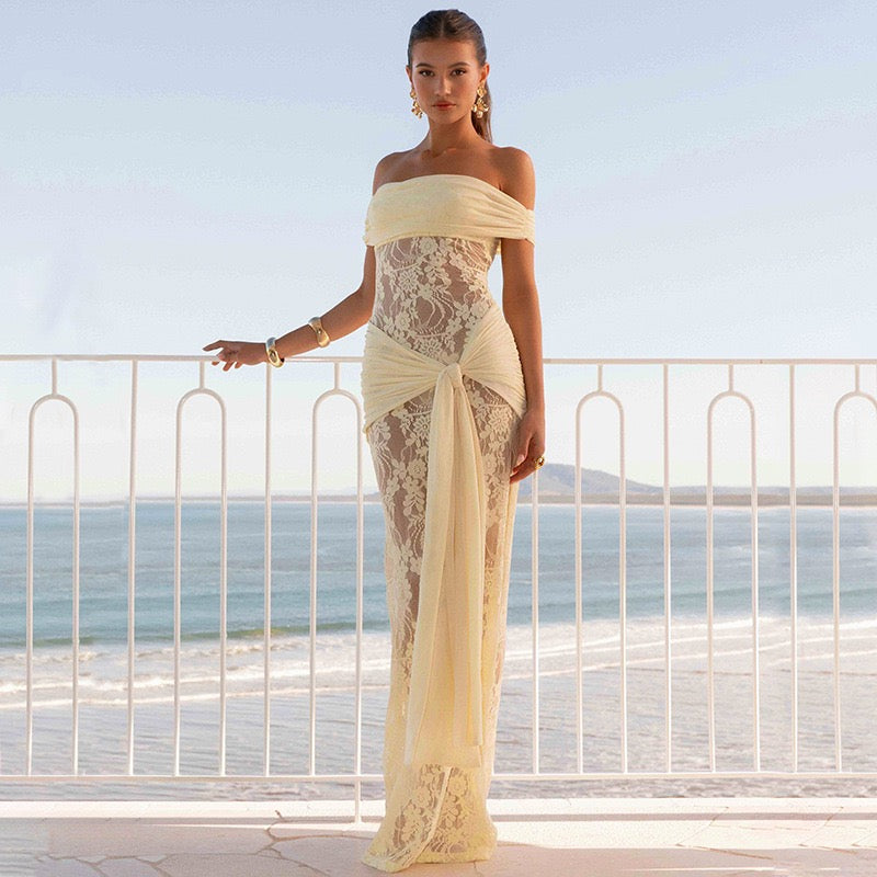 שמלת מקסי תחרה בעיצוב קשירה כתפיים חשופות - אראל