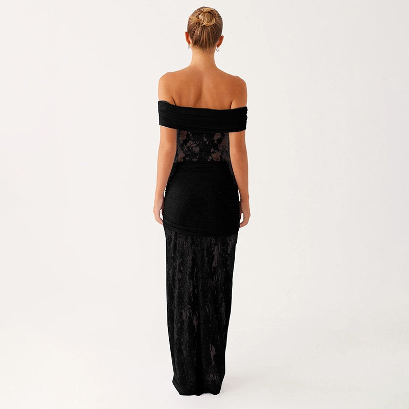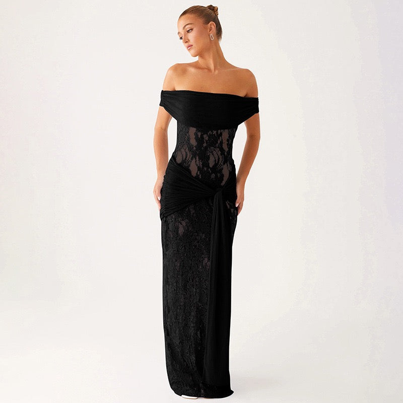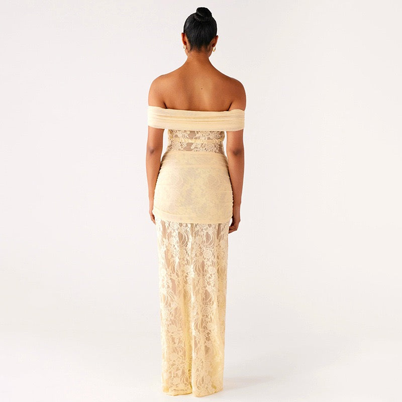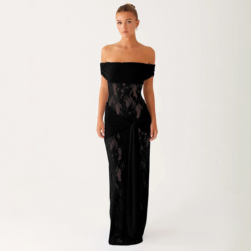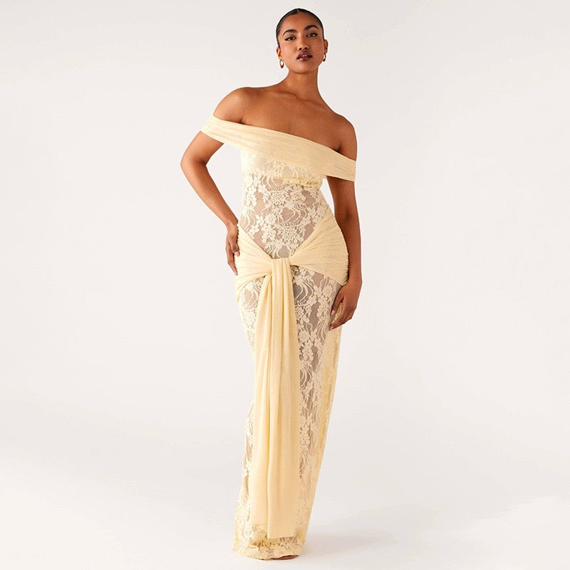 שמלת מקסי תחרה בעיצוב קשירה כתפיים חשופות - אראל