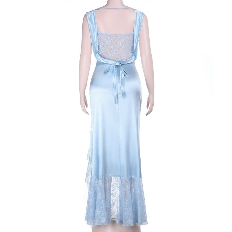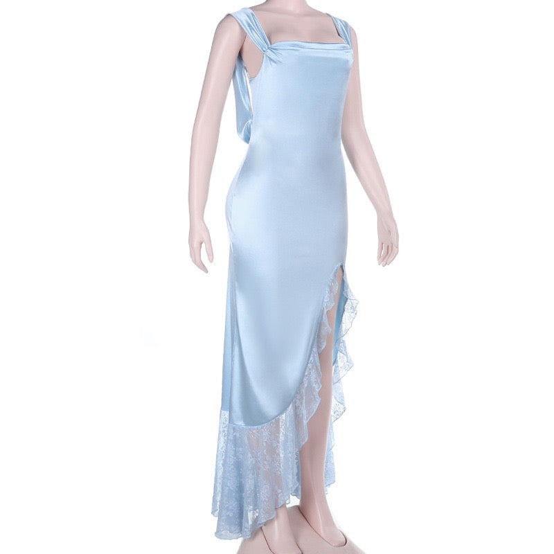 שמלת מקסי סאטן בעיטור תחרה - ANGEL