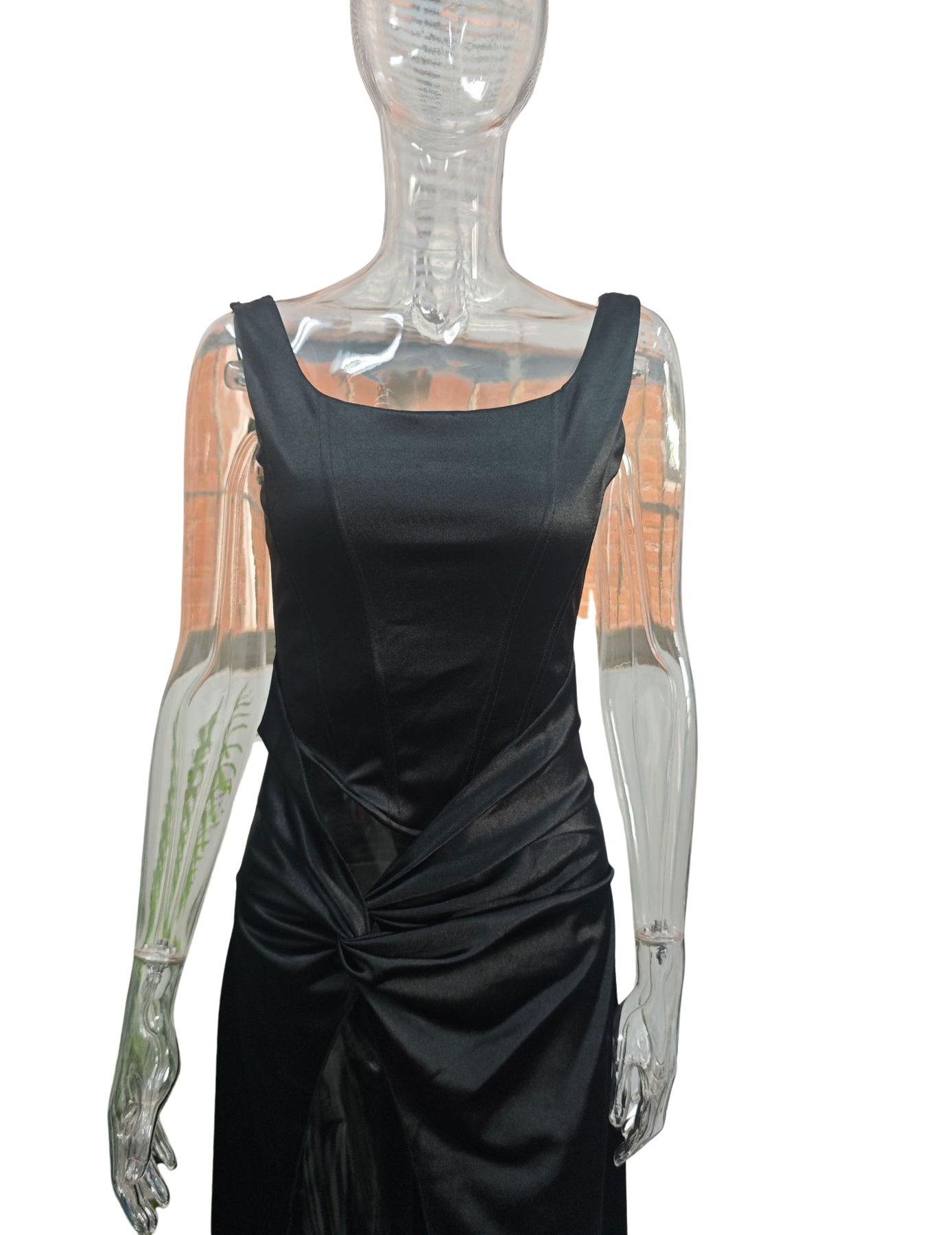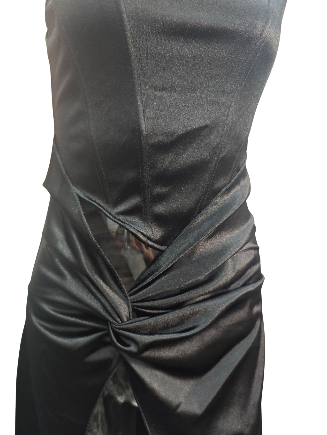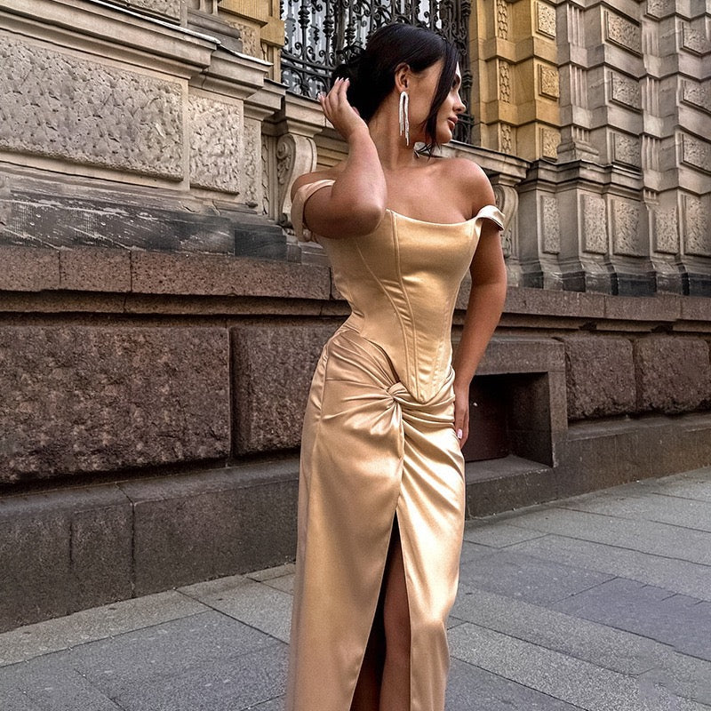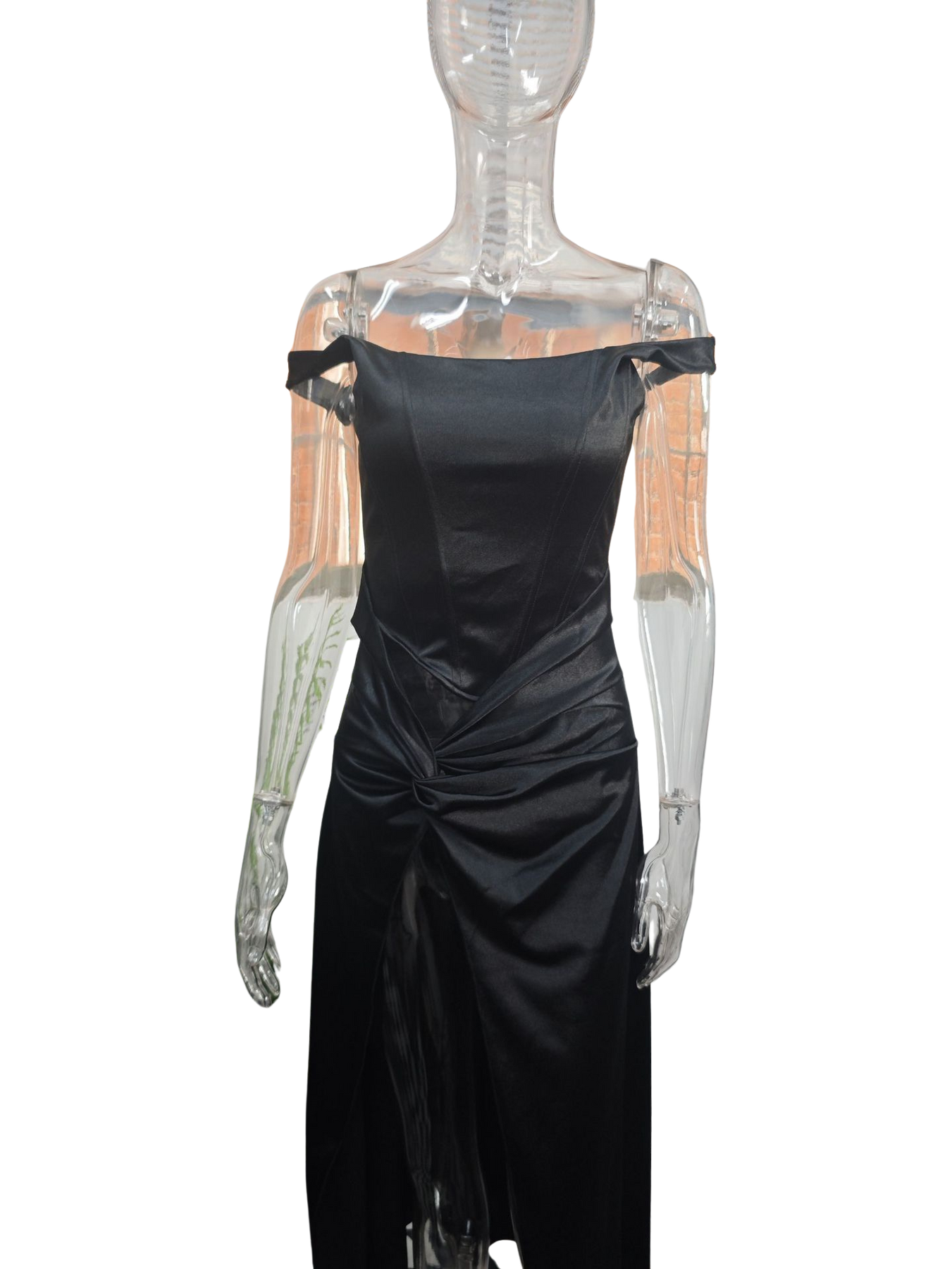 שמלת מקסי סאטן בעיצוב מחוך ושסע - לנורה