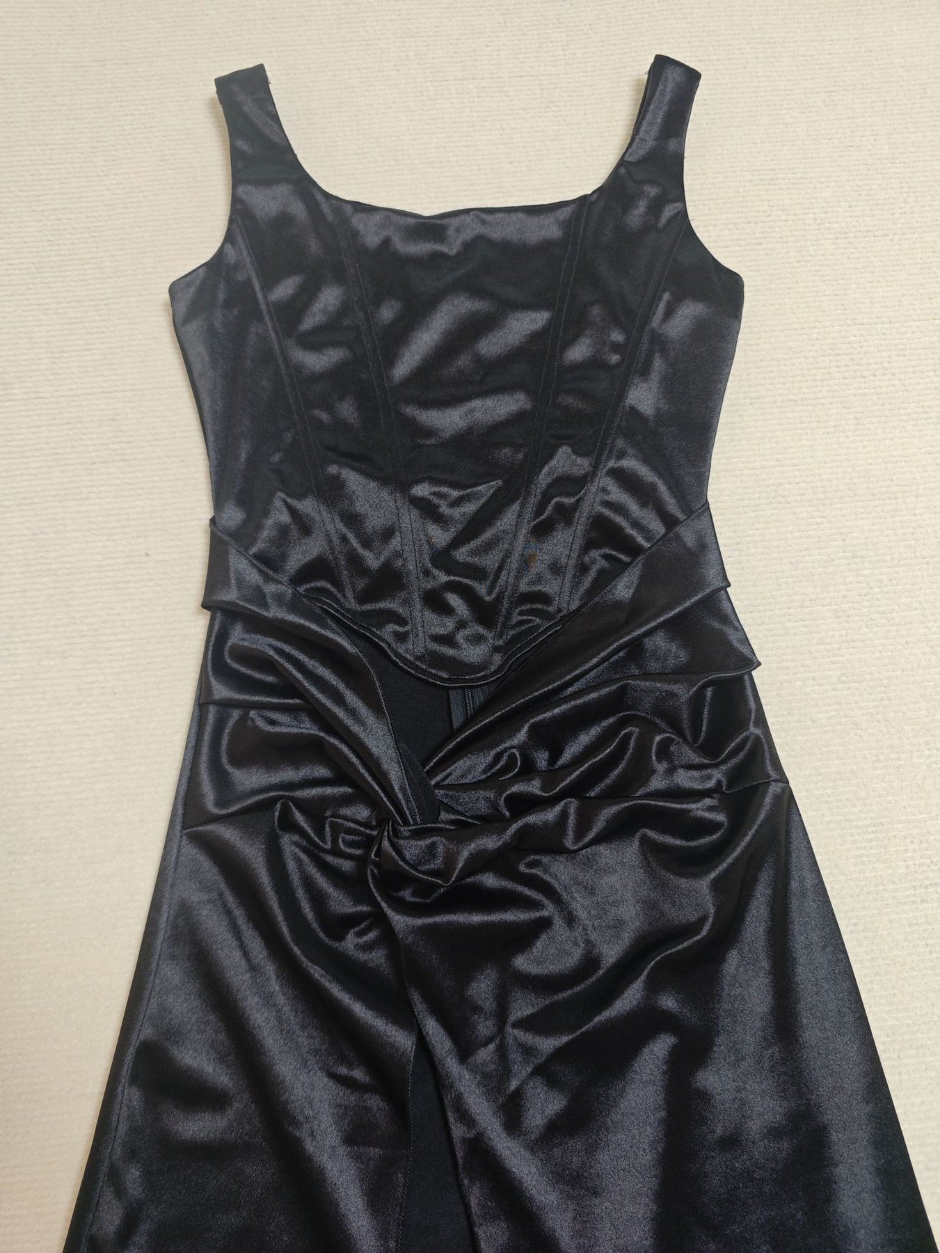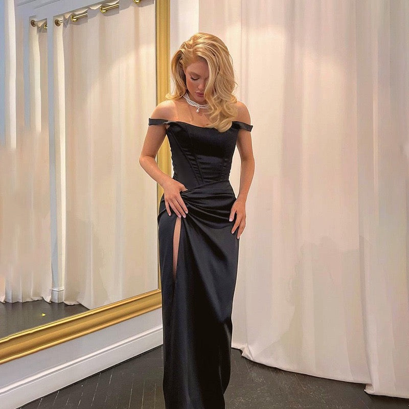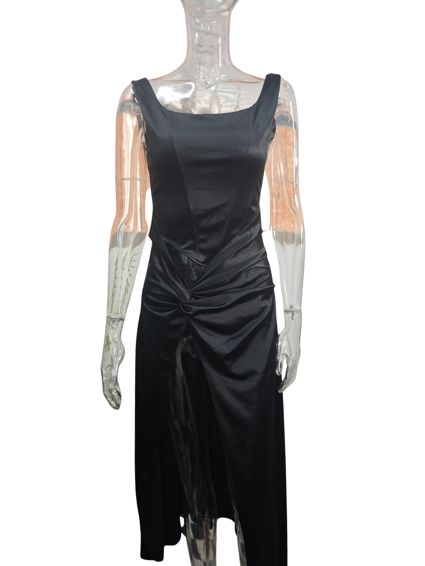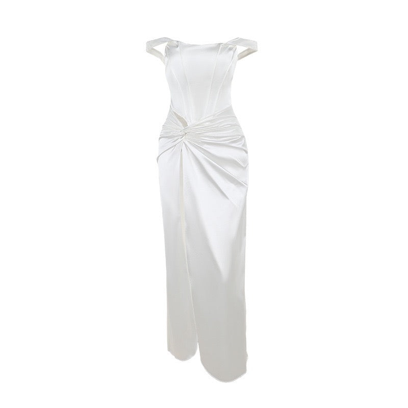 שמלת מקסי סאטן בעיצוב מחוך ושסע - לנורה