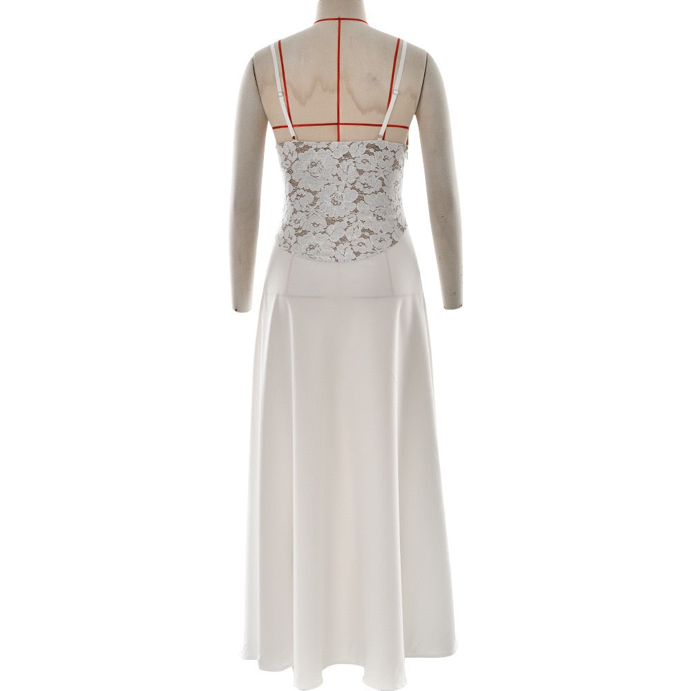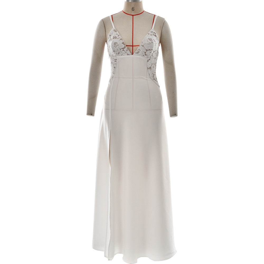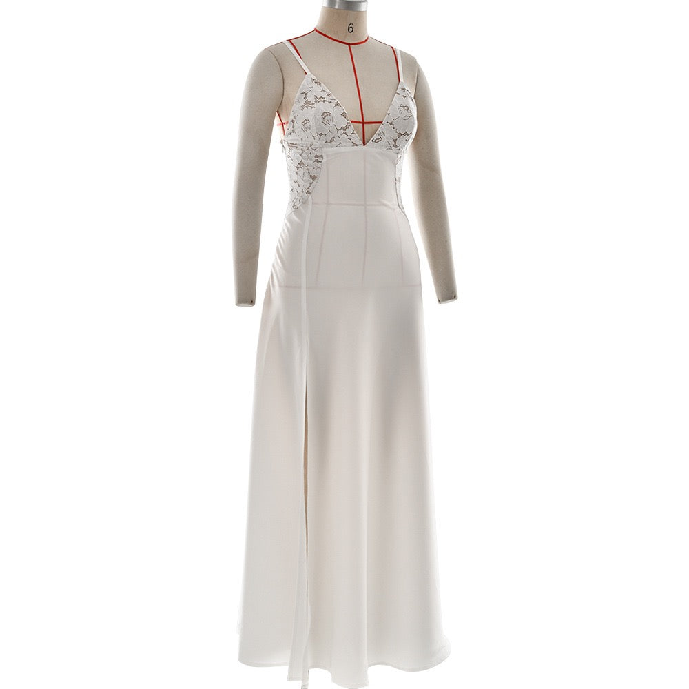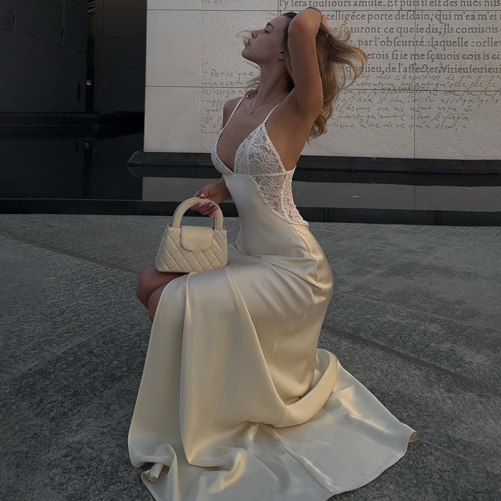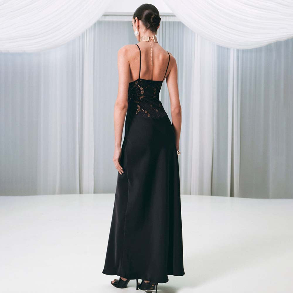 שמלת מקסי סאטן בעיצוב שסע ותחרה - אמורי