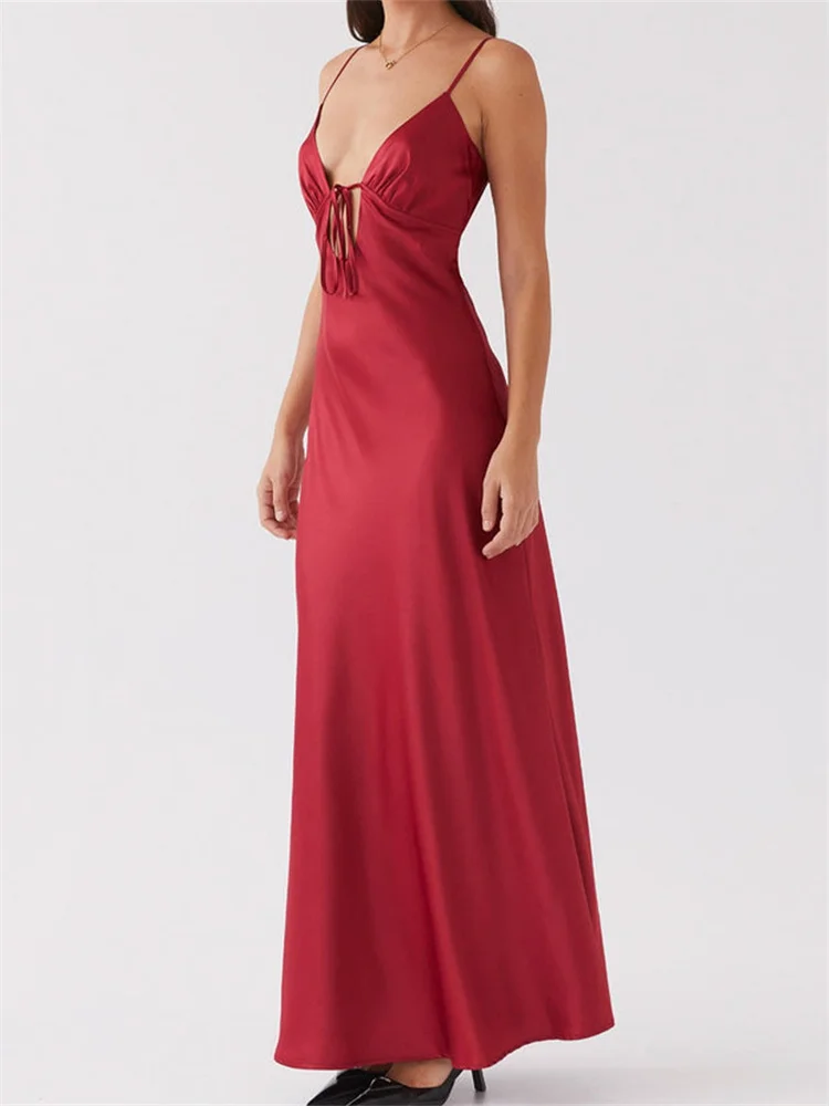 שמלת מקסי סאטן קשירה בחזה ובגב פתוח - זוהר