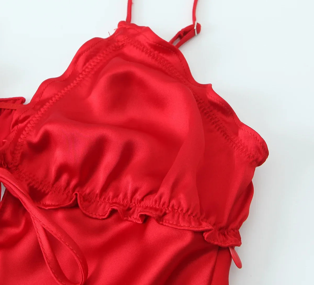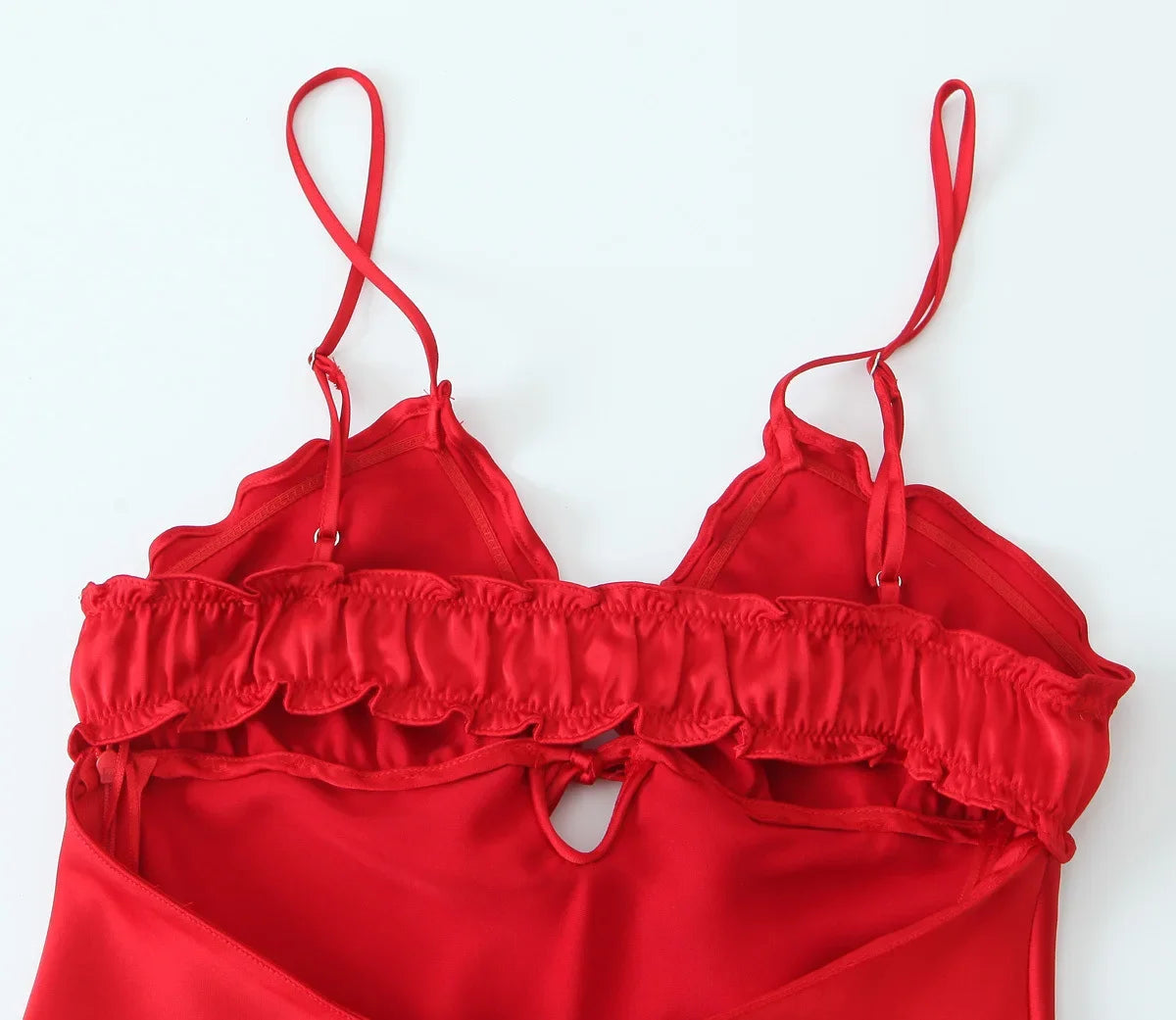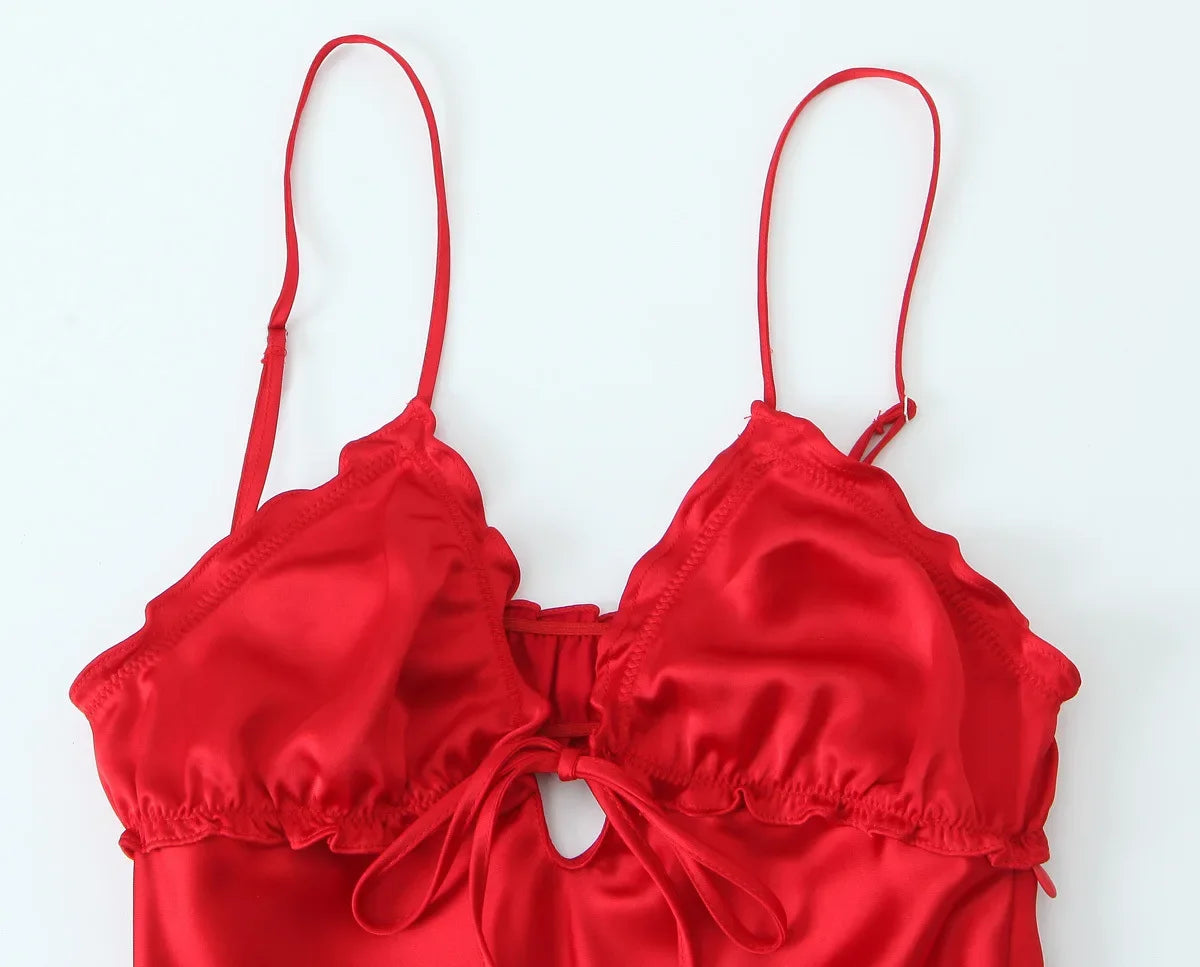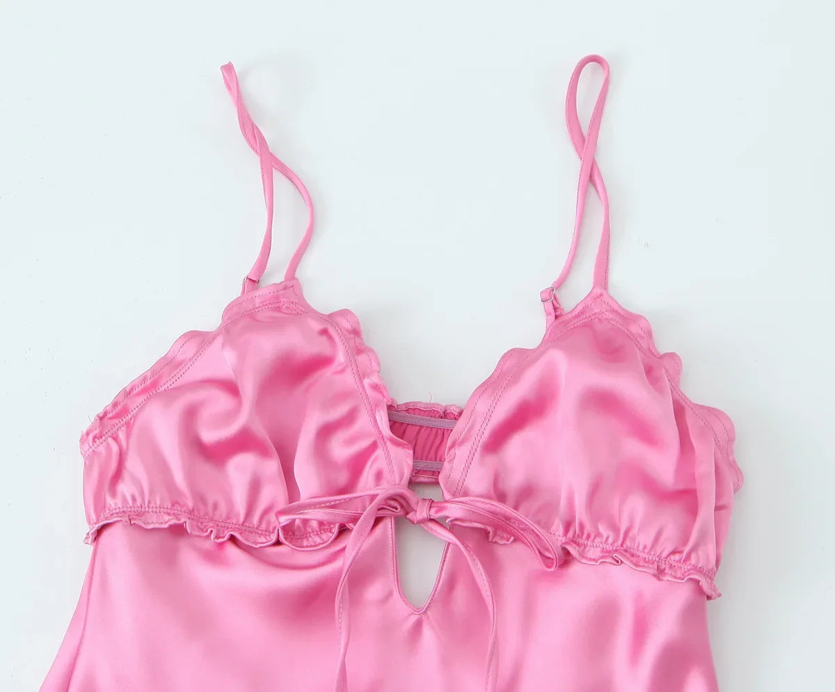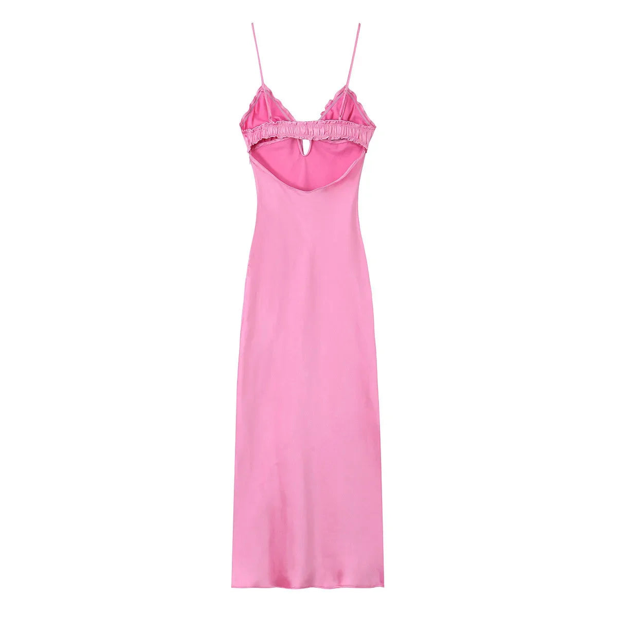 שמלת מקסי סאטן קשירה בחזה - נעמי