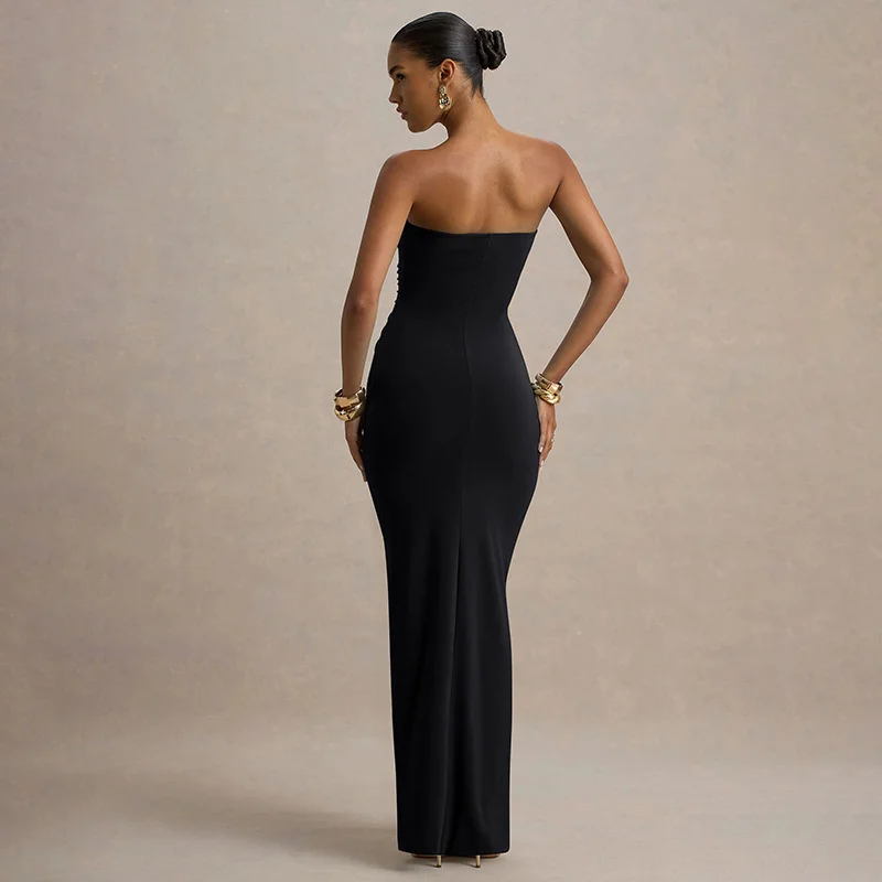 שמלת מקסי סטרפלס בעיצוב קיפולים - קארין
