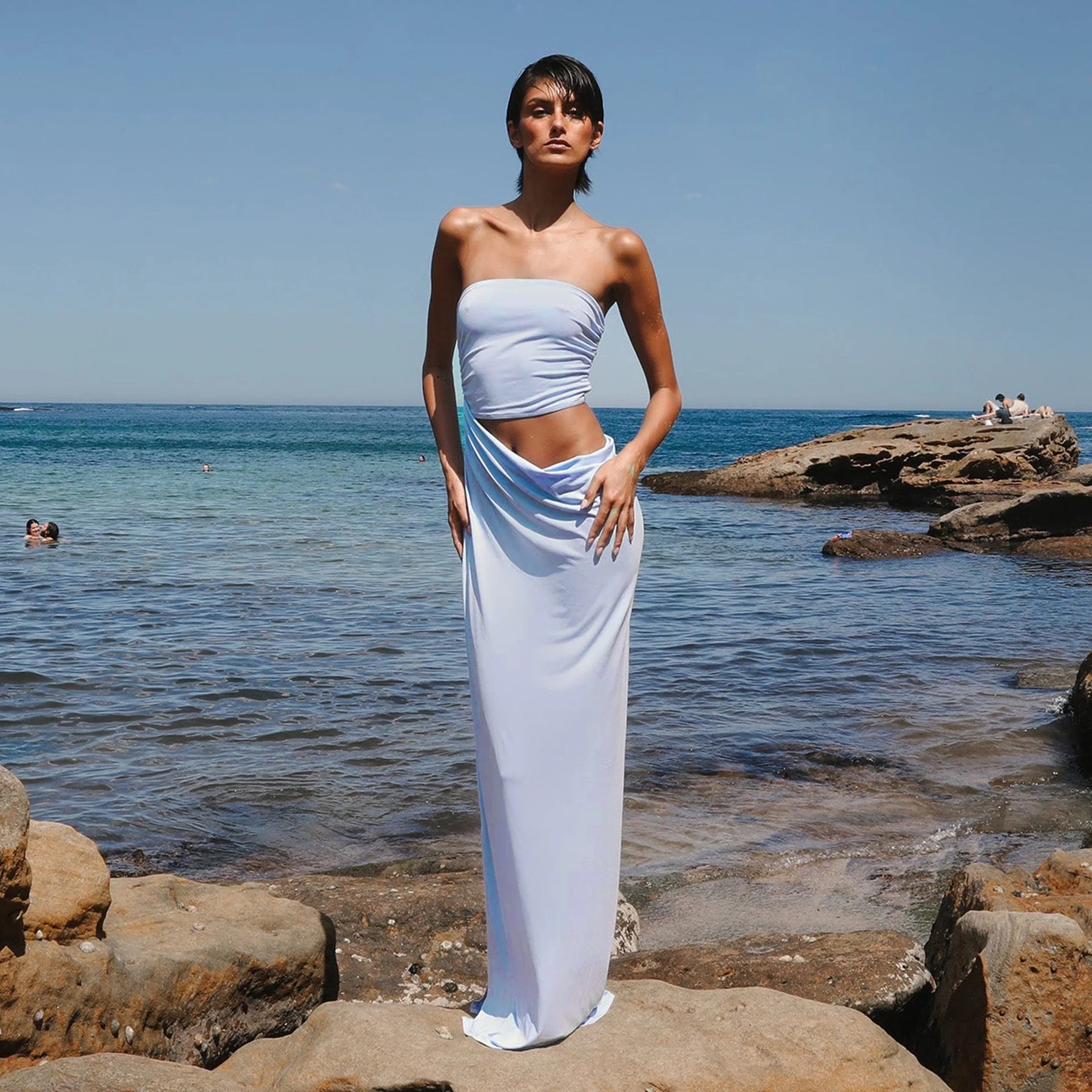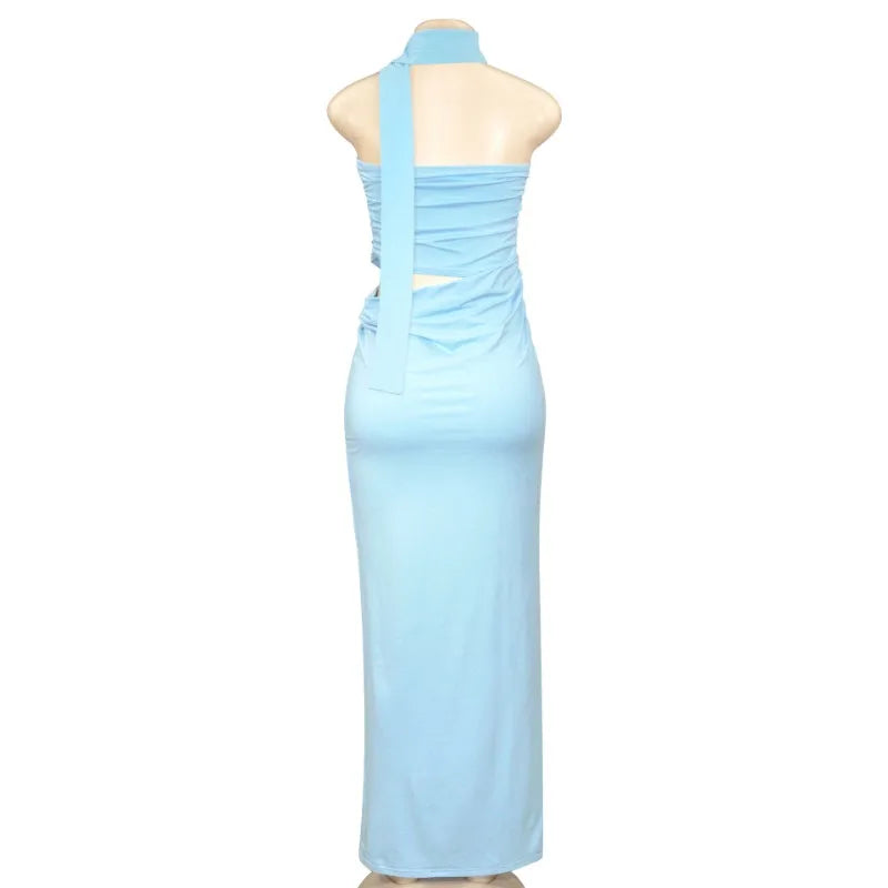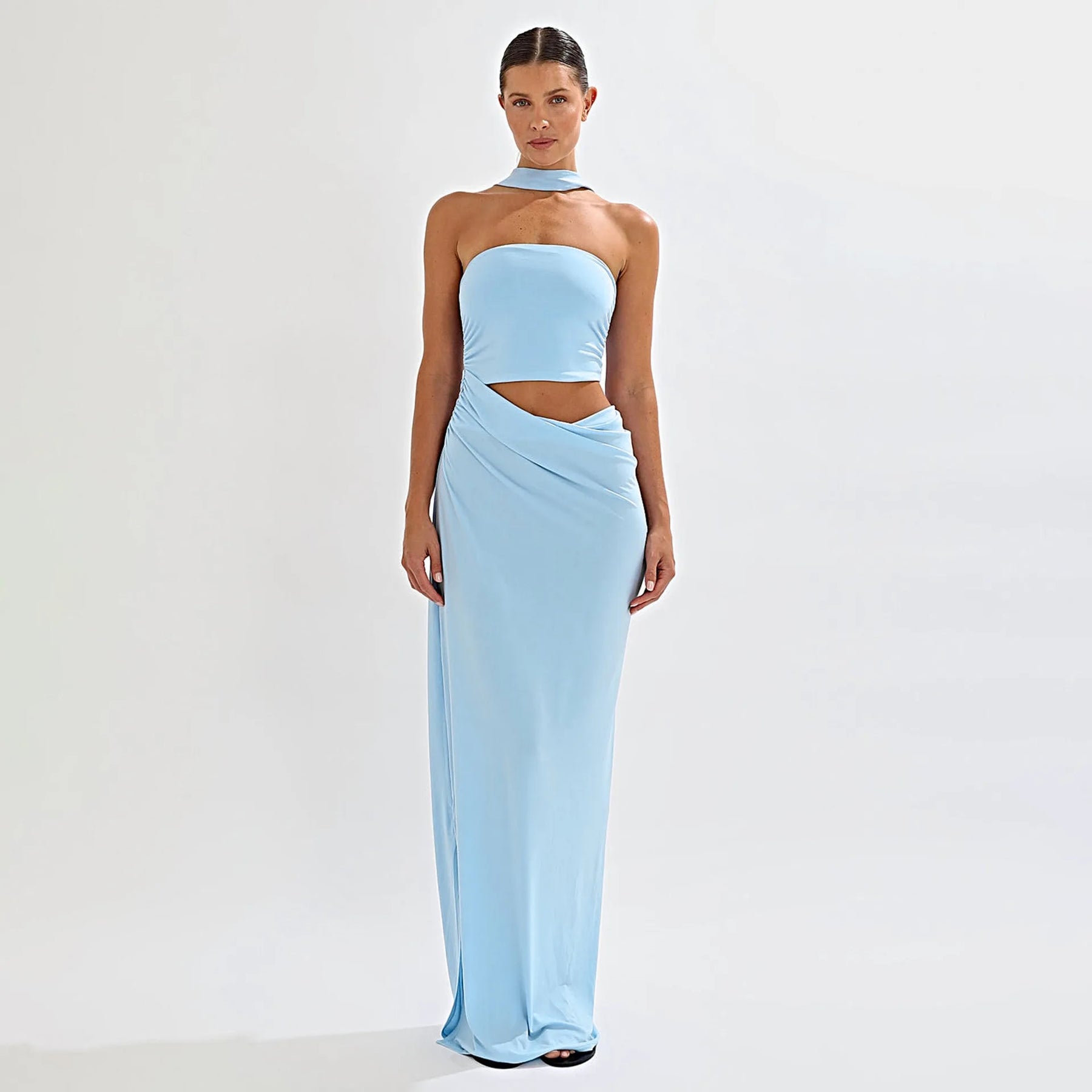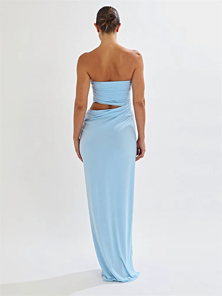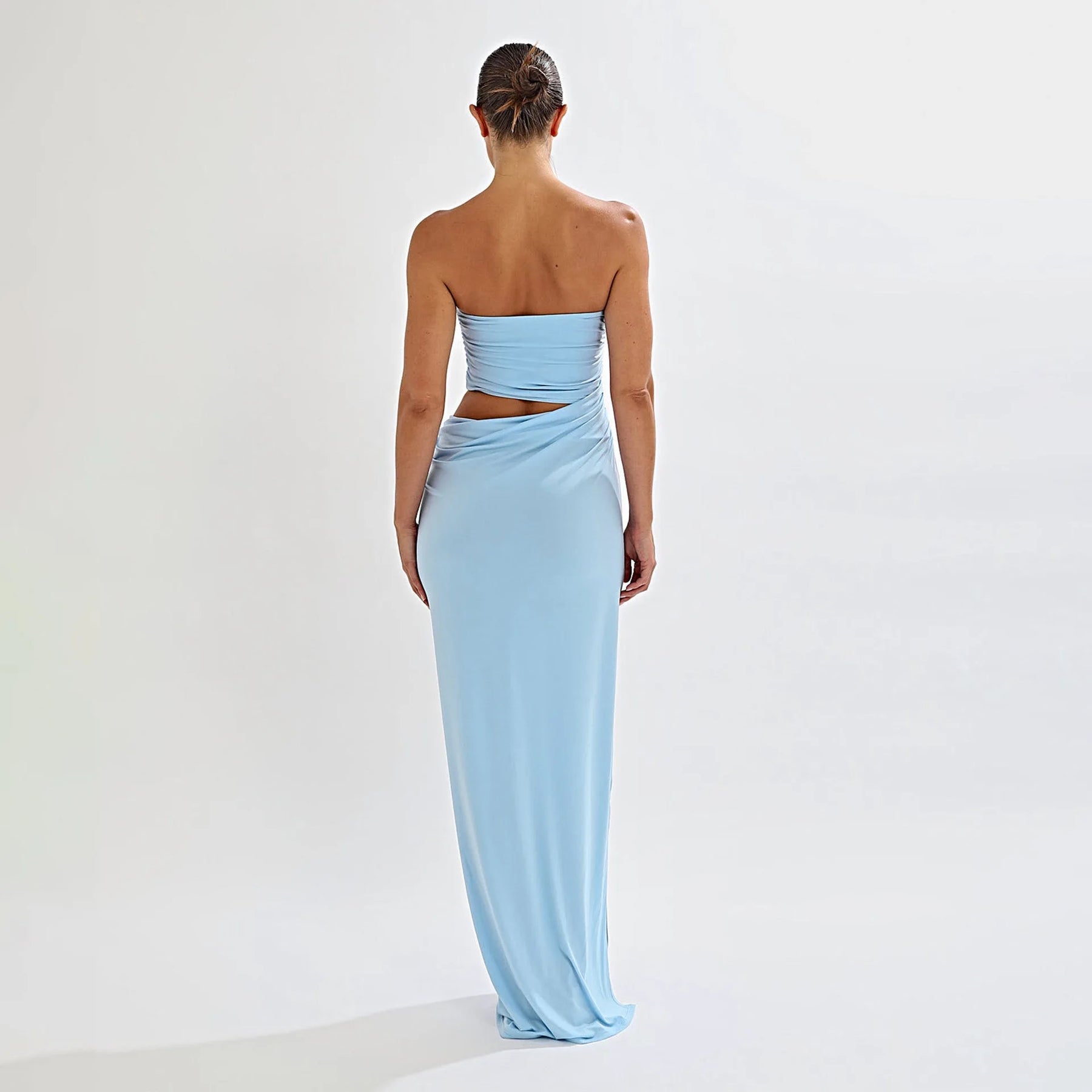 שמלת מקסי סטרפלס חצויה בעיטור צעיף - קלייר