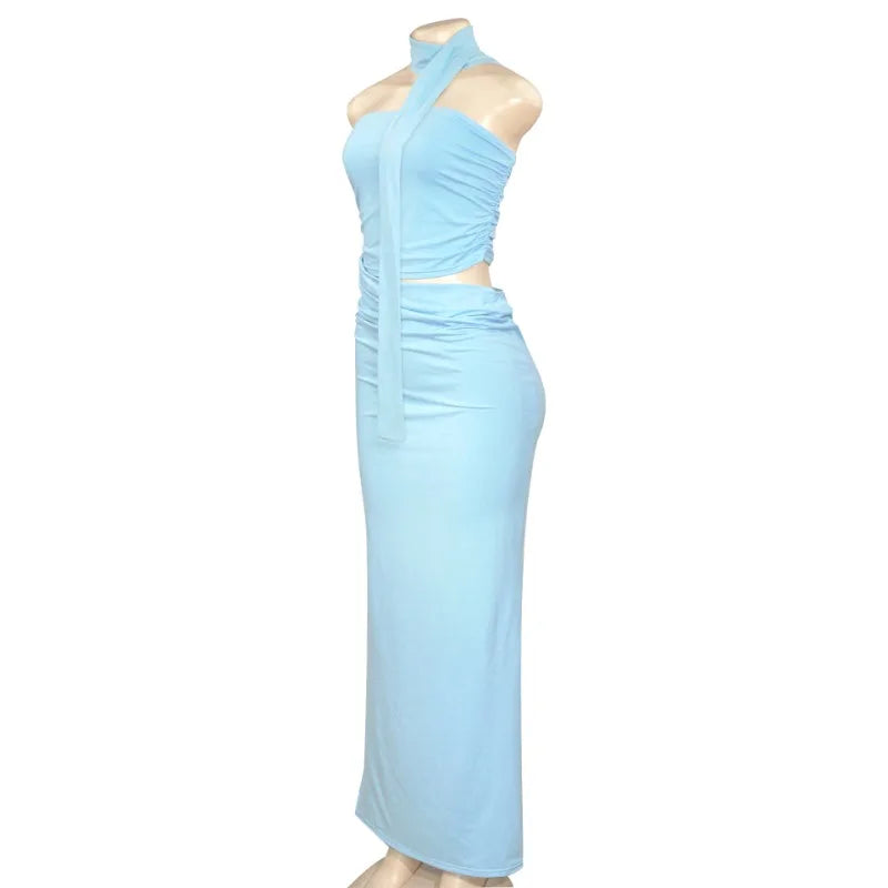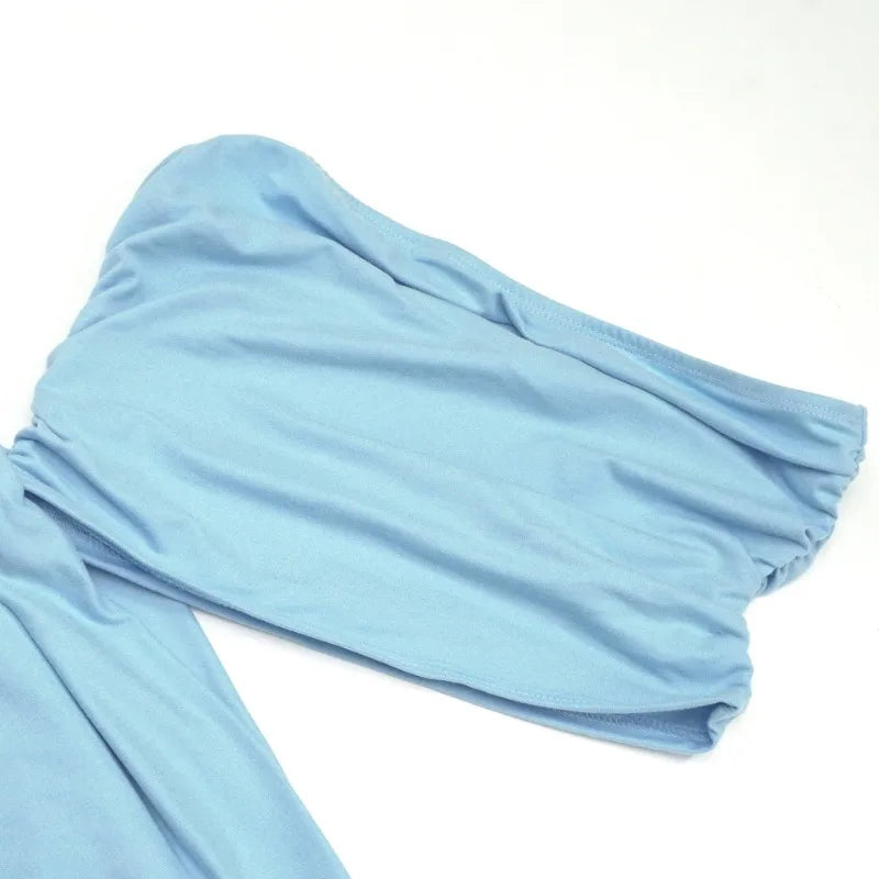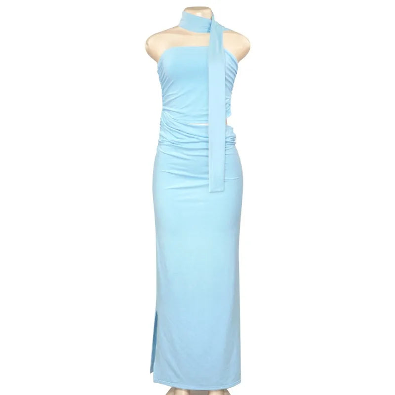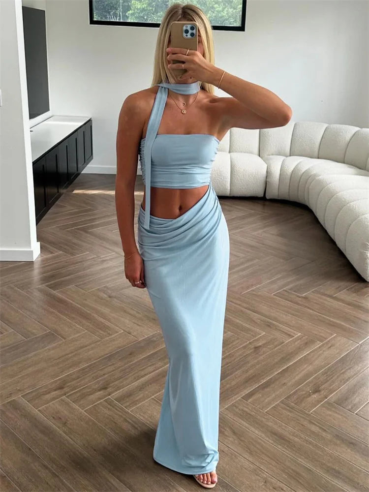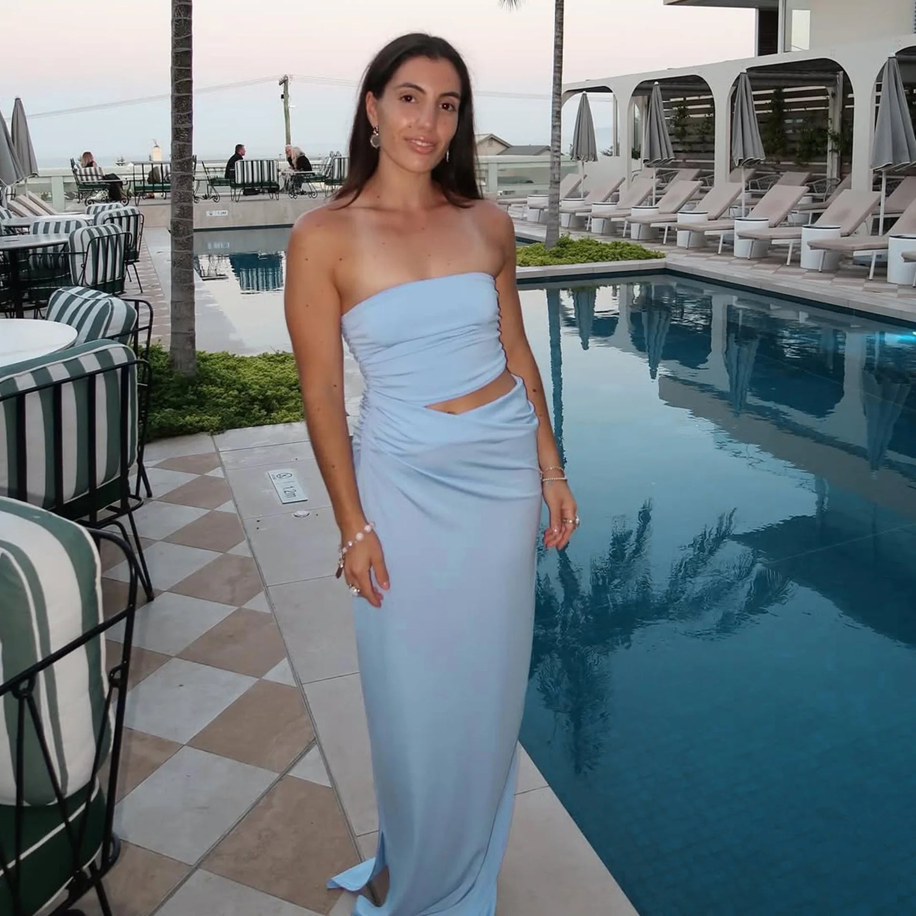 שמלת מקסי סטרפלס חצויה בעיטור צעיף - קלייר
