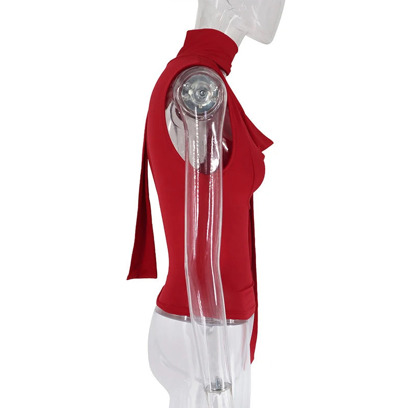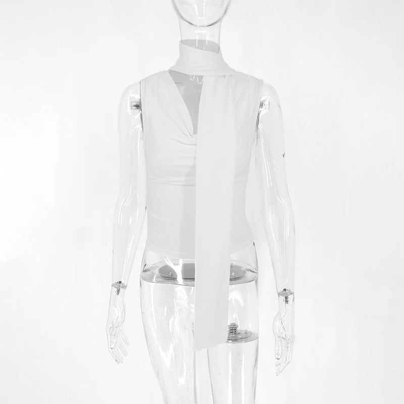 טופ צווארון נופל בעטור צעיף תואם - ג'י