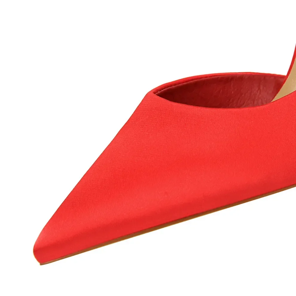 נעלי עקב משי סאטן שפיץ בעיצוב צד פתוח - רויה