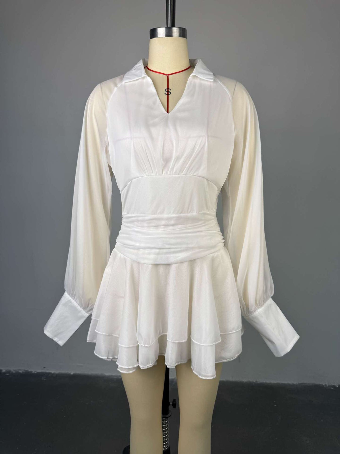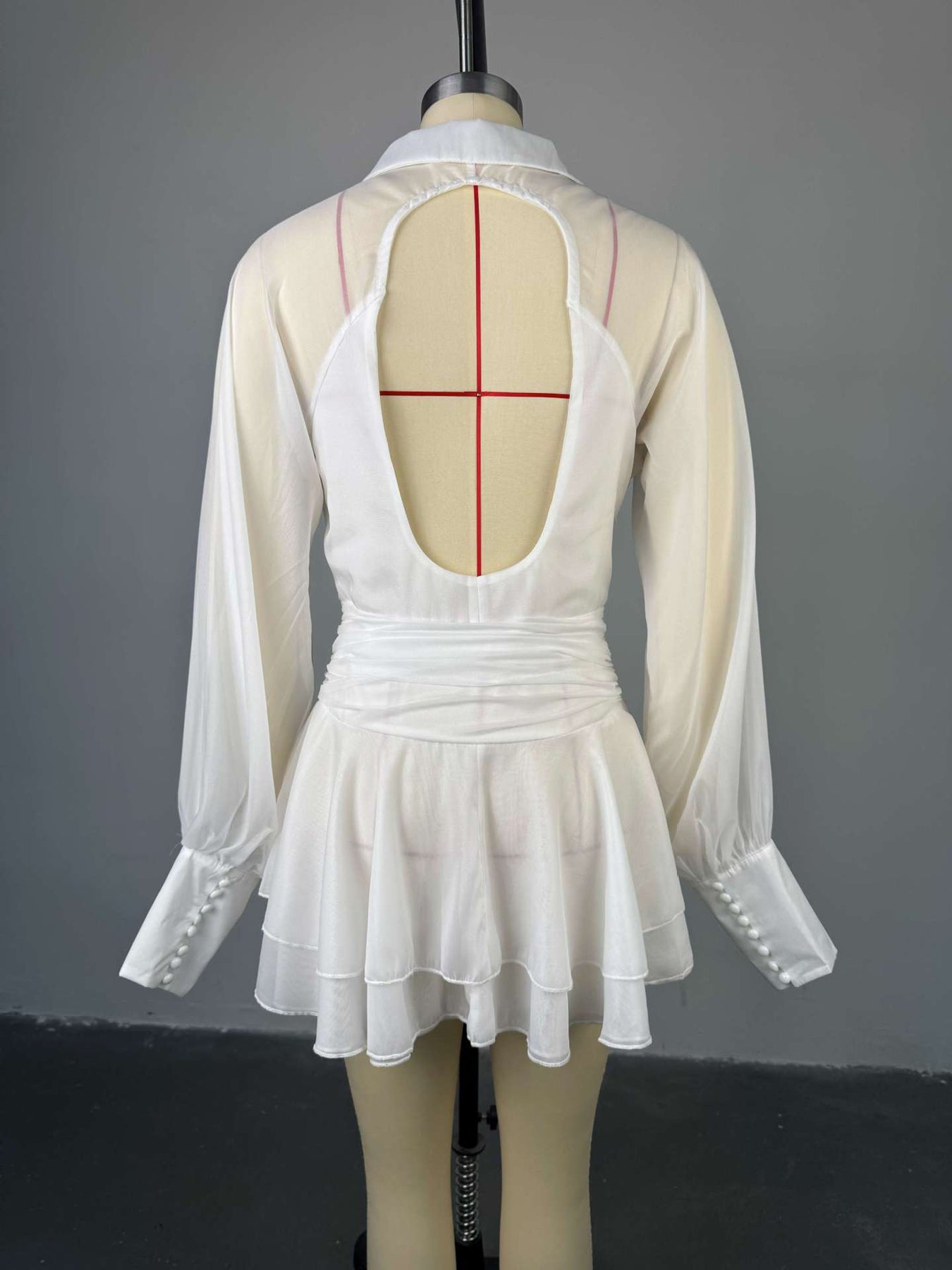 שמלת מיני שיפון חצאית שכבות מלמלה גב פתוח - יולי