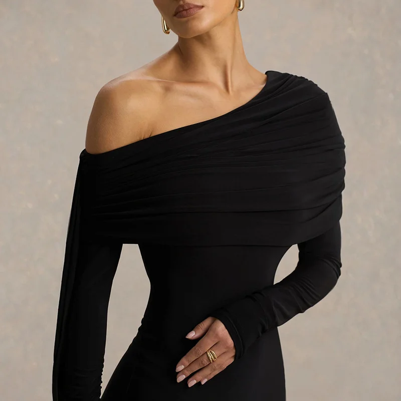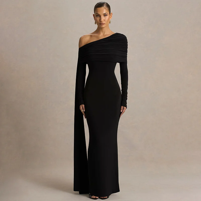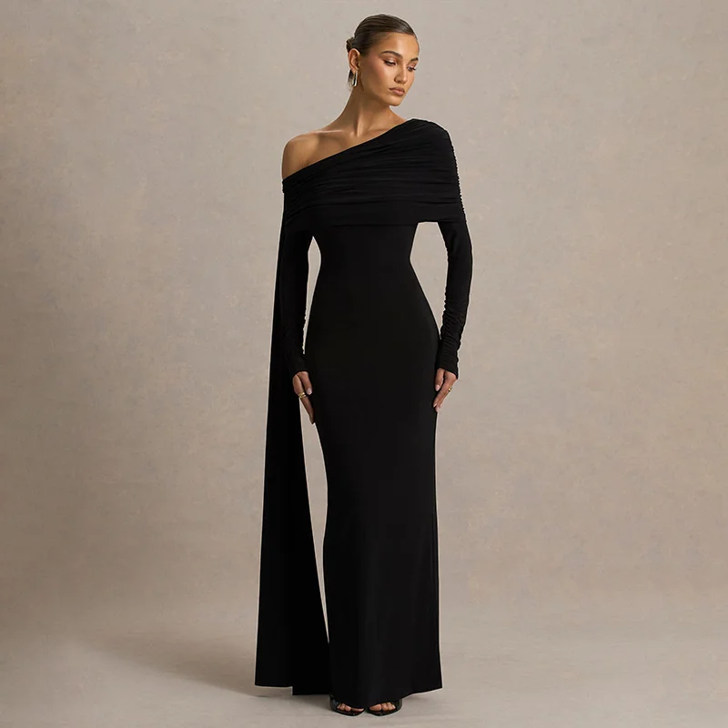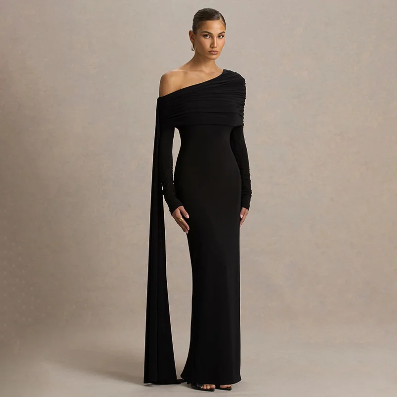 שמלת מקסי בעיצוב כתף חשופה ושובל - אלורה