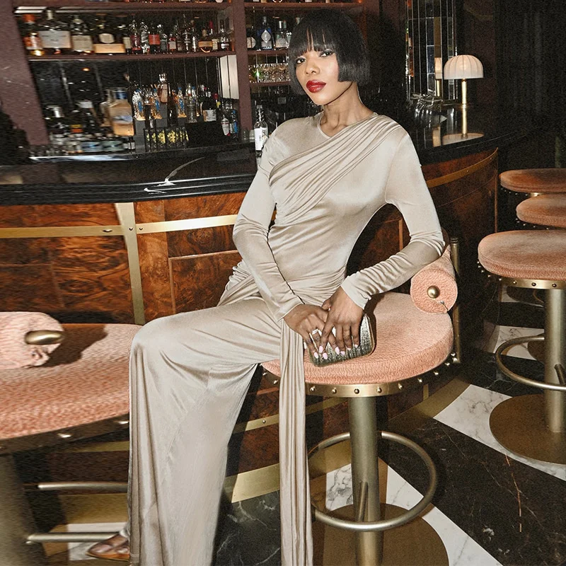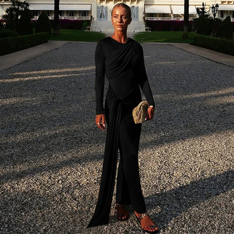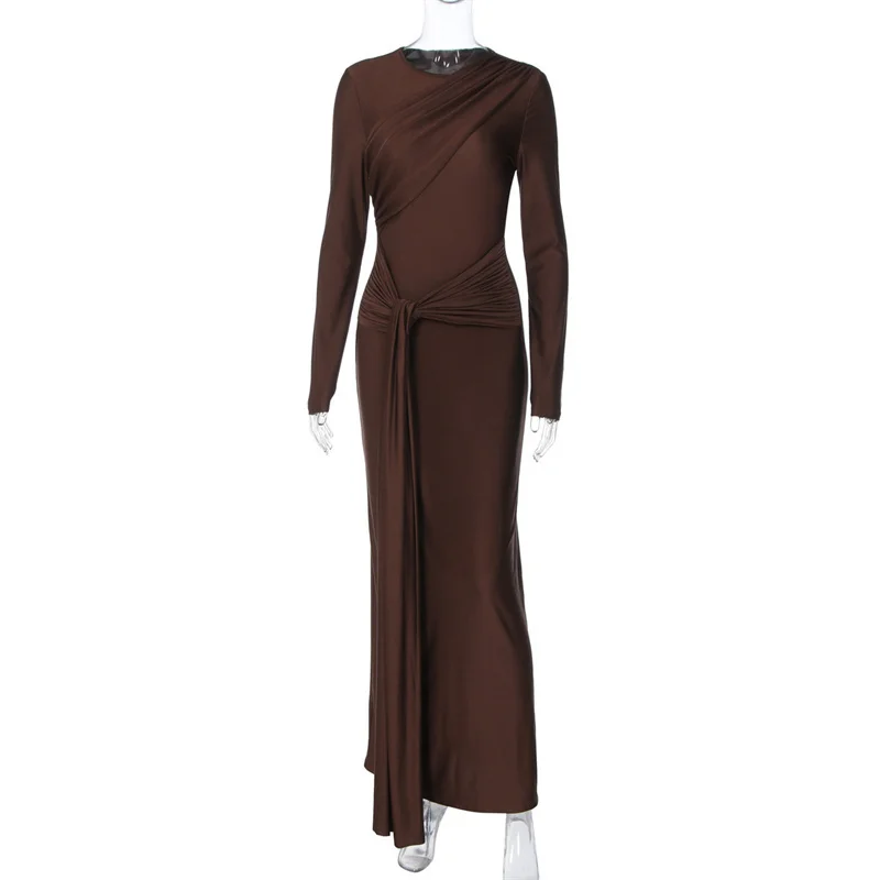 שמלת מקסי בעיצוב קיפולים בעיטור קשירה - ג'ונה