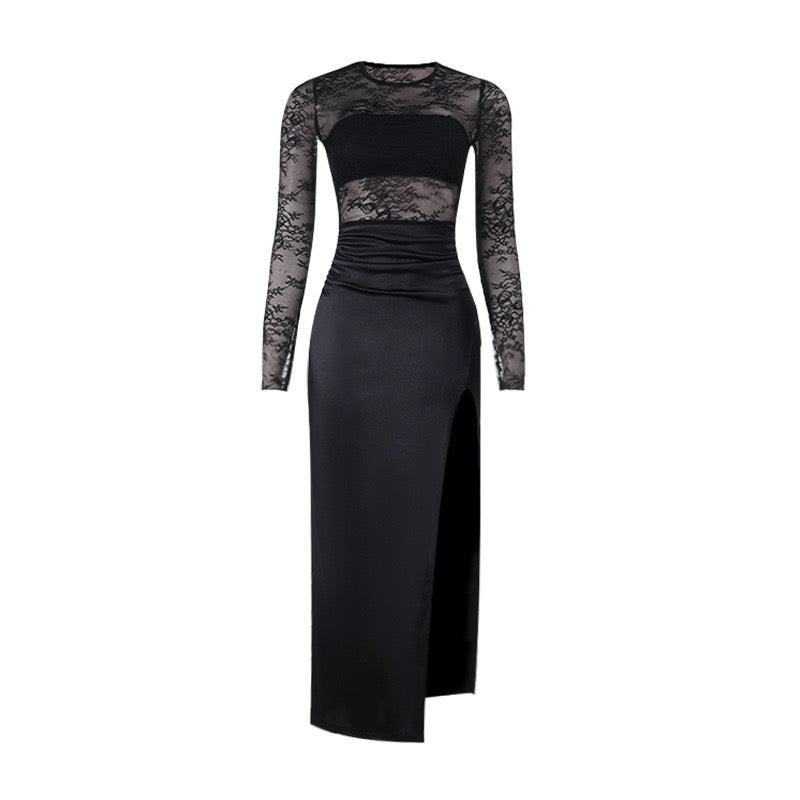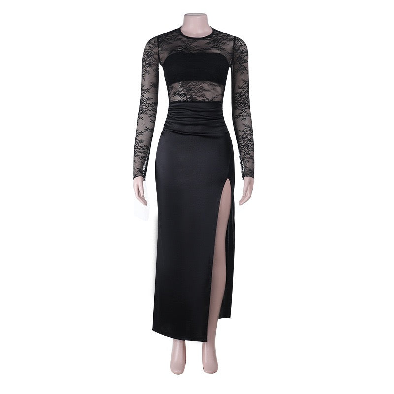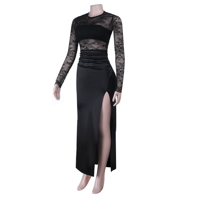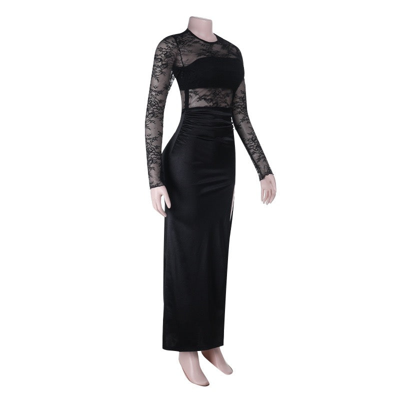שמלת מקסי סאטן בעיצוב תחרה - קארן